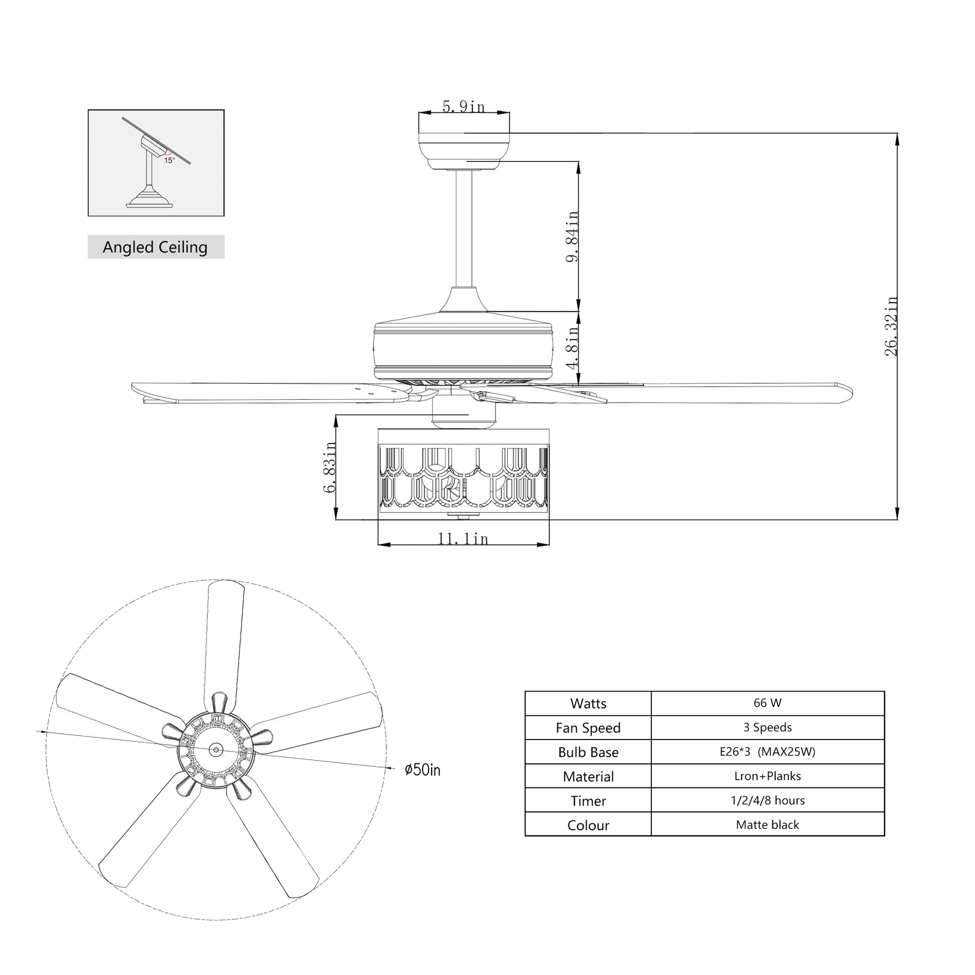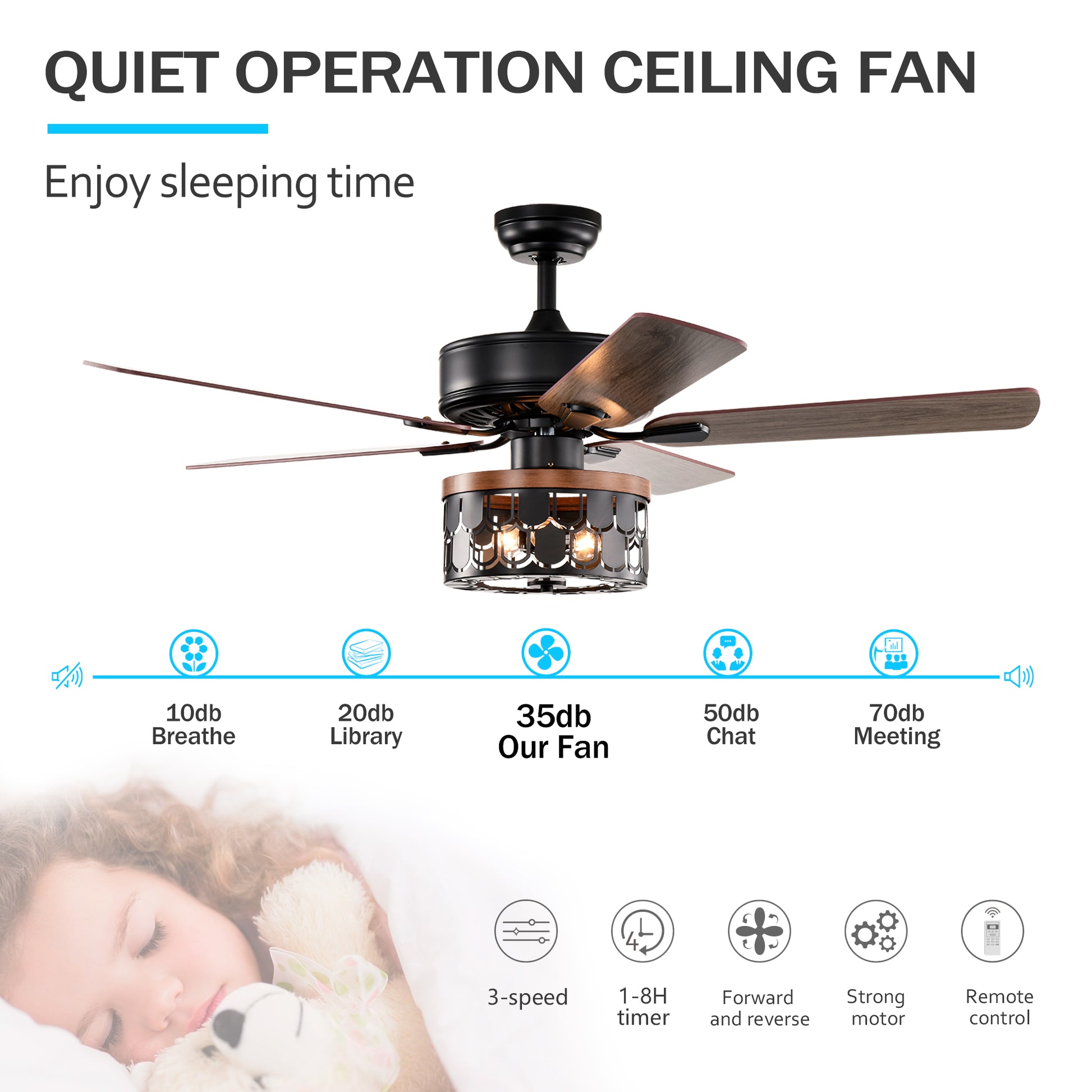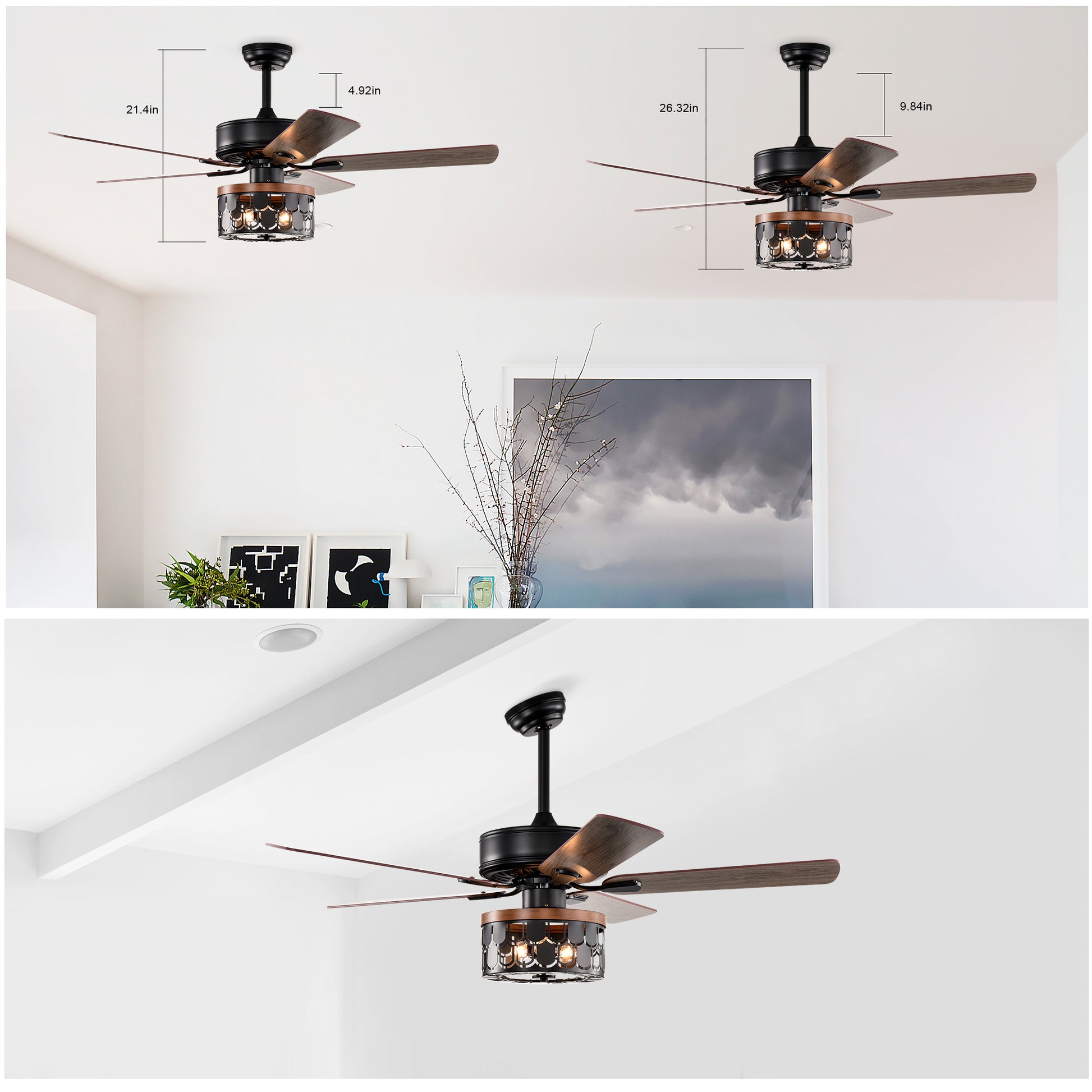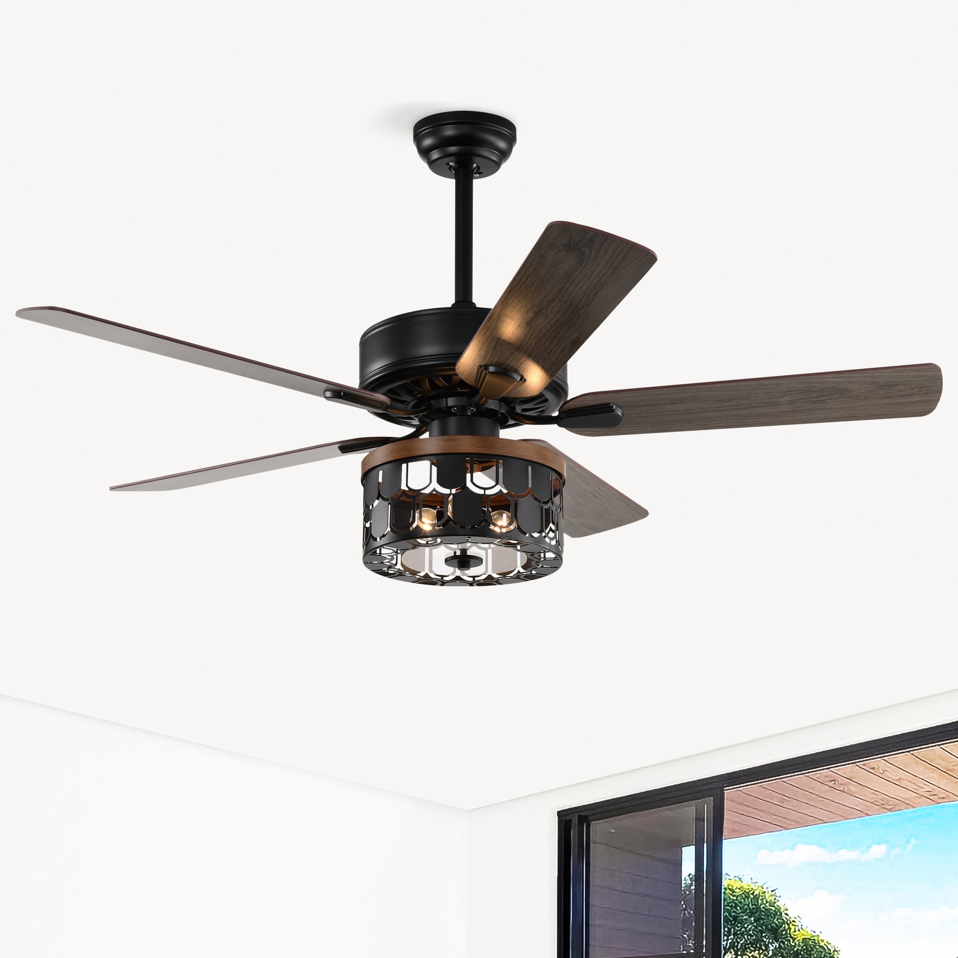 52'' Plywood Blades Ceiling Fan With Remote Control For The Living Room ,Bed Room Matte Black American Design,American Traditional,Farmhouse,Rustic,Vintage Plywood Iron