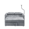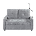 53.9" Modern Loveseat Pull Out Sofa Bed With Adjustable Backrest, Two Cup Holdersa Phone Holder, Three Charging Ports And Side Storage Pockets For Living Room, Grey Grey Foam Chenille