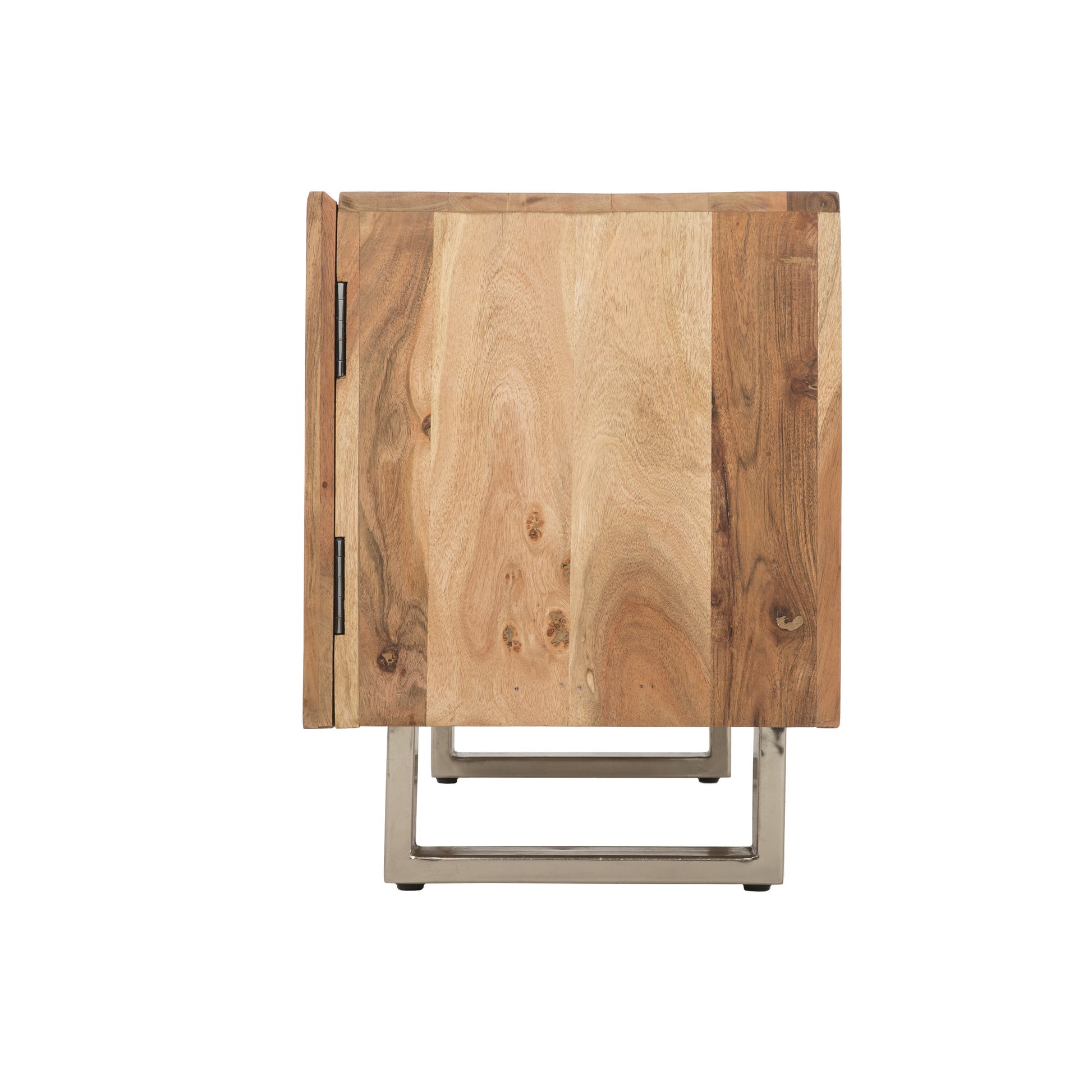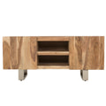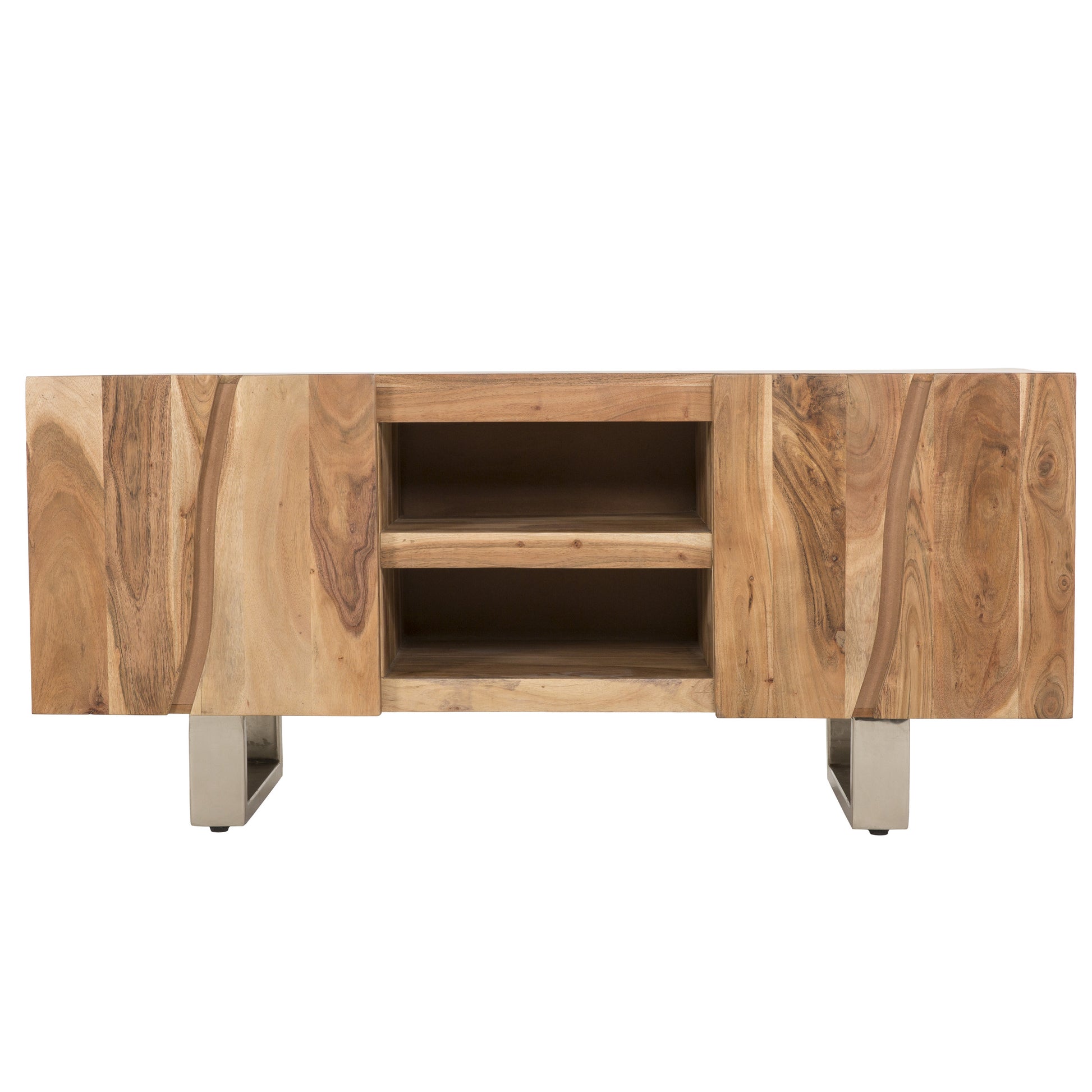 53 In. Solid Acacia Wood Tv Stand Media Console For Tvs Up To 60 In. With 2 Tier Shelf And 2 Storage Cabinet, Brown Brown Brown Primary Living Space 60 Inches 50 59 Inches Mid Century Modern Acacia 60 Inches Metal Acacia Wood