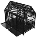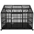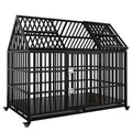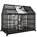 54" Heavy Duty Dog Crate Large Dog Cage Strong Metal Dog Kennels And Crates For Large Dogs Top Open With 2 Doors 4 Lockable Wheels 2 Removable Trays Black Outdoor Kennel Extra Large 71 90 Lbs Steel