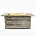 54Inch Outdoor Fire Table Steel Fire Pit Table With Wood Grain Surface Light Beige Steel