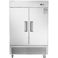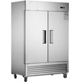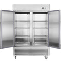 54"W Commercial Freezer 2 Section 2 Solid Door Stainless Steel Interior And Exterior Construction Reach In Freezer 42.2 Cu.Ft. Upright Fan Cooling Freezer For Restaurants And Commercial Environments
