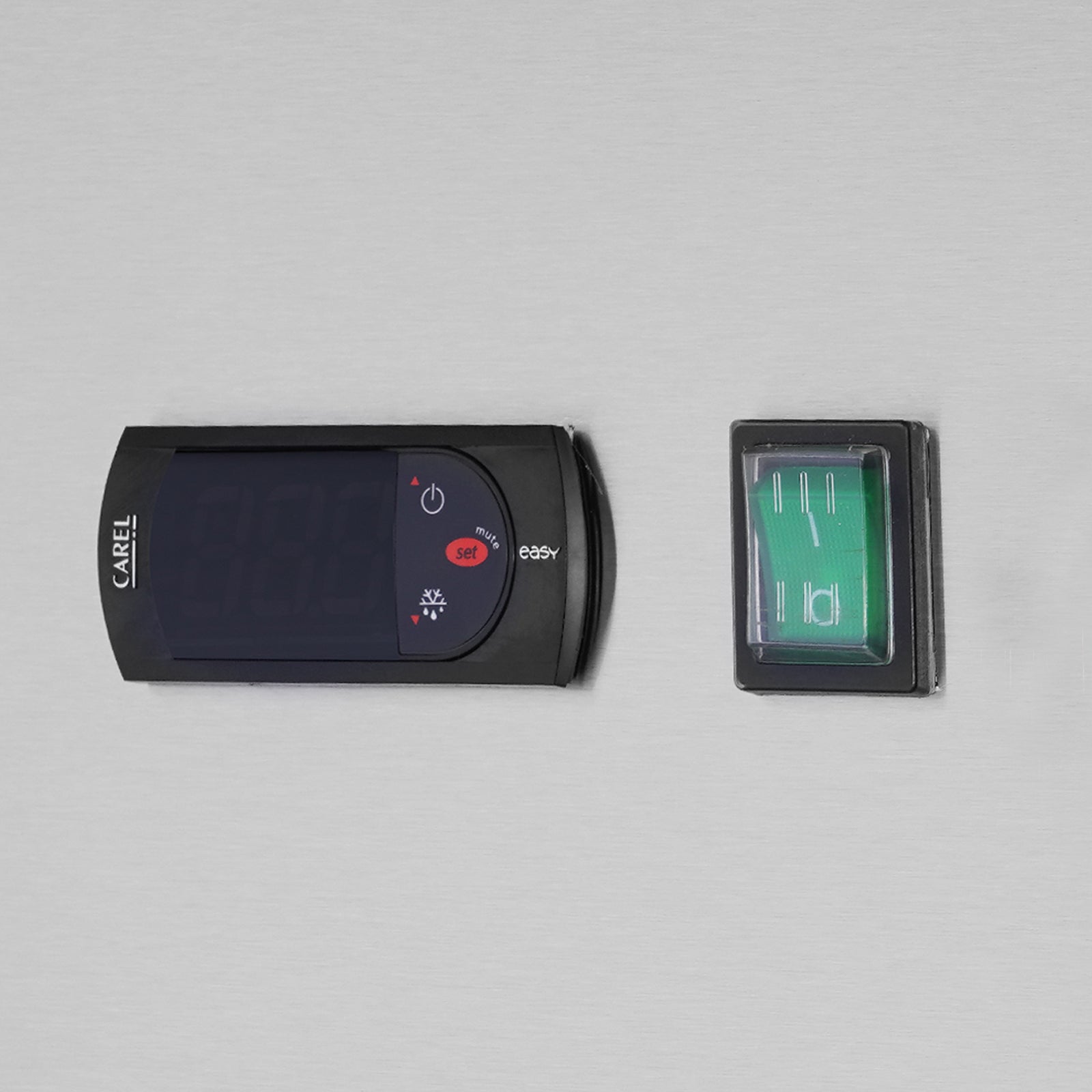 | Special Features | Stainless steel interior and exterior construction, fingerprint-resistant stainless steel, digital temperature controller, automatic defrost function, adjustable shelves, four 4 inch casters, fan cooling system, Led light |