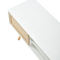 55.12" Rattan Tv Cabinet, Double Sliding Doors For Storage, Adjustable Shelf, Solid Wood Legs, Tv Console For Living Roomwhite White Solid Wood Mdf