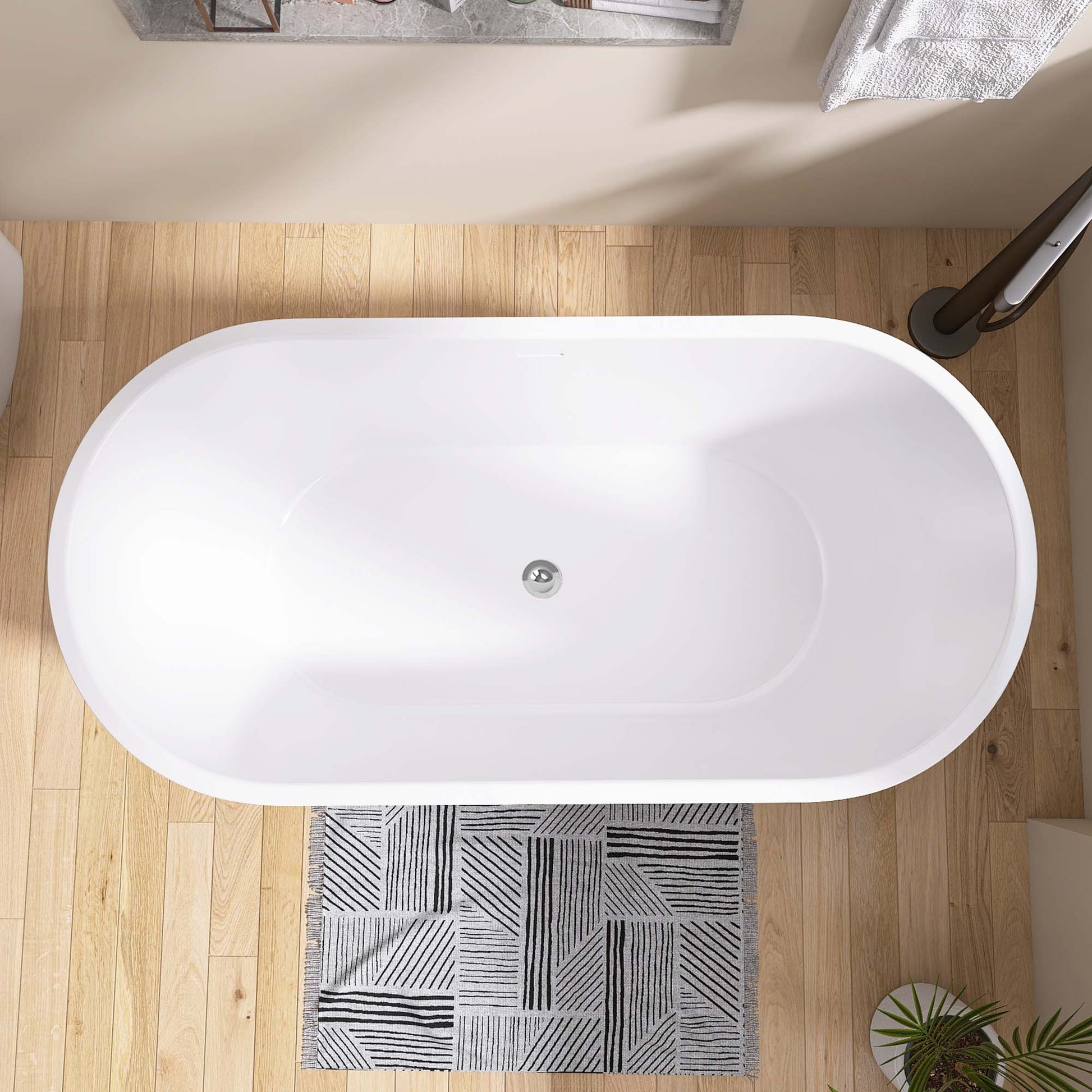 55" Acrylic Free Standing Tub Classic Oval Shape Soaking Tub, Adjustable Freestanding Bathtub With Integrated Slotted Overflow And Chrome Pop Up Drain Anti Clogging Gloss White Gloss White Oval Bathroom Freestanding Tubs Polished Less Than 59 In Modern