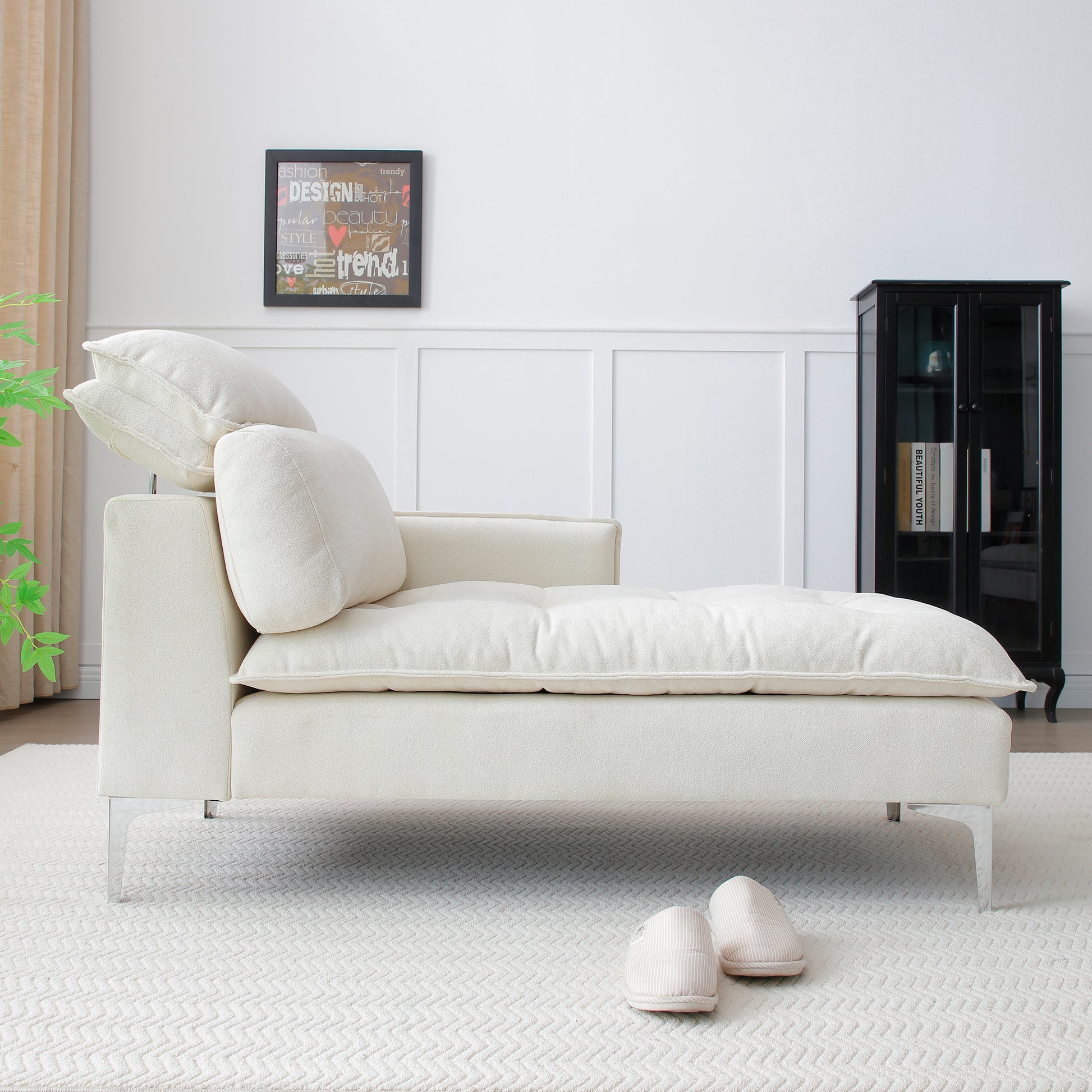 55" Chaise Lounge Indoor,Upholstered Furniture Lounge Chair With Left Armrest & Lumbar Pillow, Button Tufted Lounge Sofa For Living Room Bedroom Office,Tool Free Assembly Beige Beige Linen Wood
