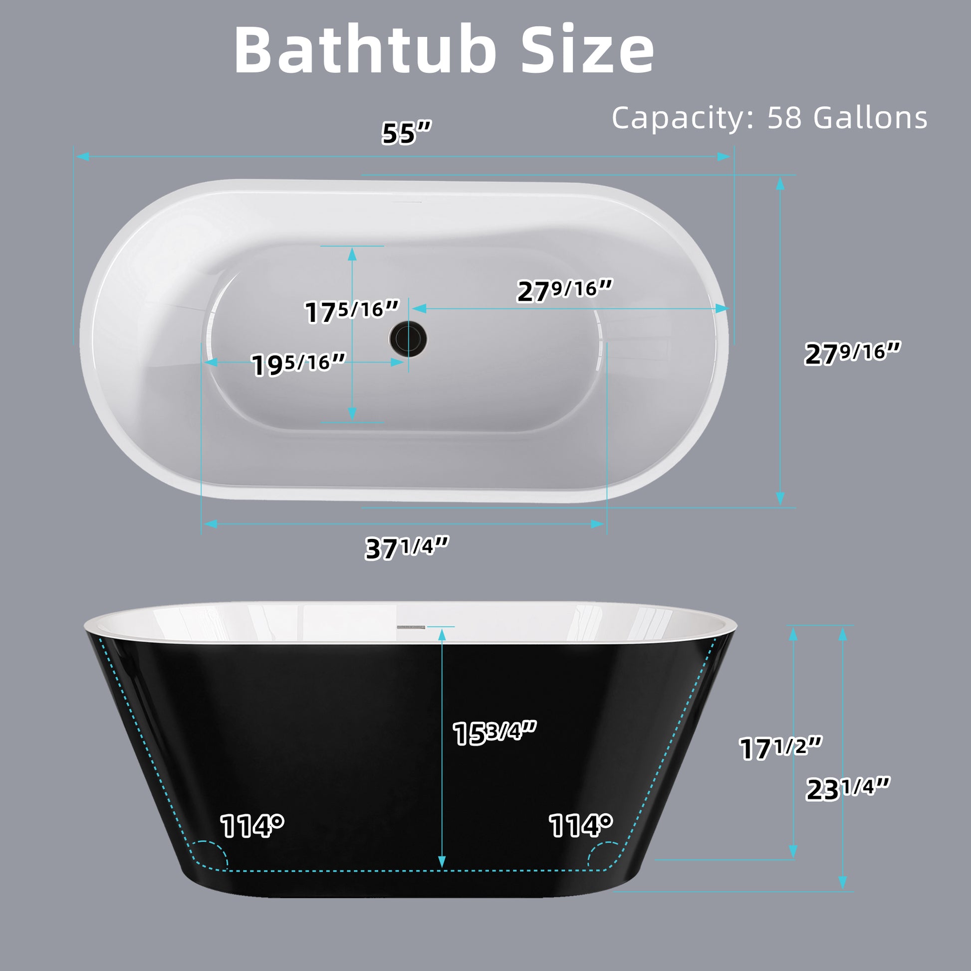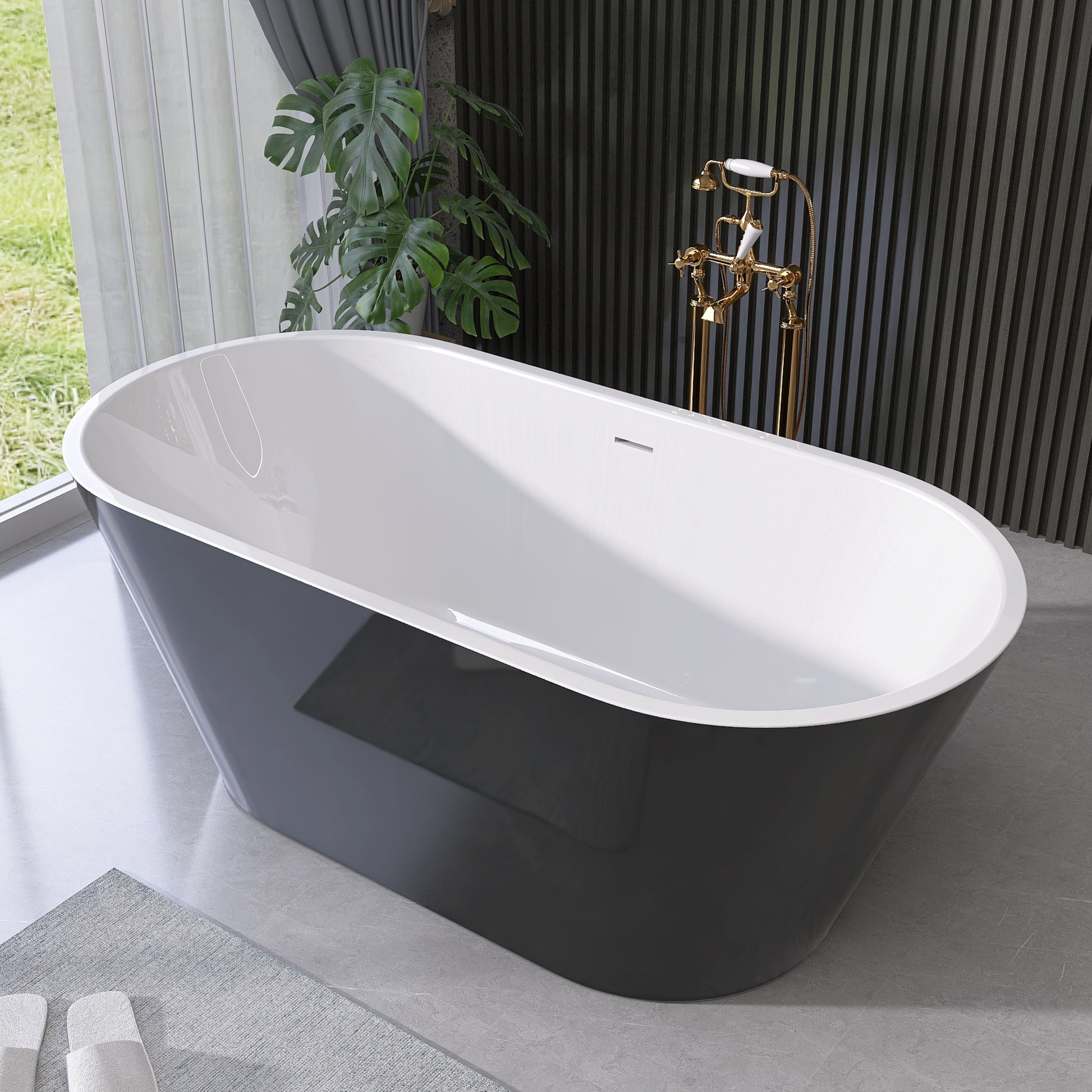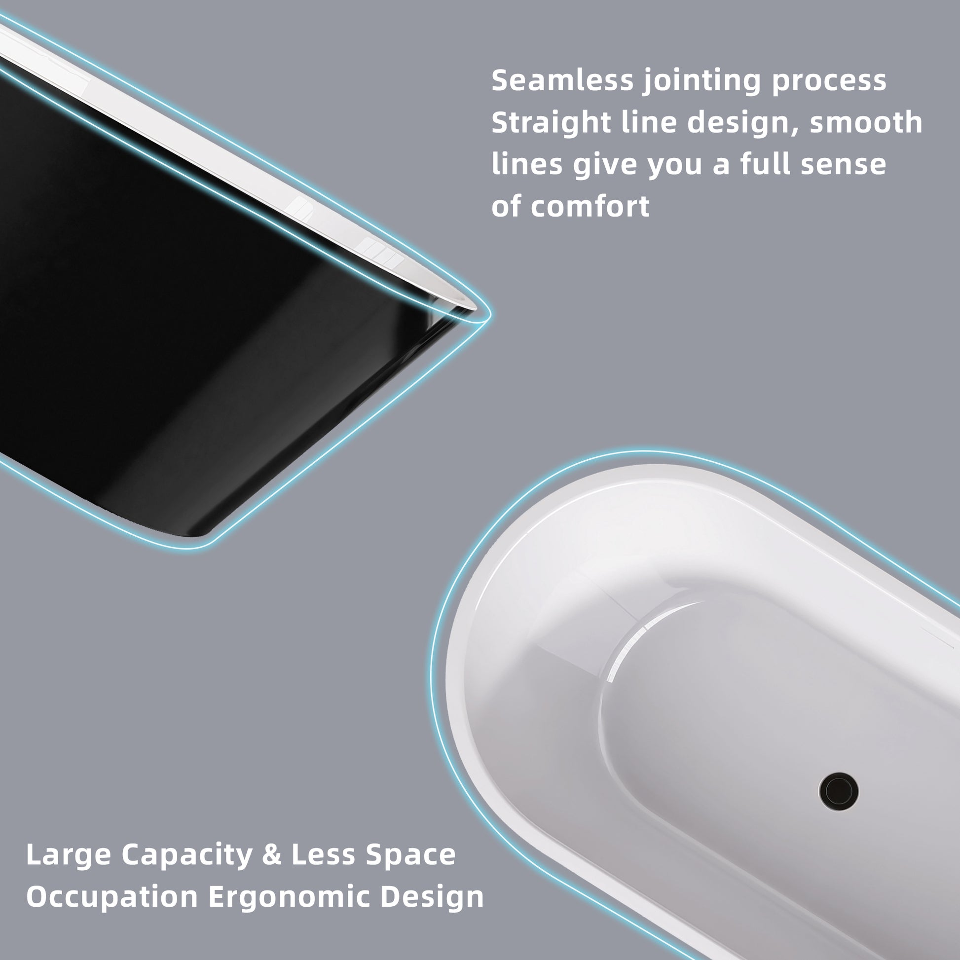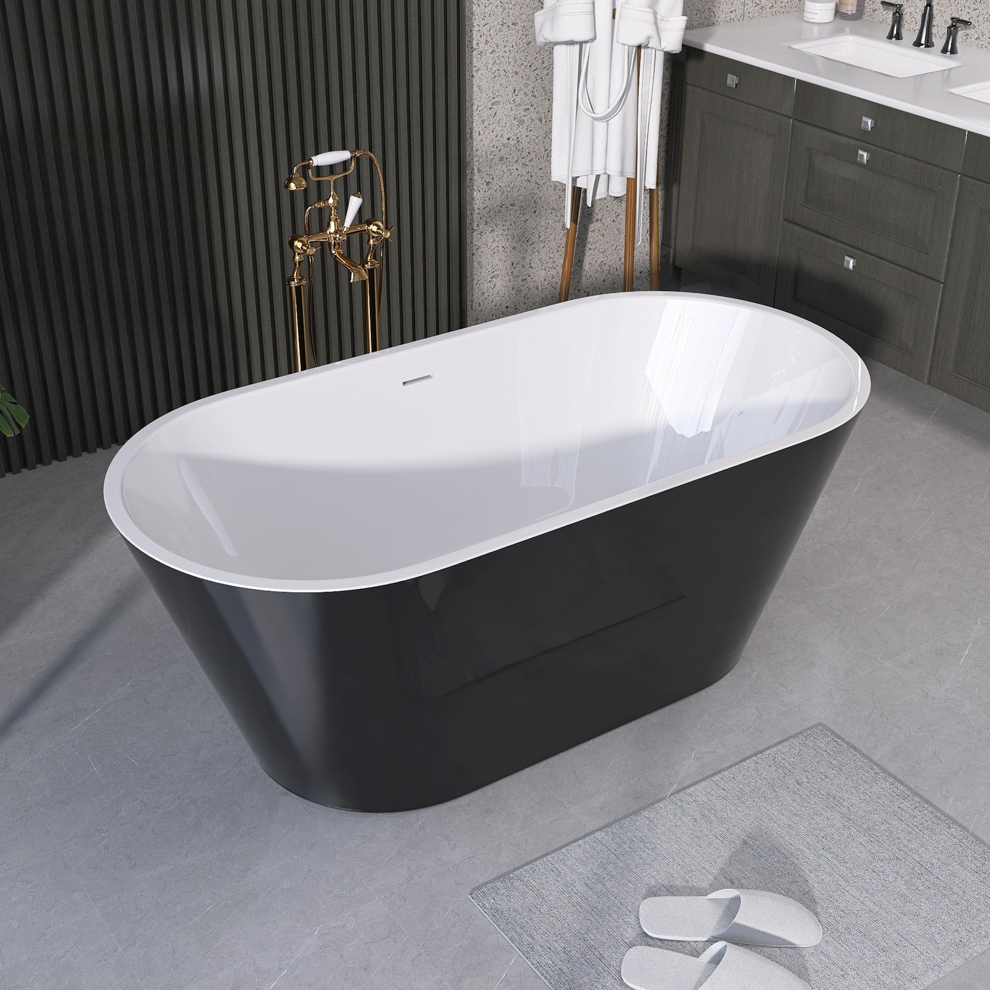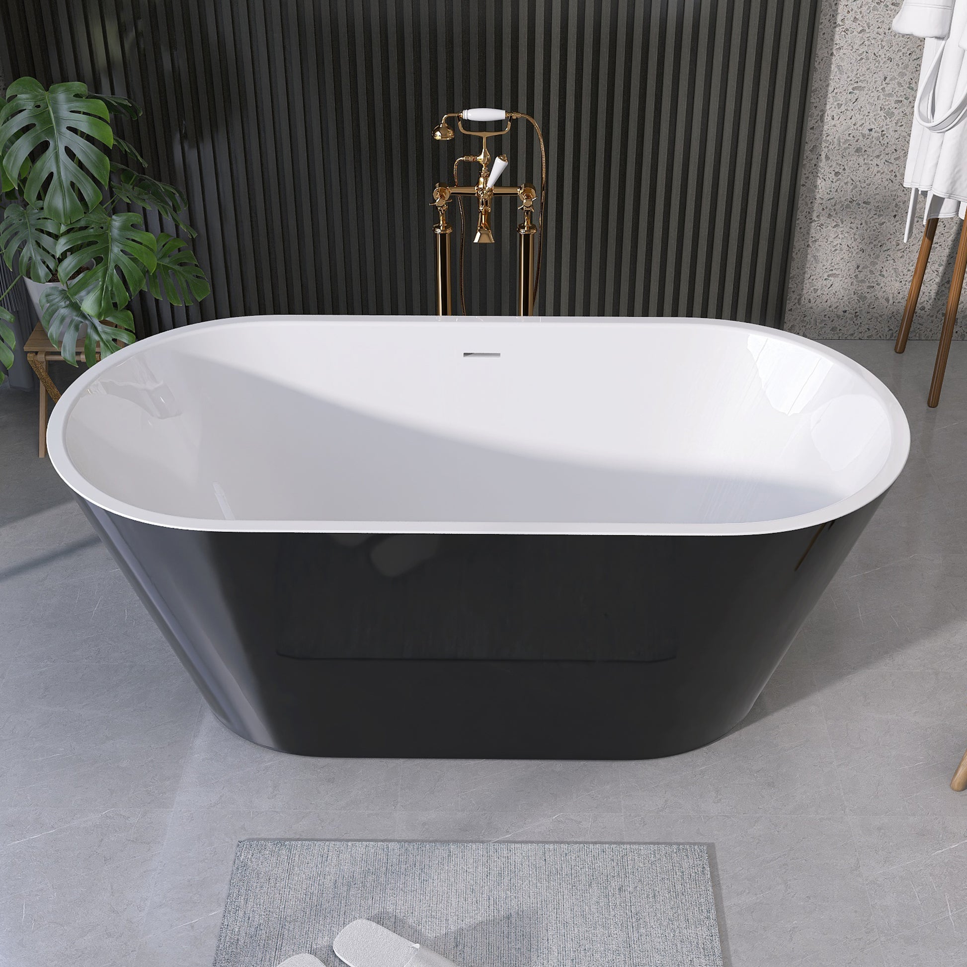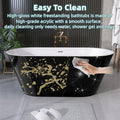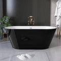 55 Inch Acrylic Freestanding Bathtub Contemporary Soaking White Tub With Overflow And Pop Up Drain Gloss Black Black White Oval Bathroom Freestanding Tubs Polished Less Than 59 In Contemporary,Modern Soaking Center Fiberglass Acrylic