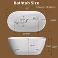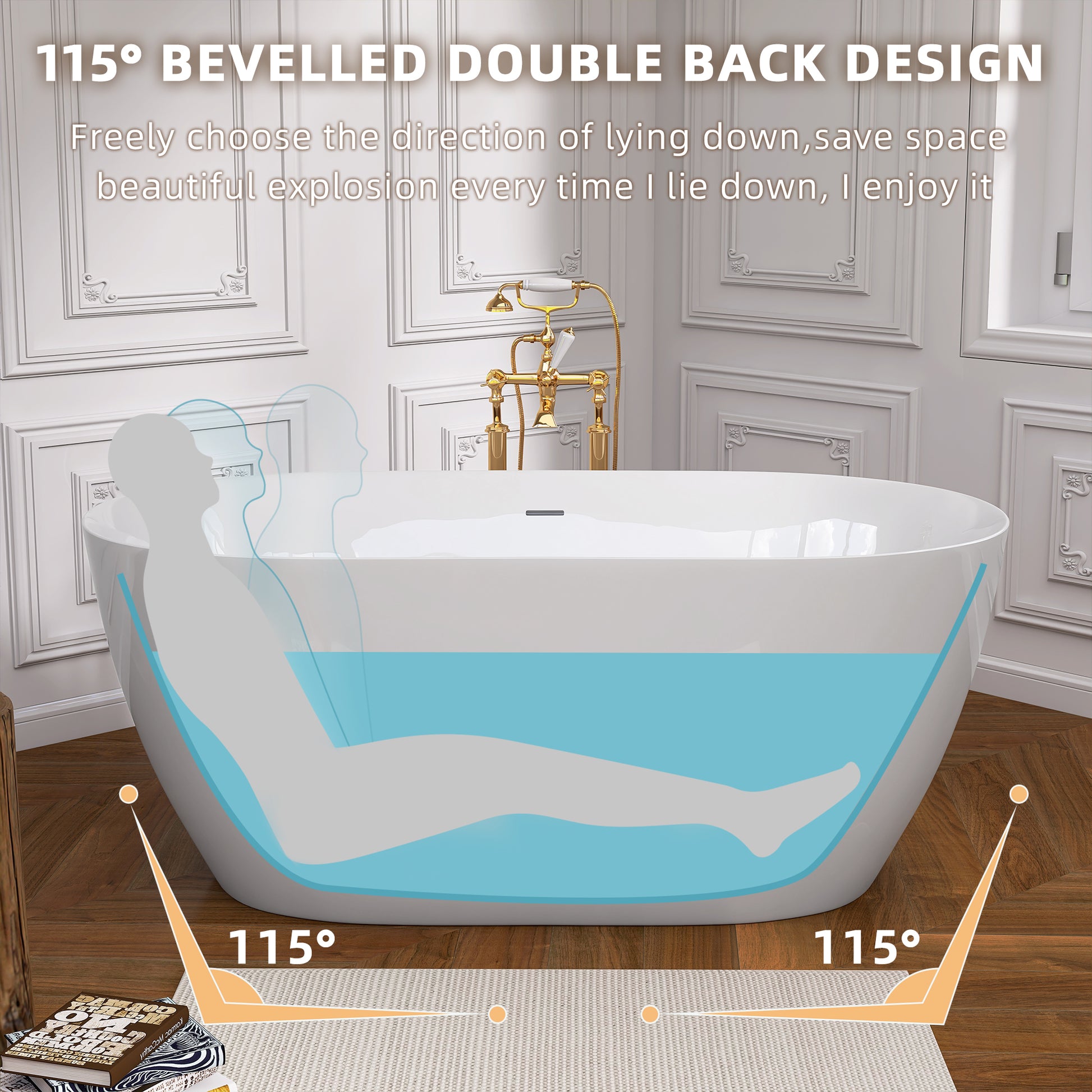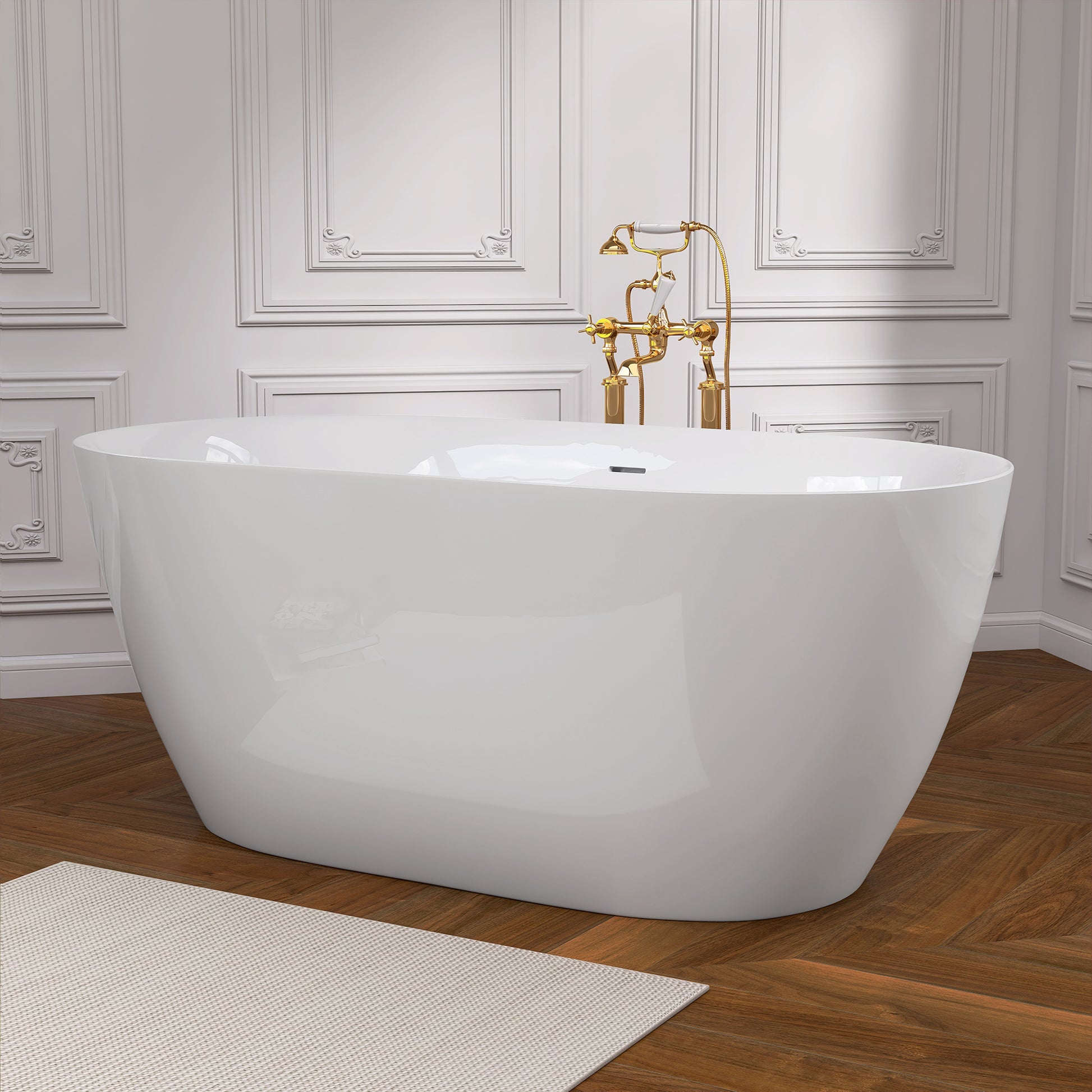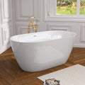 55 Inch Acrylic Freestanding Bathtub Contemporary Soaking White Tub With Overflow And Pop Up Drain Gloss White Gloss White Oval Bathroom Freestanding Tubs Polished Less Than 59 In Contemporary,Modern Soaking Center Fiberglass Acrylic