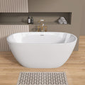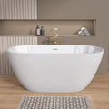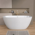 55 Inch Acrylic Freestanding Bathtub Contemporary Soaking White Tub With Overflow And Pop Up Drain Matte White Matte White Oval Bathroom Freestanding Tubs Matte Less Than 59 In Contemporary,Modern Soaking Center Fiberglass Acrylic