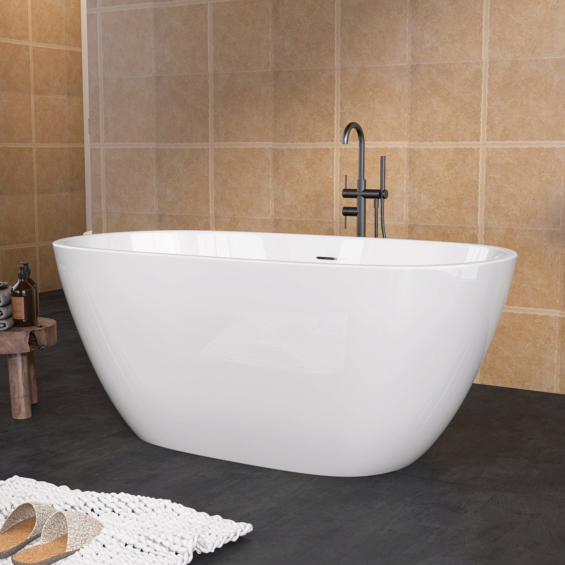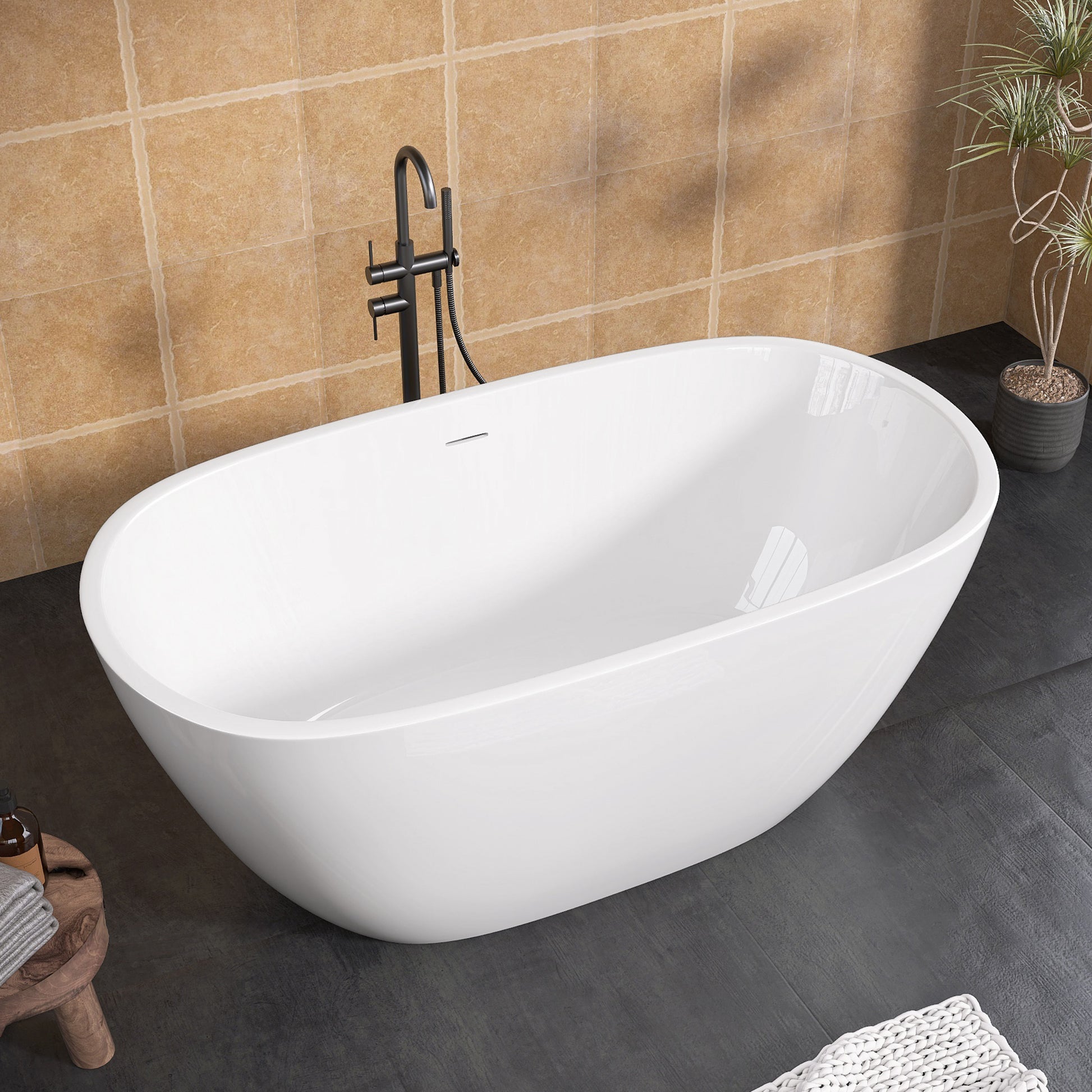 55 Inch Acrylic Freestanding Bathtub Modern Stand Alone Soaking Bathtub With Overflow And Pop Up Drain Gloss White Gloss White Oval Bathroom Freestanding Tubs Polished Less Than 59 In Contemporary,Modern Soaking Center Fiberglass Acrylic