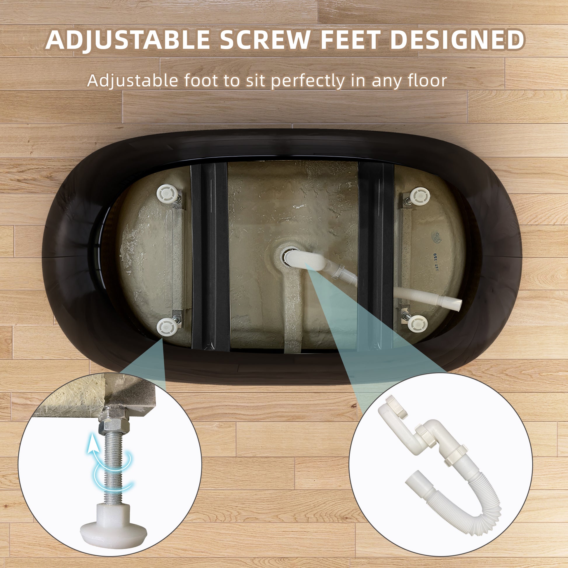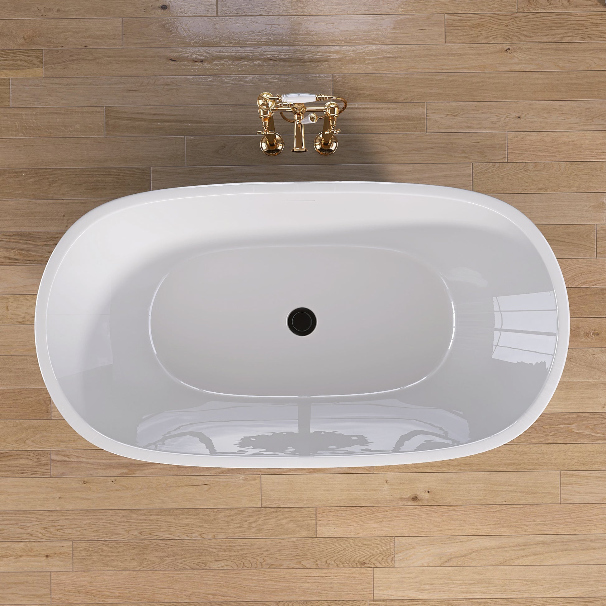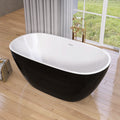 55 Inch Acrylic Freestanding Bathtub Modern Stand Alone Soaking Bathtub With Overflow And Pop Up Drain Gloss Black Black White Oval Bathroom Freestanding Tubs Polished Less Than 59 In