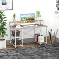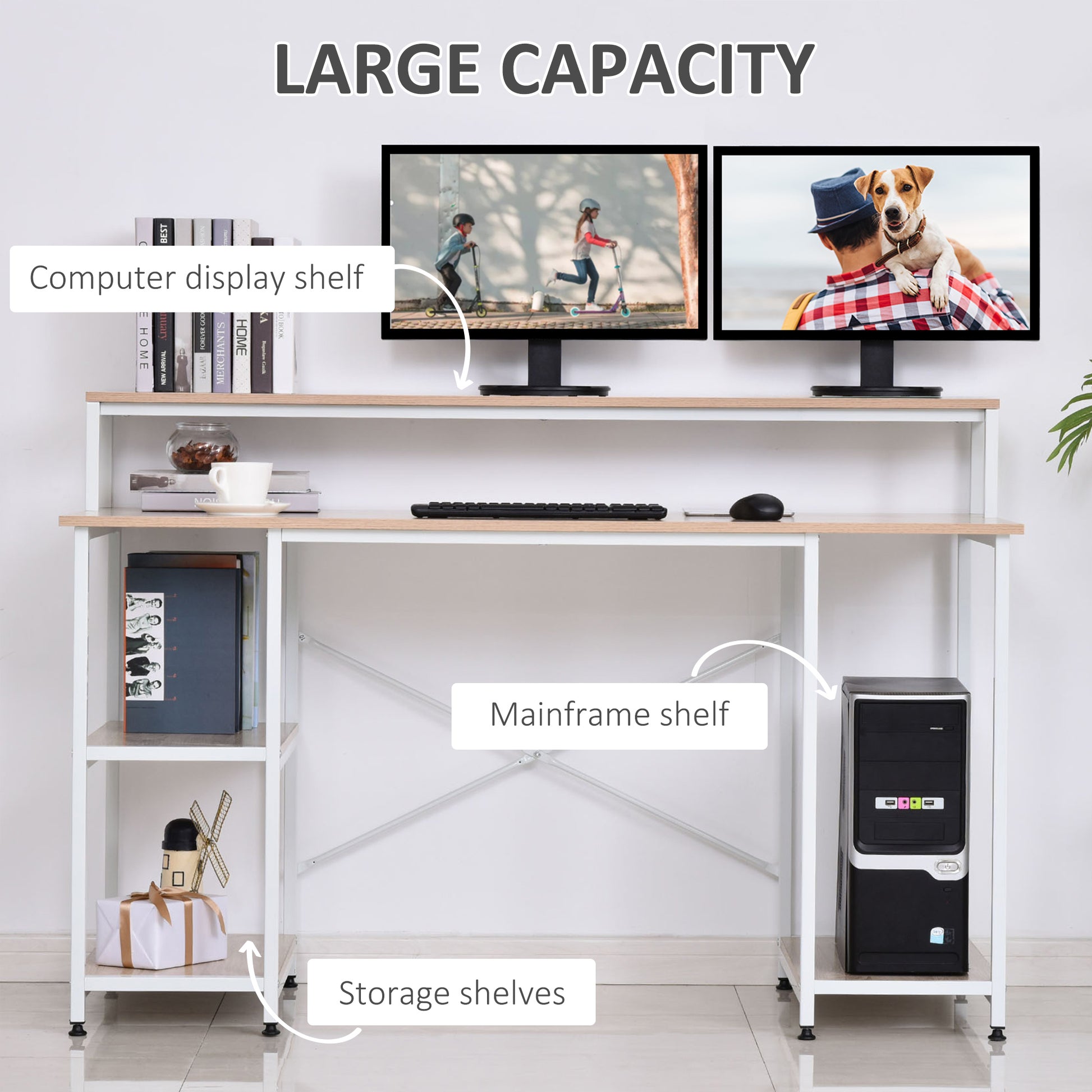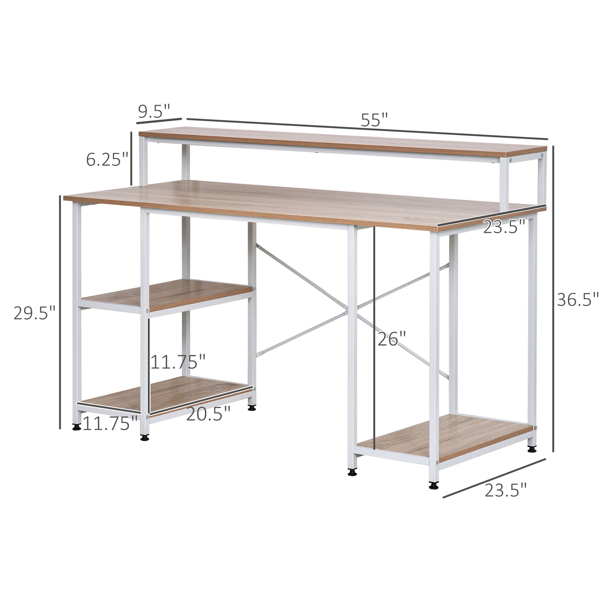 55 Inch Home Office Computer Desk Study Writing Workstation With Storage Shelves, Elevated Monitor Shelf, Cpu Stand, Durable X Shaped Construction, Oak Wood Grain Oak Engineered Wood