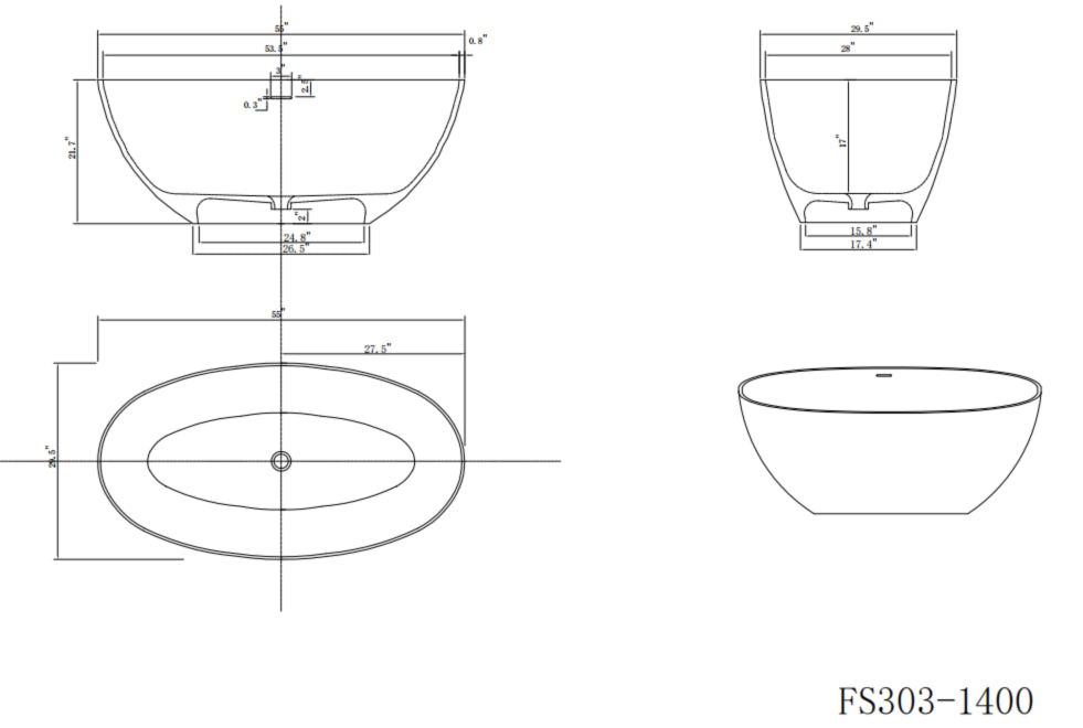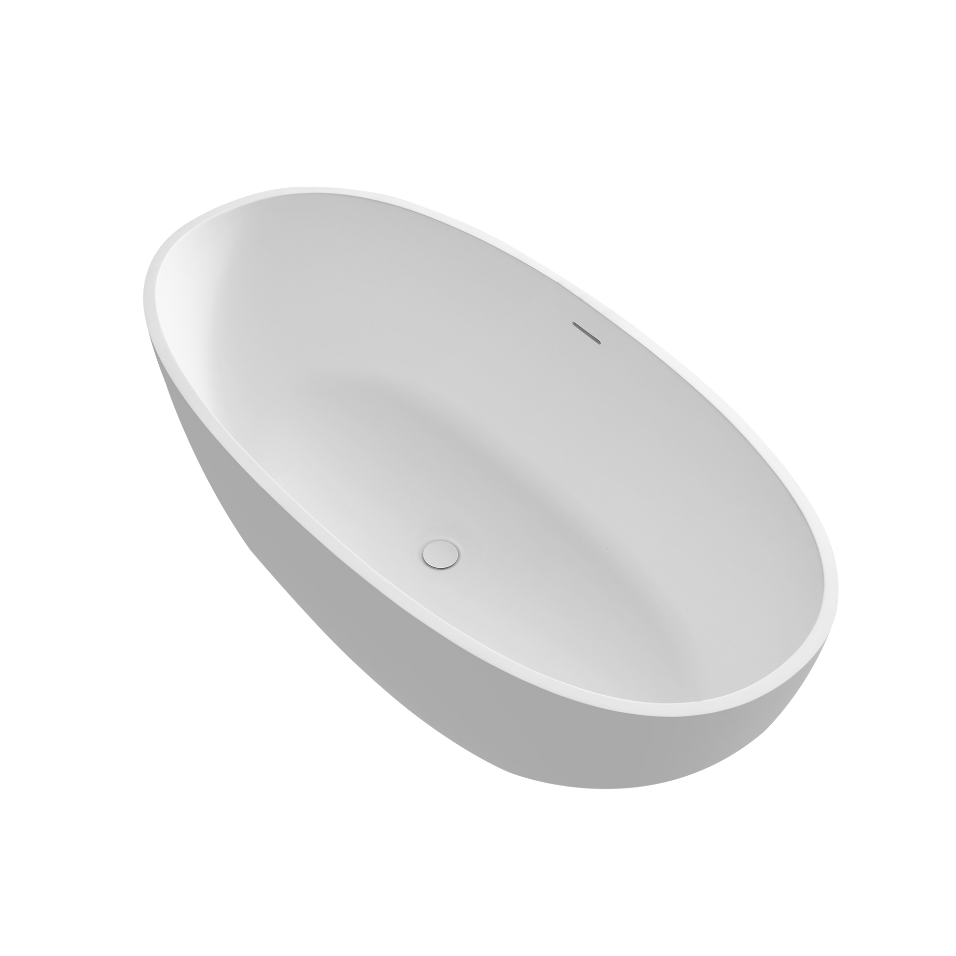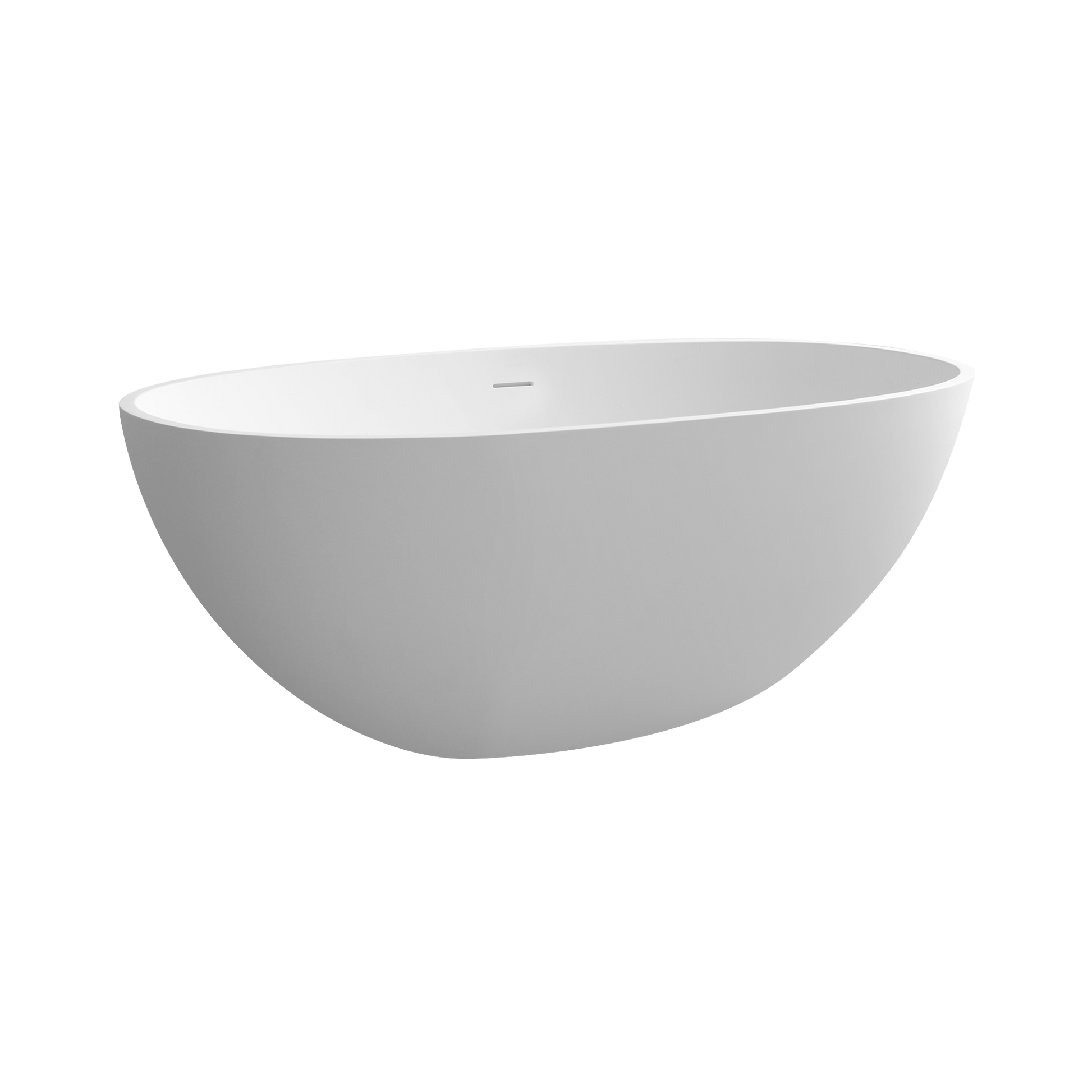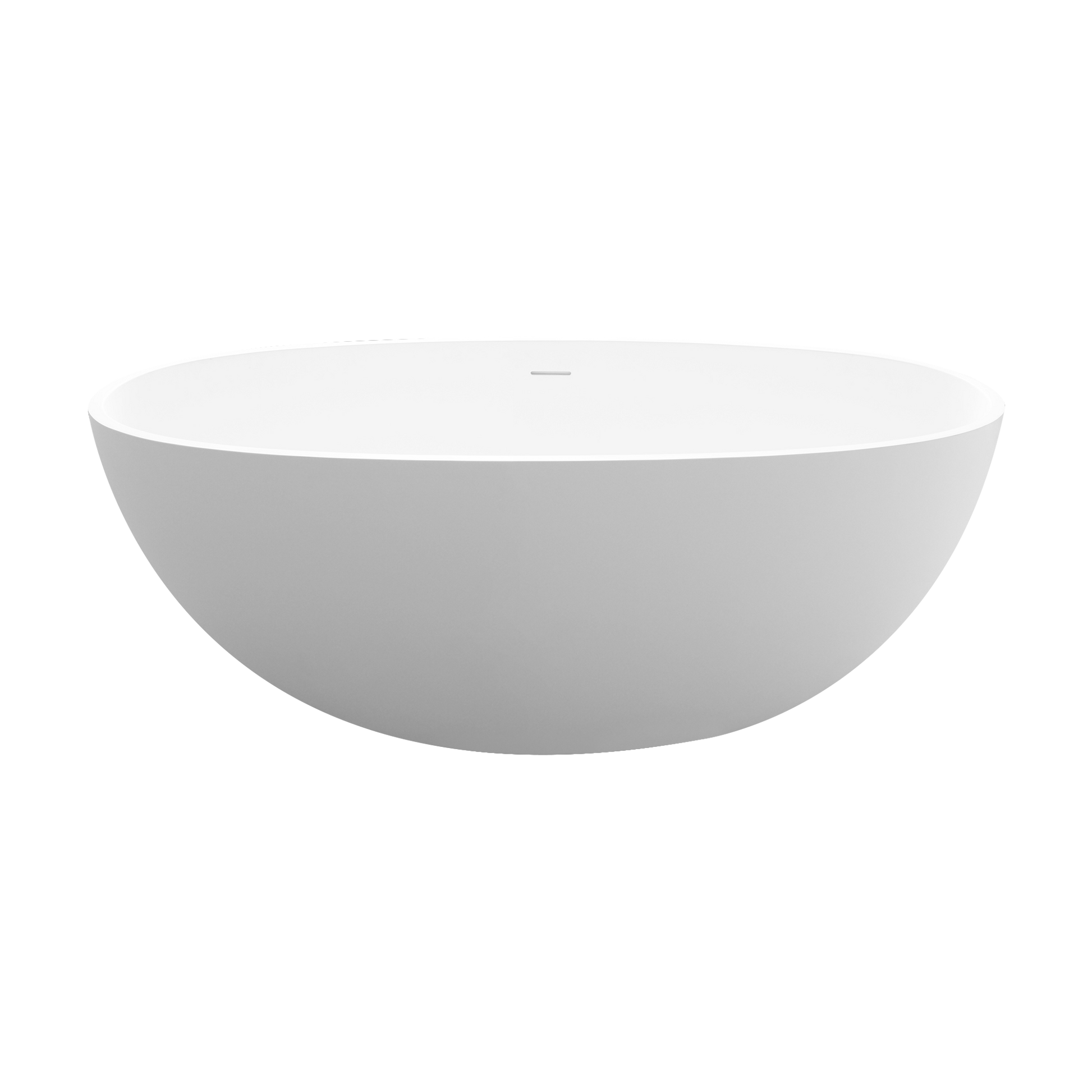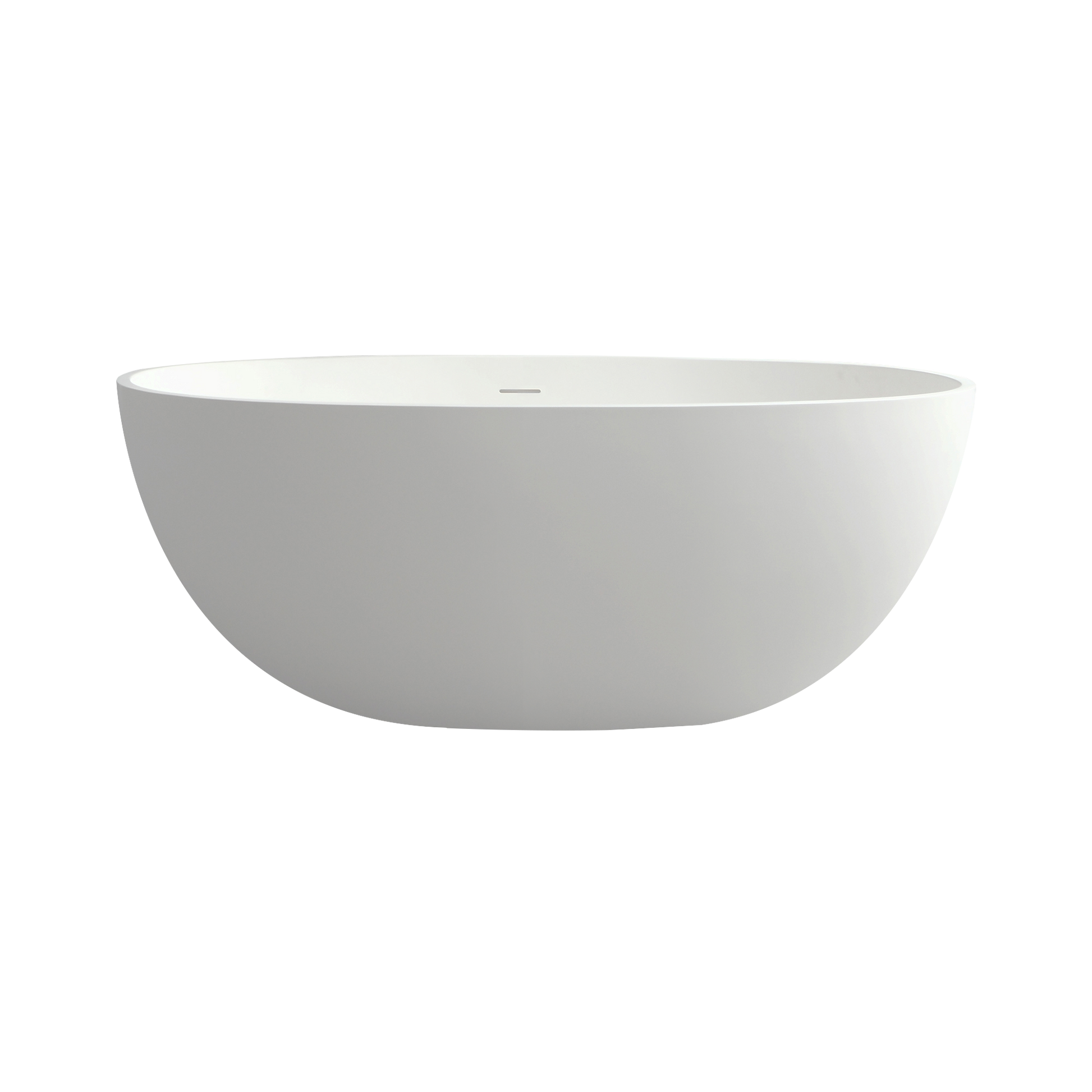 55" Solid Surface Soaking Bathtub Matte White Freestanding Tubs Matte Center Front Solid Surface