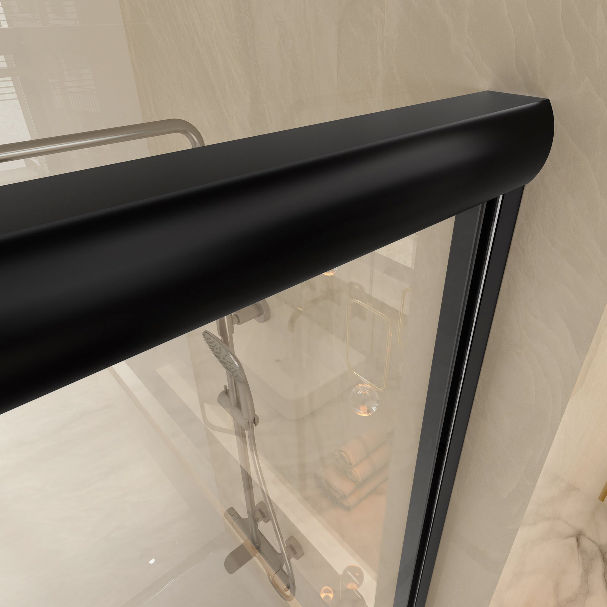55 To 59 Inches Width 72 Inches Height Double Sliding Semi Frameless Shower Door With 1 4 Inches 6Mm Clear Tempered Glass, Matte Black Finish Matte Black Bathroom European,Luxury,Modern Glass