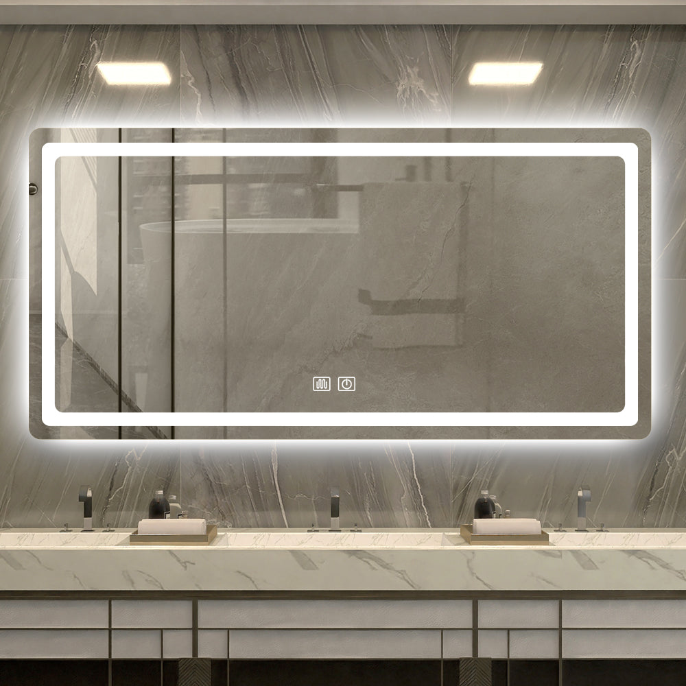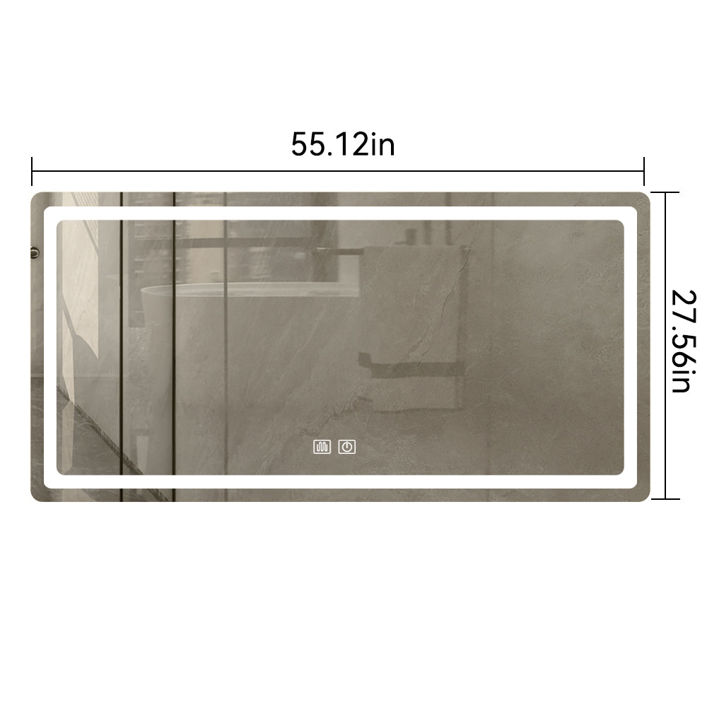 55In. H Led Single Bathroom Vanity Mirror In Polished Crystal Bathroom Vanity Led Mirror For Bathroom Wall Smart Lighted Vanity Mirrors Transparent Glass