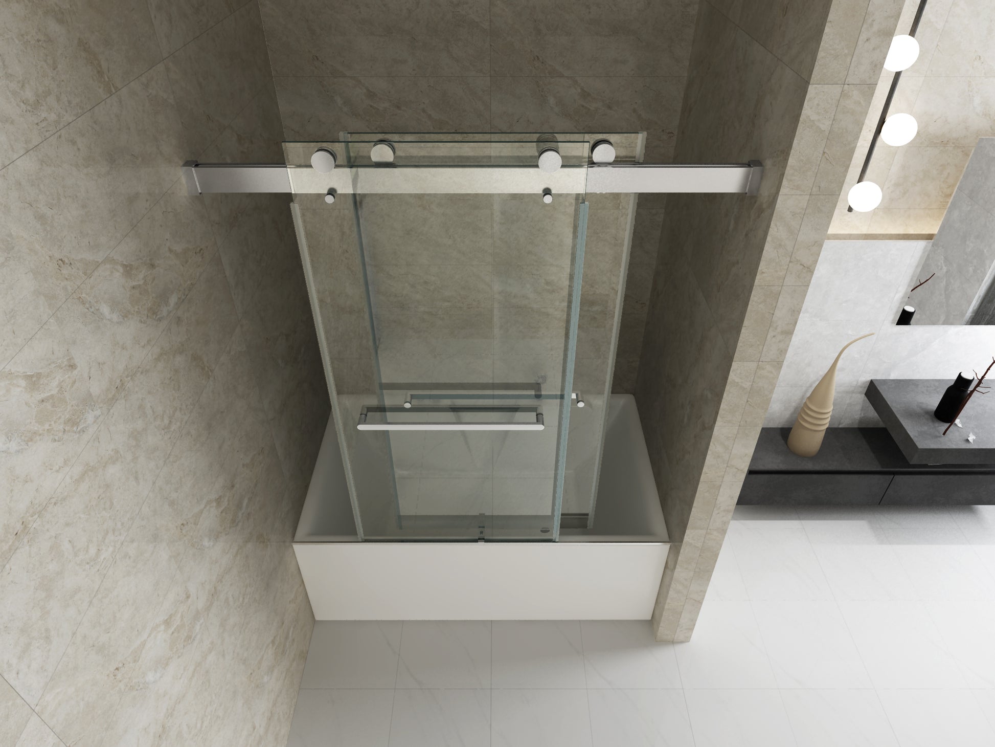 56 60 In. W X 62 In. H Frameless Double Sliding Tub Door, Bypass Tub Shower Door Soft Closing, Chrome 24D02 T60Chx Chrome Stainless Steel