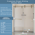 56 60 In. W X 76 In. H Frameless Shower Door, Single Sliding Shower Door, 5 16" 8Mm Clear Tempered Glass Shower Door With Explosion Proof Film, Stainless Steel Hardware, Gold 24D210 60G Combo Gold Tempered Glass