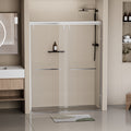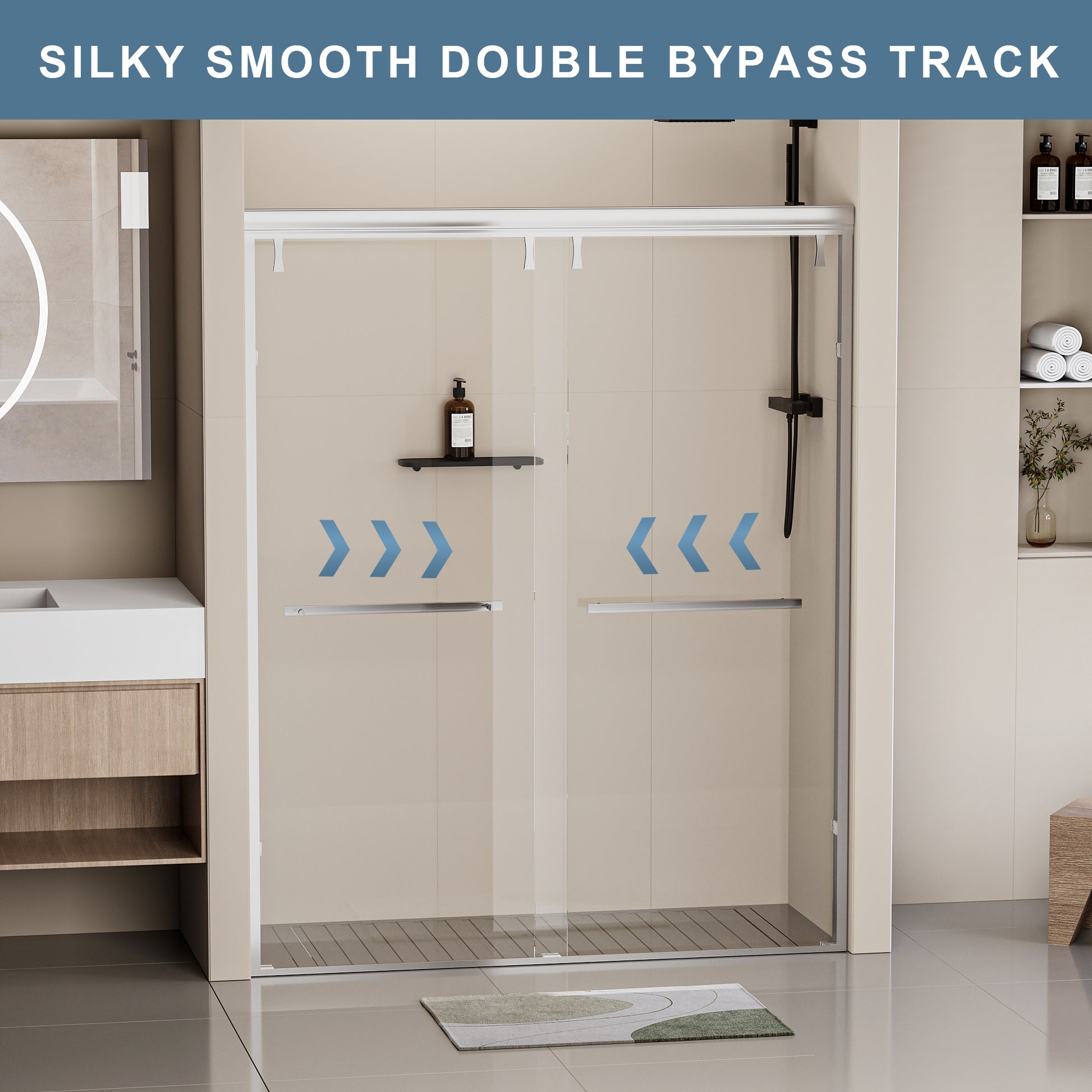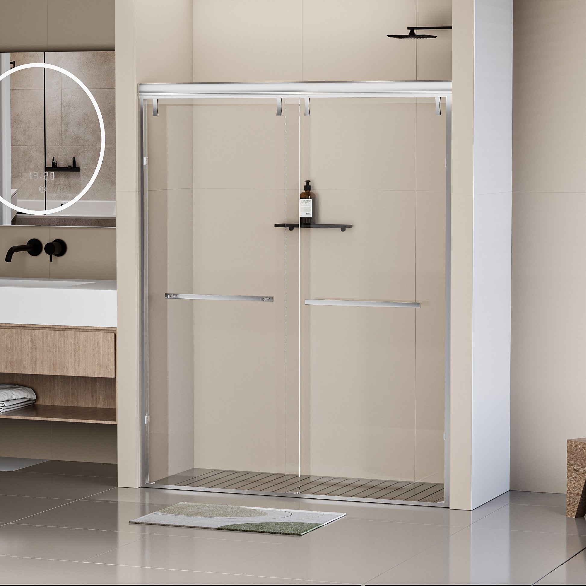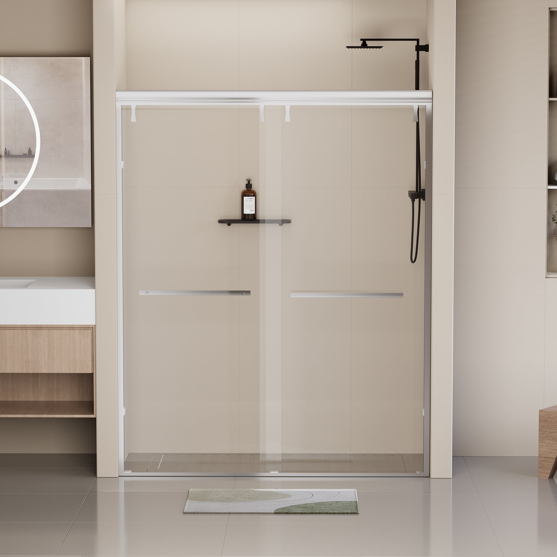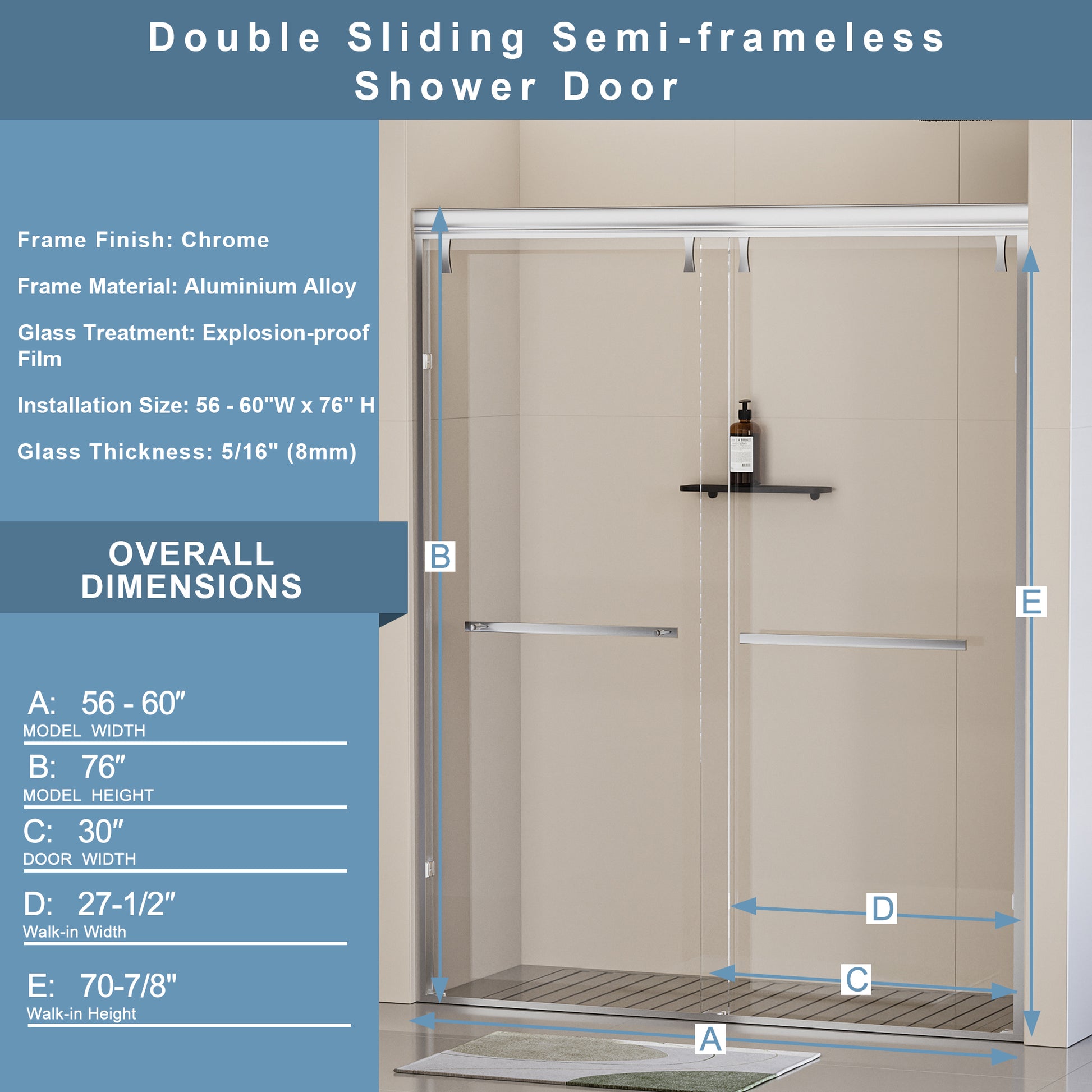 56 60 In. W X 76 In. H Semi Frameless Shower Door, Double Sliding Shower Door, 5 16" 8Mm Clear Tempered Glass Shower Door With Explosion Proof Film, Chrome 24D212 60C Combo Chrome Bathroom Aluminium Alloy