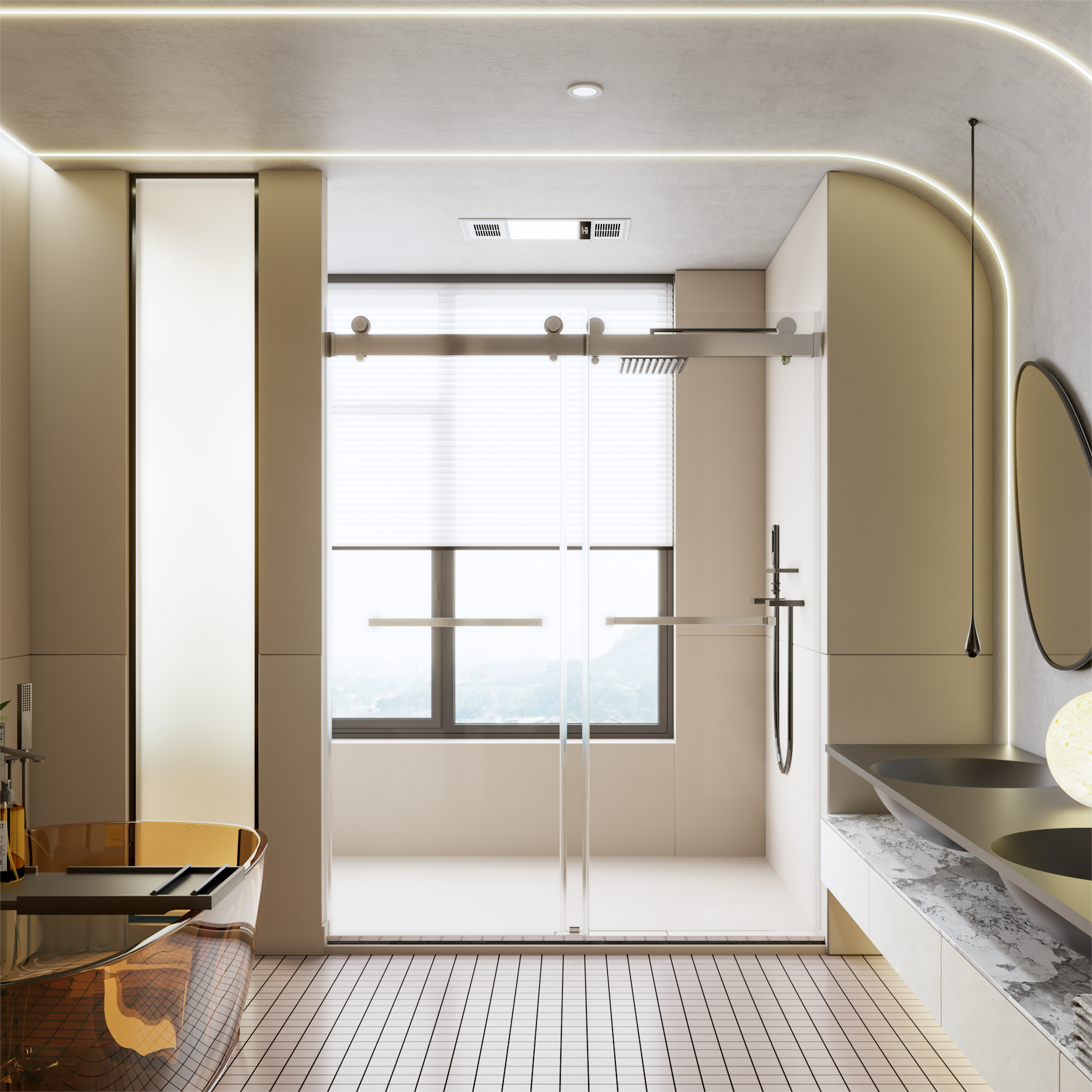56 60 Inches W *76 Inches H Frameless Double Sliding Soft Close Shower Door In Chrome, 3 8 Inches 10Mm Thick Sgcc Tempered Glass Door Chrome Glass Metal