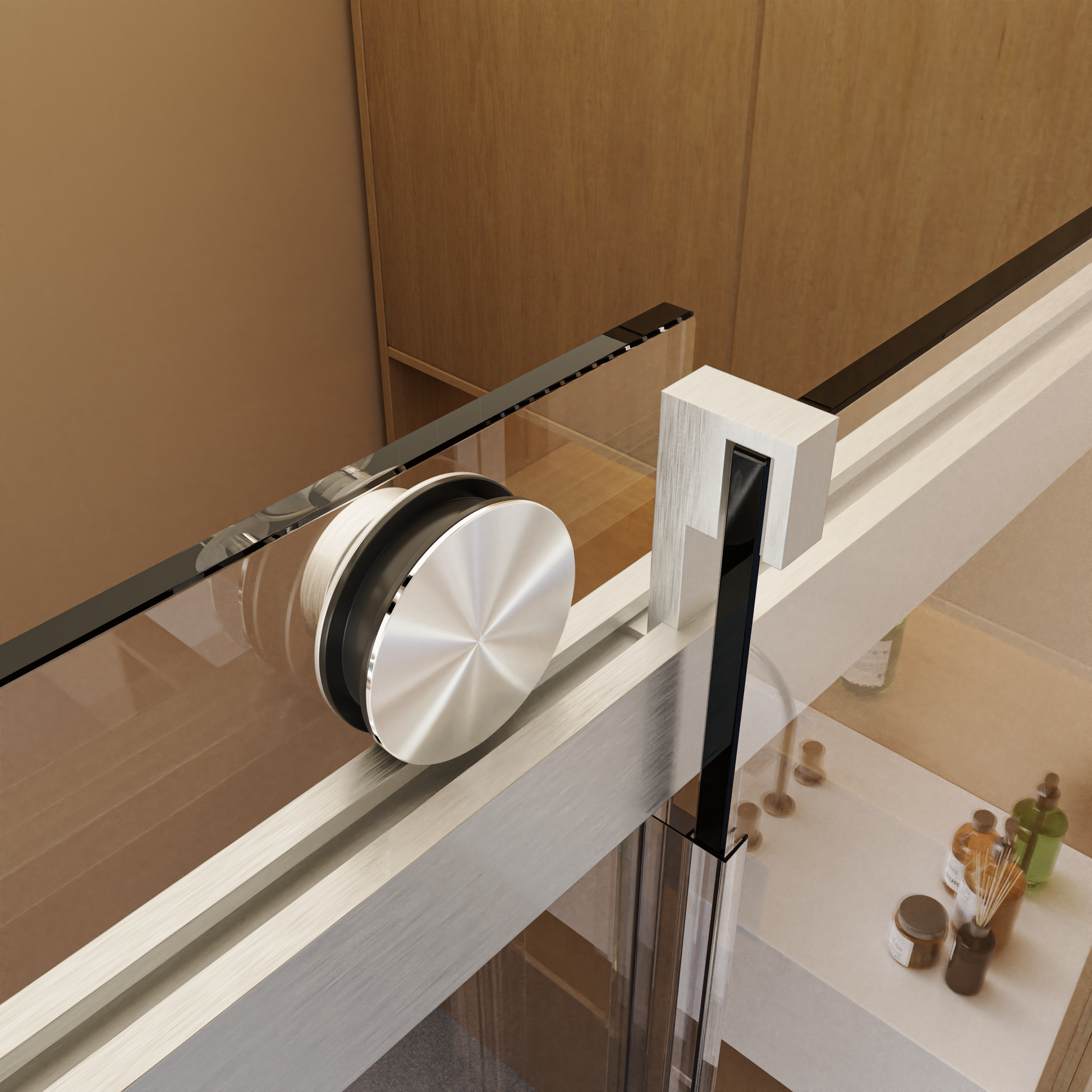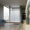56 60" W * 76" H Frameless Single Sliding Soft Close Shower Doors With Buffer, Bathroom Sliding Shower Door, 3 8" 10Mm Thick Sgcc Tempered Glass Door, Reversible Installation, Brushed Nickel Finish Brushed Nickel Glass Metal