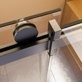 56 60" W * 76" H Frameless Single Sliding Soft Close Shower Doors With Buffer, Bathroom Sliding Shower Door, 3 8" 10Mm Thick Sgcc Tempered Glass Door, Reversible Installation, Matte Black Finish Black Glass Metal