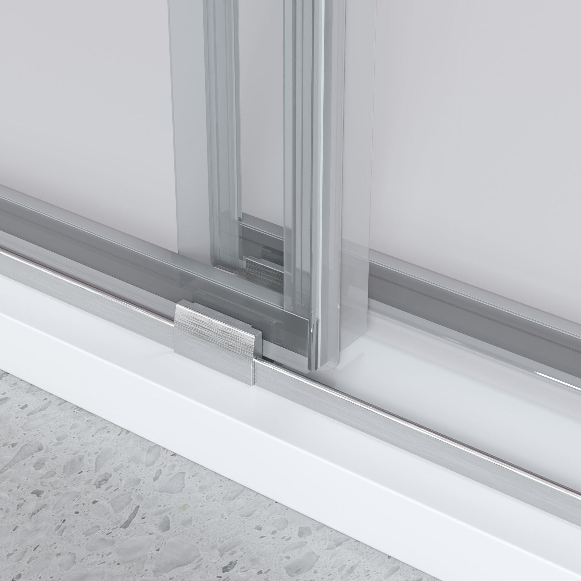 56'' 60'' W X 76'' H Double Sliding Frameless Shower Door With 3 8 Inch 10Mm Clear Glass In Brushed Nickel Brushed Nickel Stainless Steel