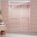 56" 60" W X 76" H Frameless Shower Door, Single Sliding Shower Door, 5 16" 8Mm Clear Tempered Glass Shower Door With Explosion Proof Film, Stainless Steel Hardware, Gold 24D210 60G Combo 1 Gold Tempered Glass