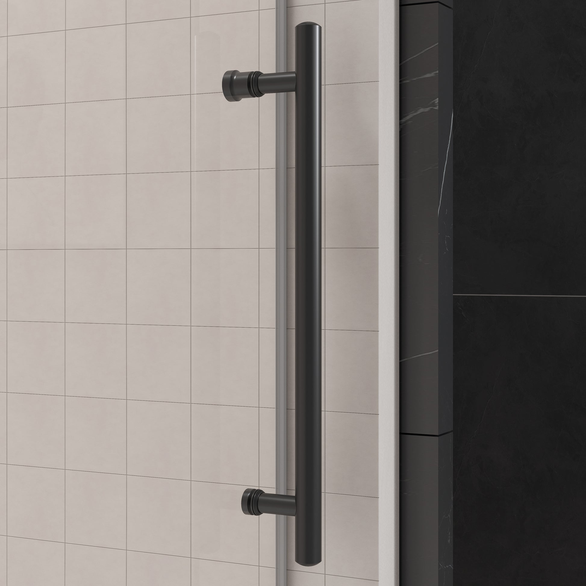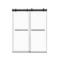 56'' 60'' W X 76'' H Single Sliding Frameless Shower Door With 3 8 Inch 10Mm Clear Glass In Matte Black Matte Black Stainless Steel