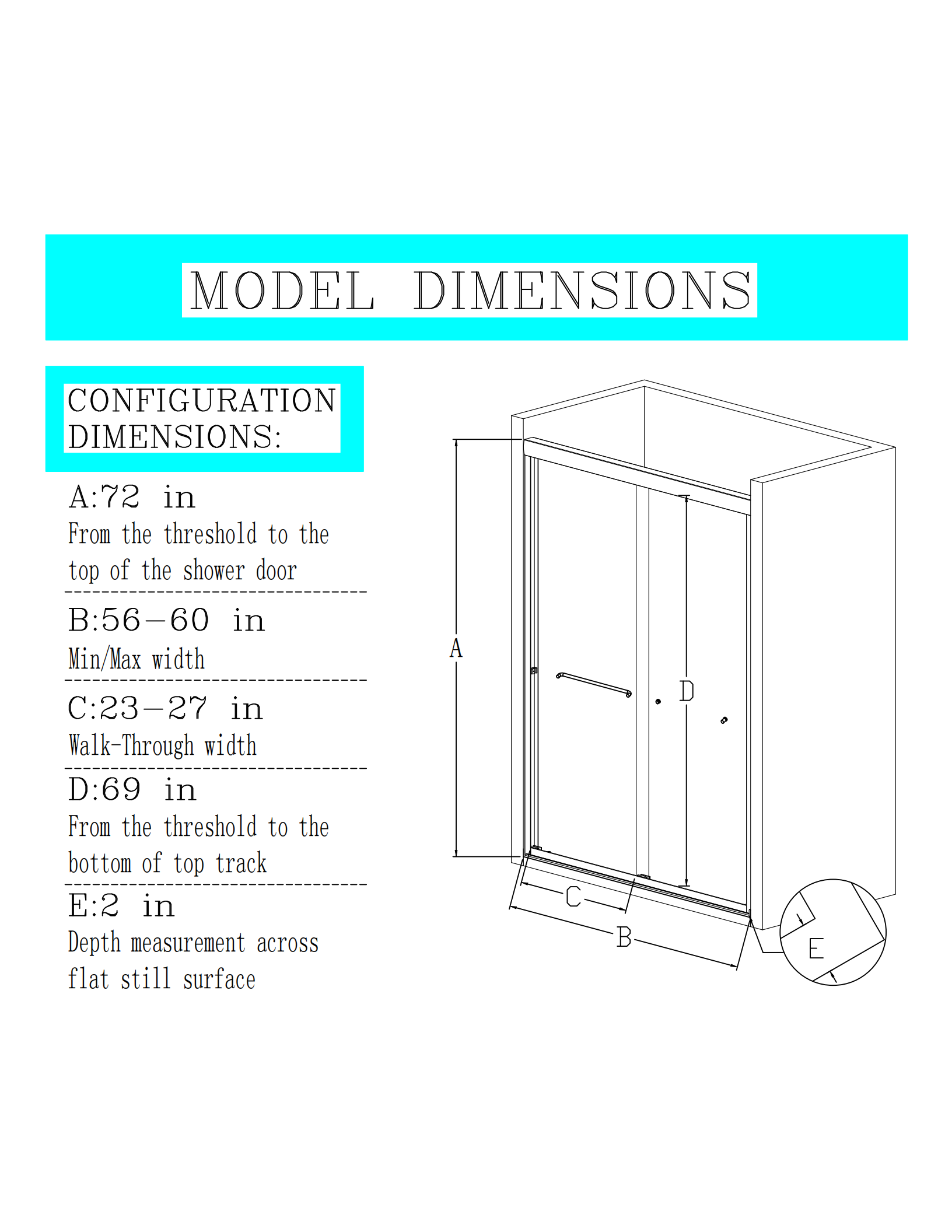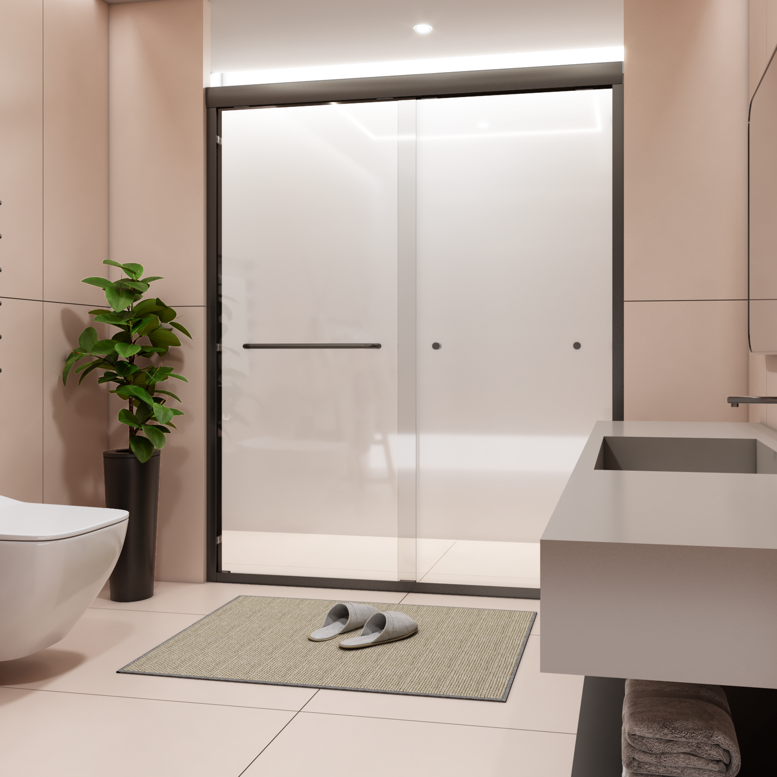 56" 60"W*72" H Semi Frameless Double Sliding Shower Door, Bypass Shower Door, 1 4" 6Mm Thick Sgcc Tempered Glass Door, Matte Black Black Glass Metal