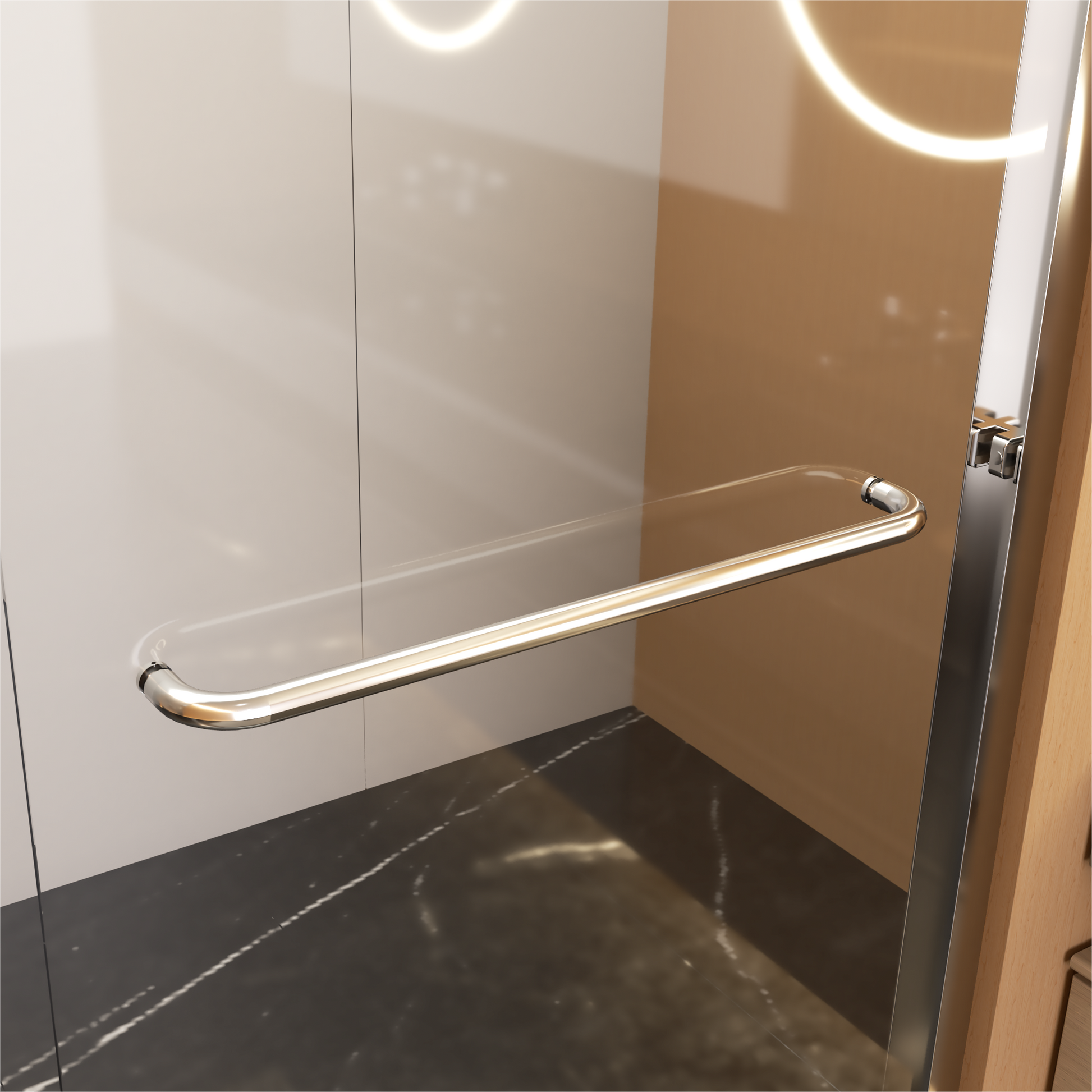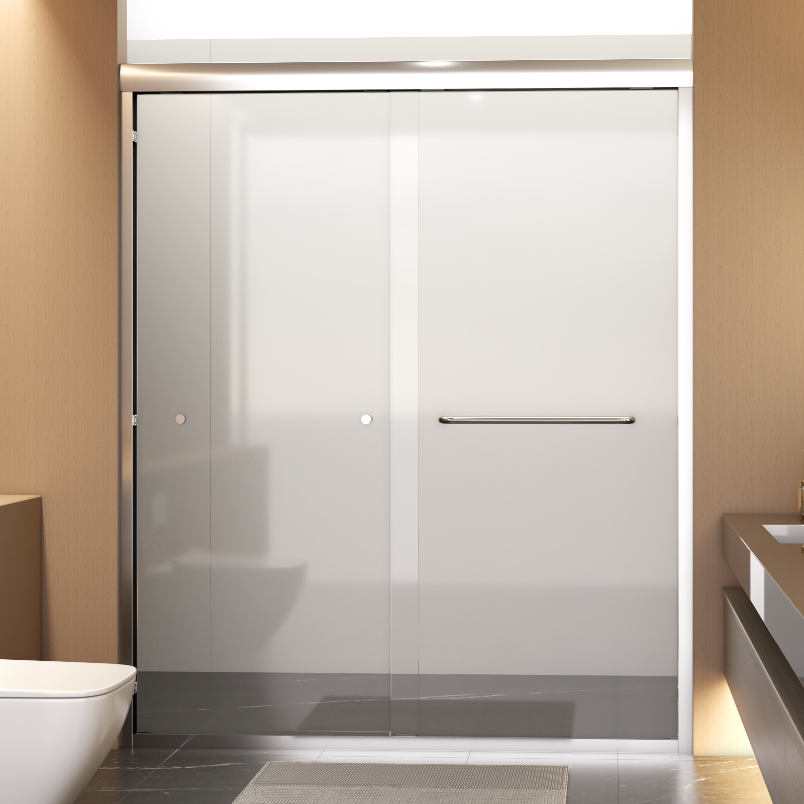 56" 60"W*72" H Semi Frameless Double Sliding Shower Door, Bypass Shower Door, 1 4" 6Mm Thick Sgcc Tempered Glass Door, Chrome Chrome Glass Metal
