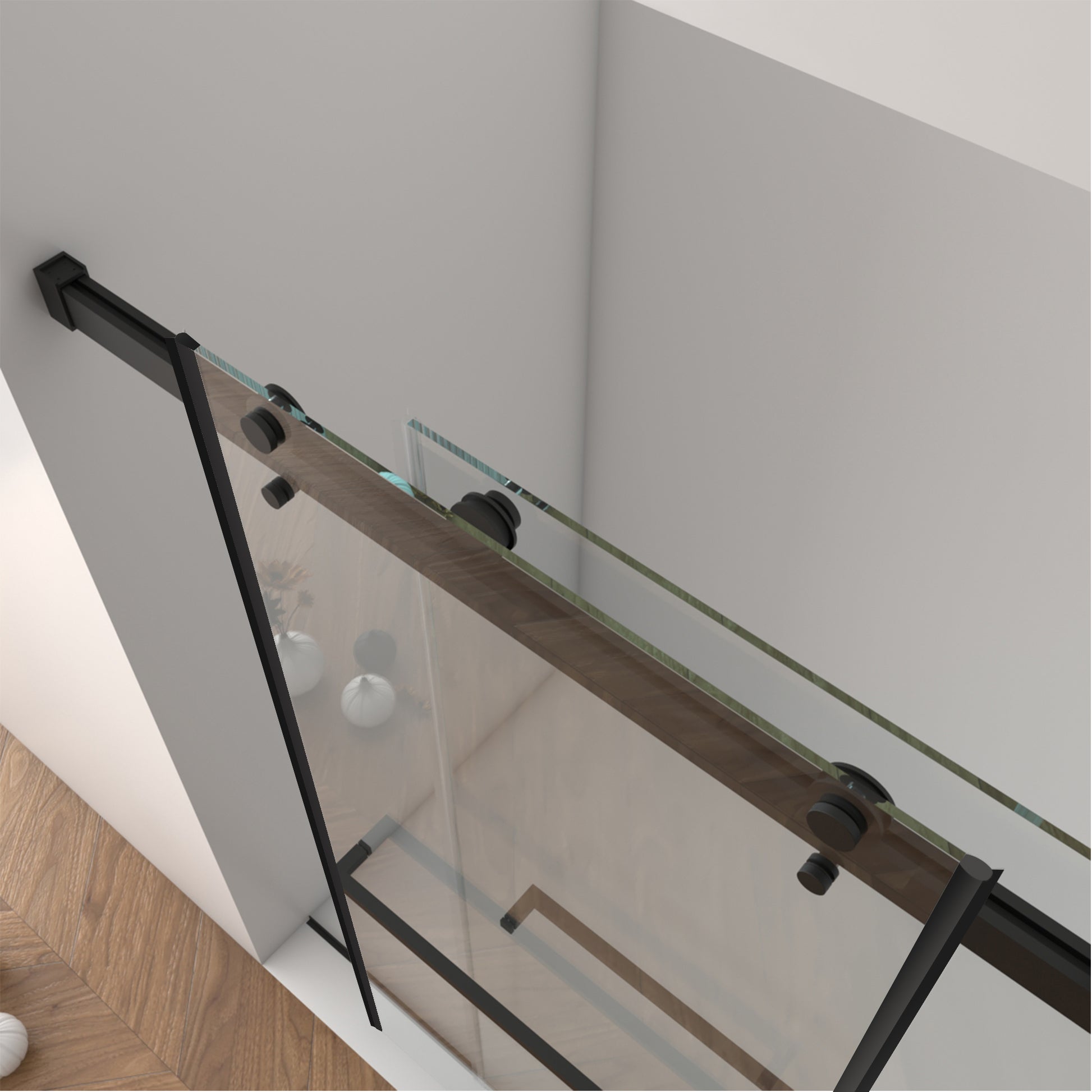 56" 60"W X 70"H Frameless , Double Sliding , 5 16" 8Mm Laminated Glass Premium Tempered Glass Shower Enclosure,Double Side Easy Clean Coat,Matte Black Finished With Buffer Matte Black Bathroom American Design Stainless Steel