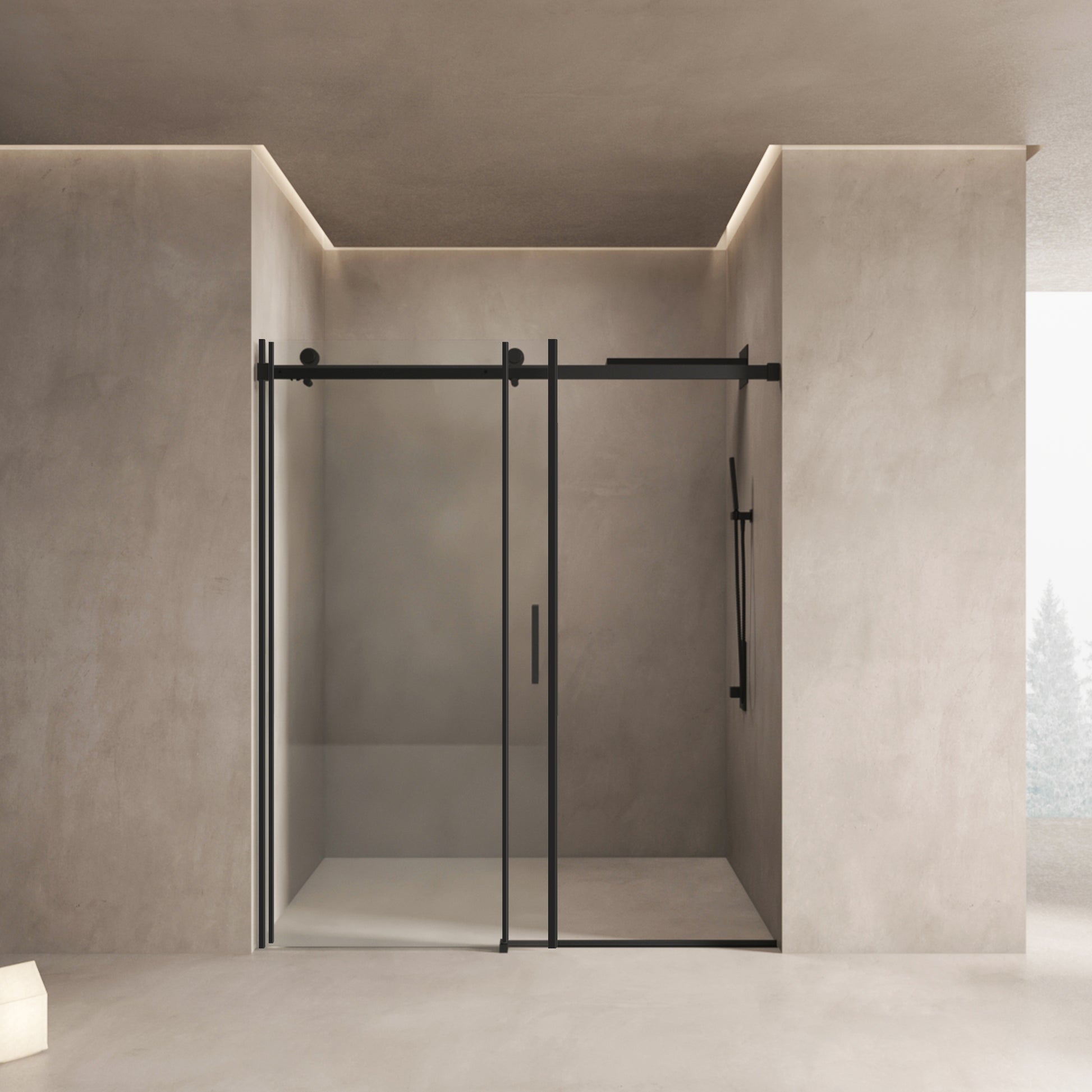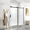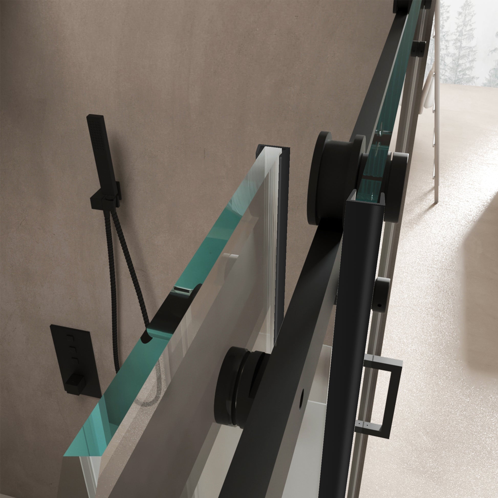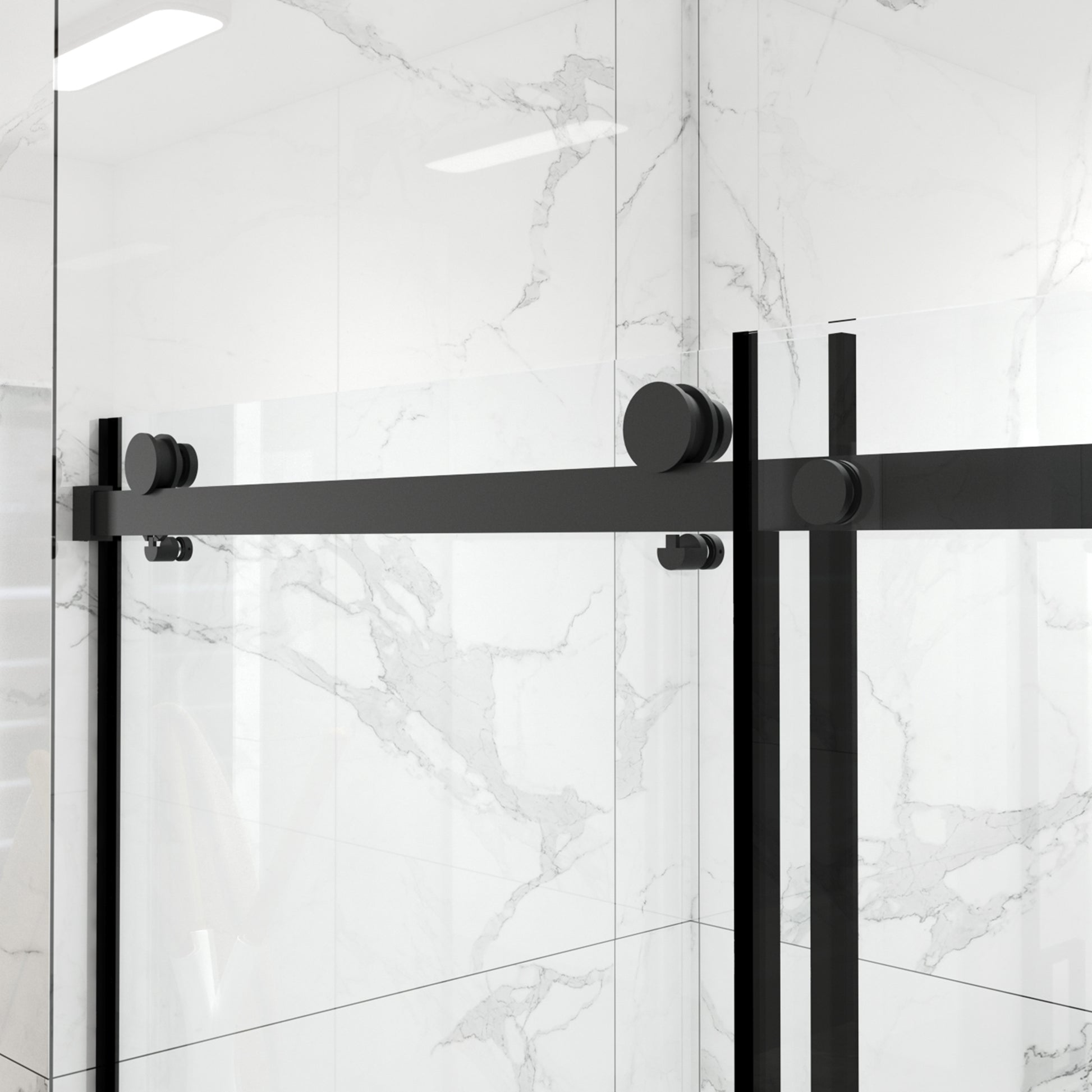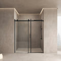 56" 60"W X 70"H Frameless , Sliding , With Premium 5 16" 8Mm Thick Tempered Glass Shower Enclosure,Double Side Easy Clean Coat,Matte Black Finished With Buffer Matt Black Bathroom American Design