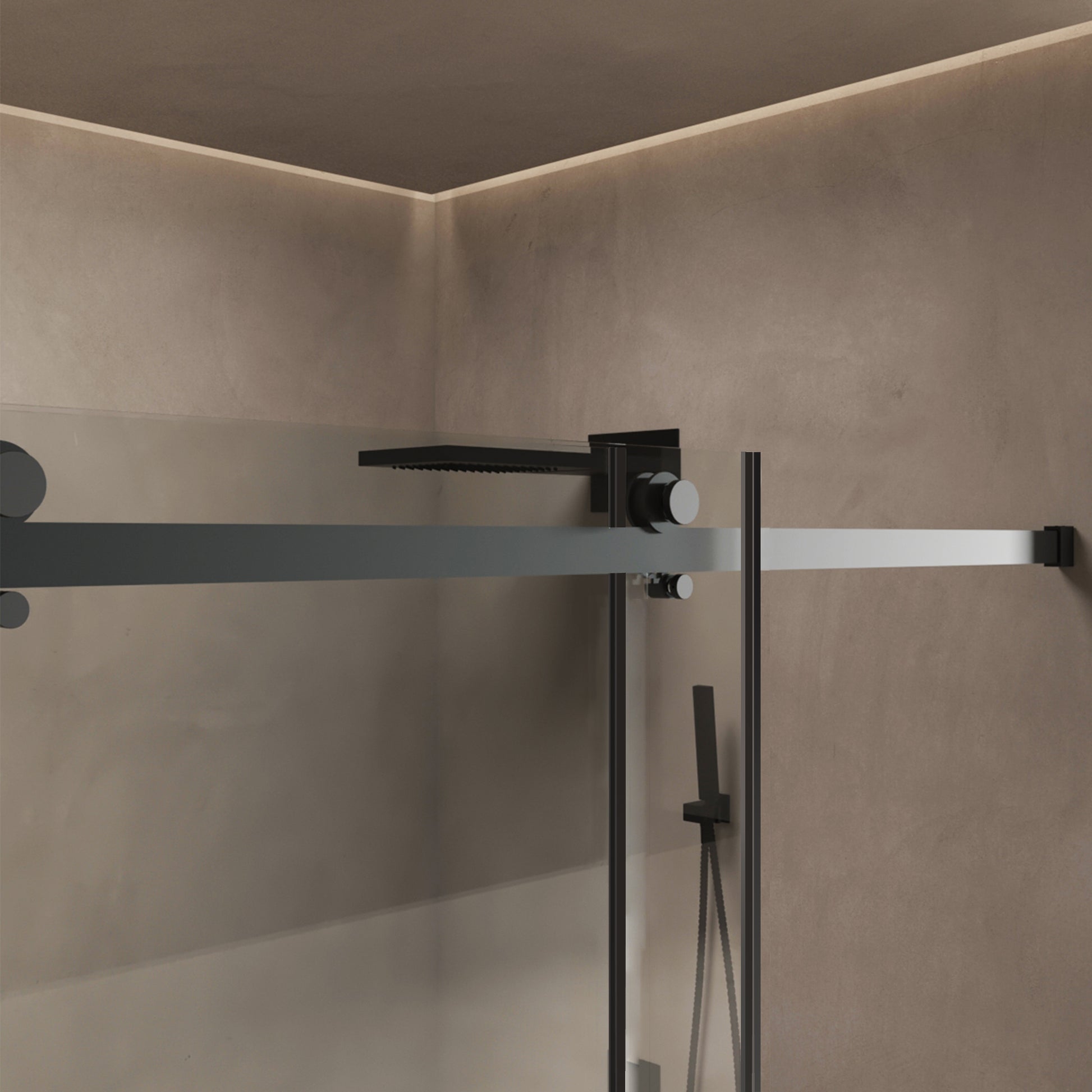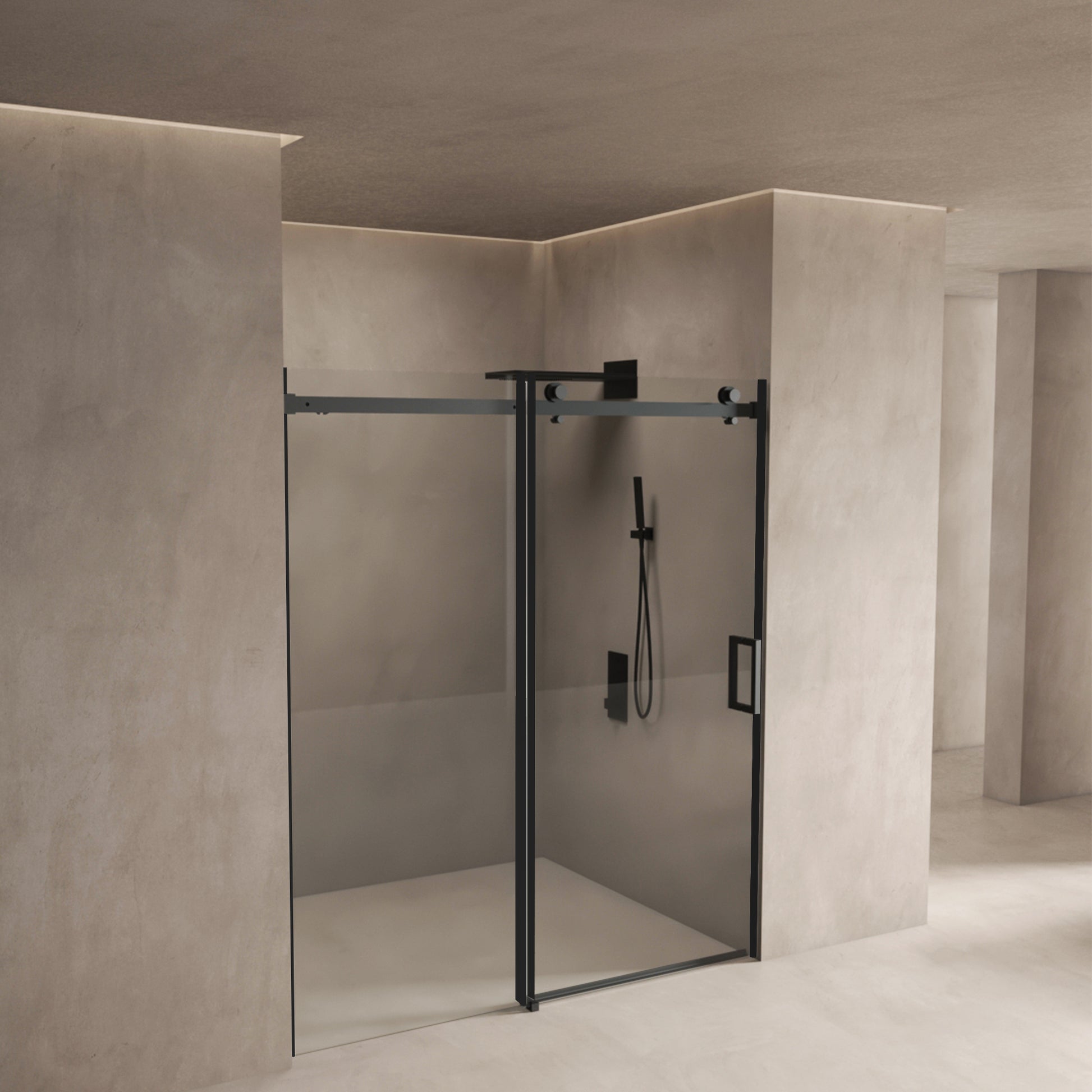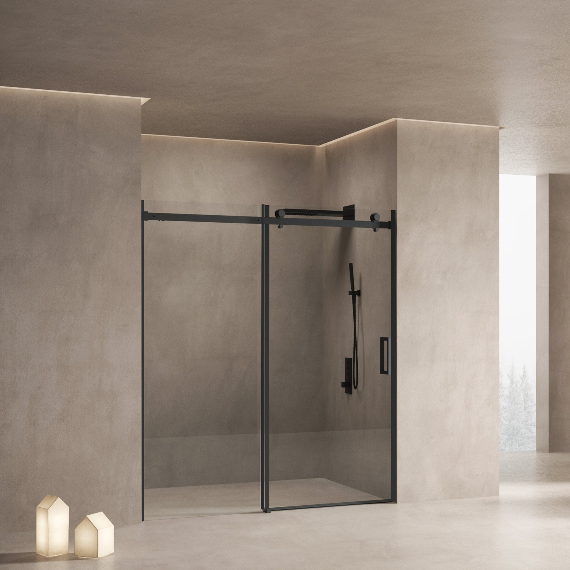 56" 60"W X 70"H Frameless , Sliding , With Premium 5 16" 8Mm Thick Tempered Glass Shower Enclosure,Double Side Easy Clean Coat,Matte Black Finished With Buffer Matt Black Bathroom American Design