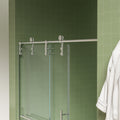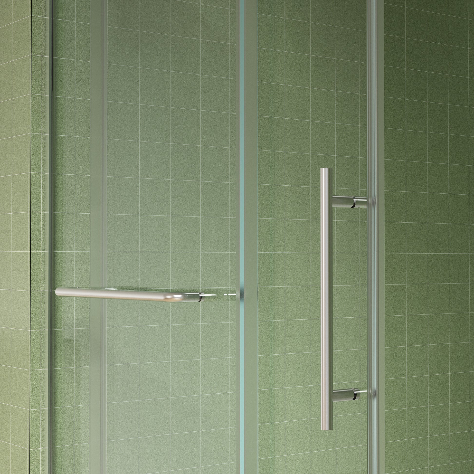 56" 60"W X 76"H Frameless , Sliding , Premium 5 16" 8Mm Thick Tempered Glass Shower Enclosure With Towel Bar ,Double Side Easy Clean Coat,Brushed Nickel Finished With Buffer Brushed Nickel Bathroom American Design Stainless Steel