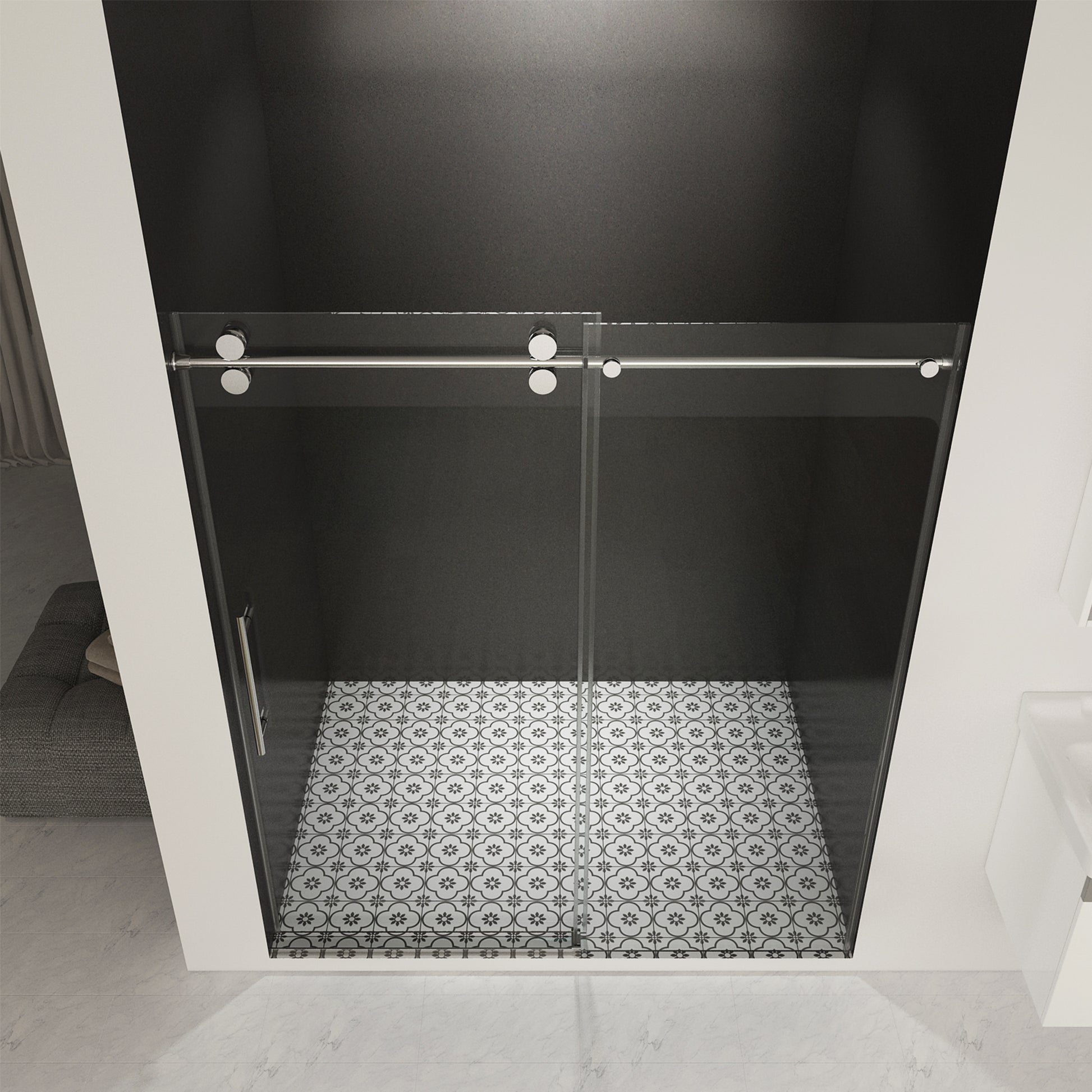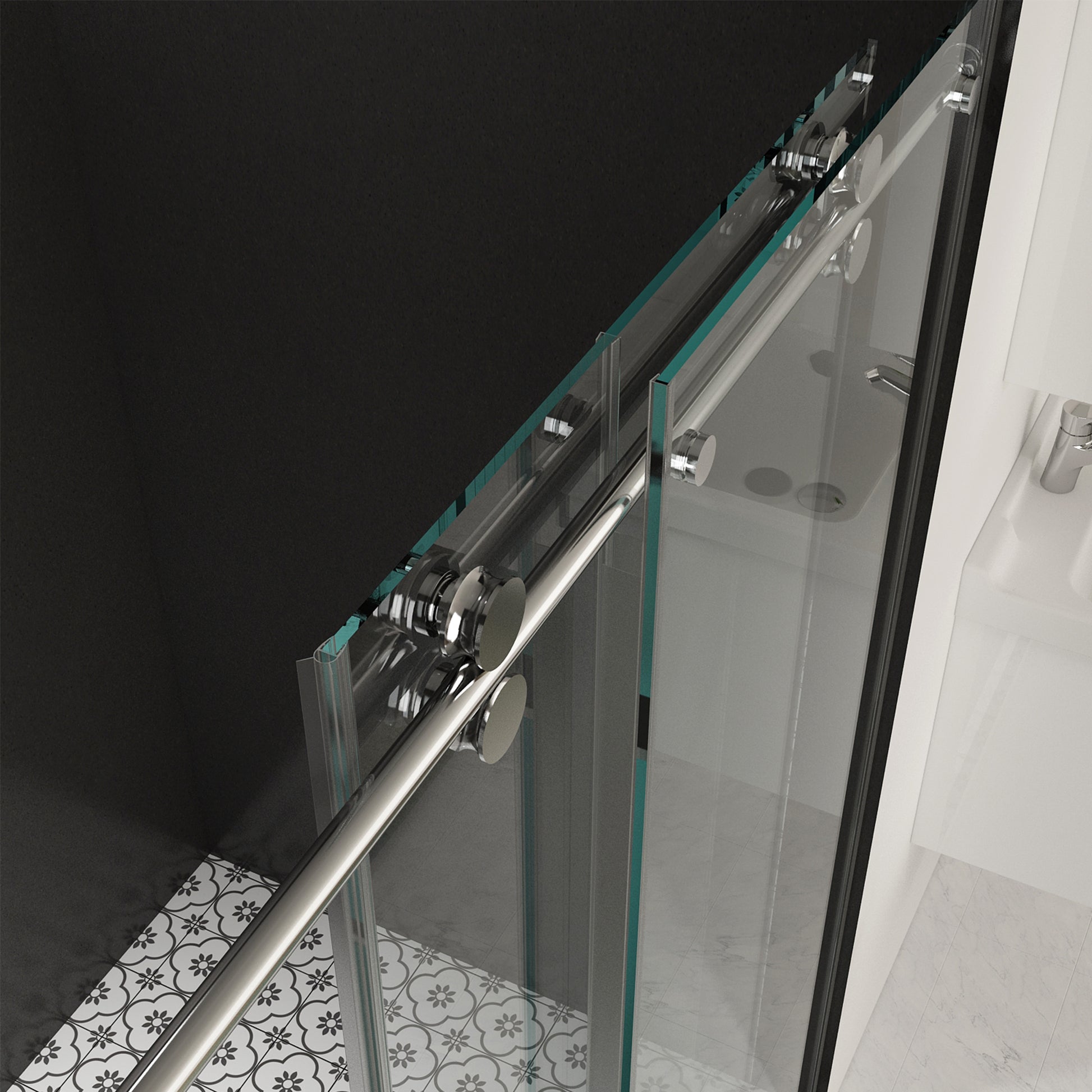 56" 60"W X 76"H Frameless , Sliding , With Premium 3 8" 10Mm Thick Tempered Glass Shower Enclosure ,Double Side Easy Clean Coat,Chrom Finished With Buffer Chrome Bathroom American Design Stainless Steel