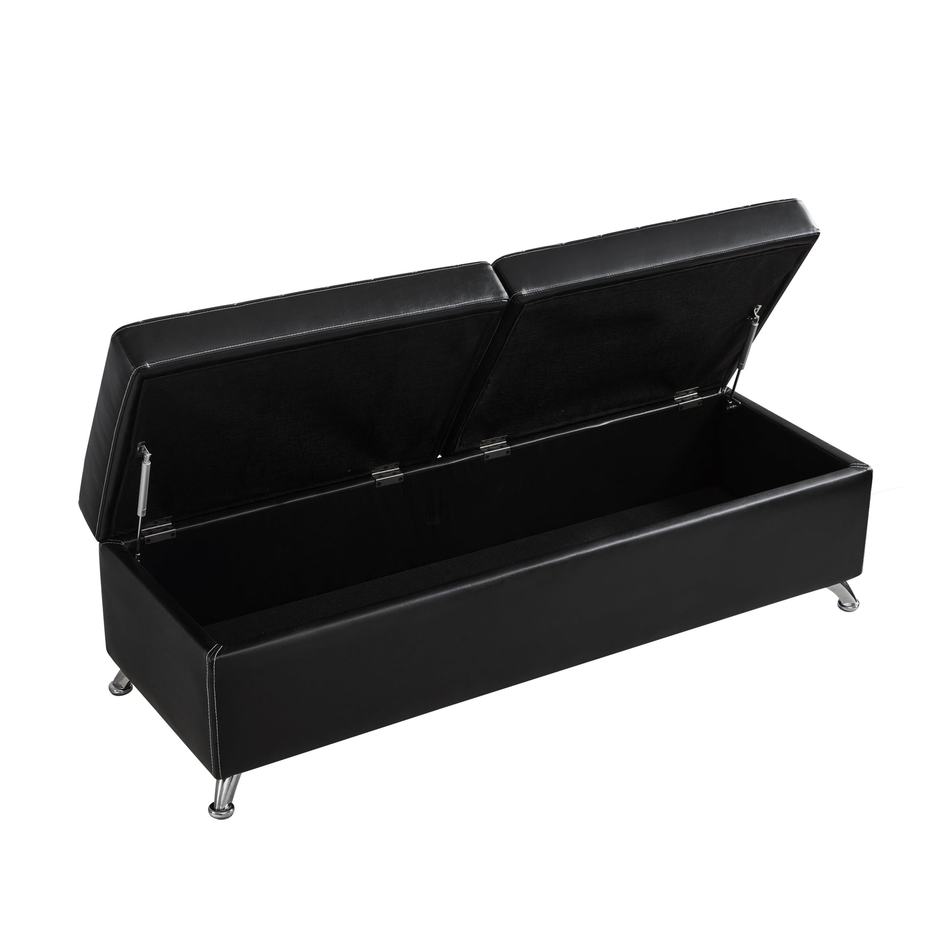 56.7" Bed Bench With Storage Black Leather Black Pu