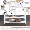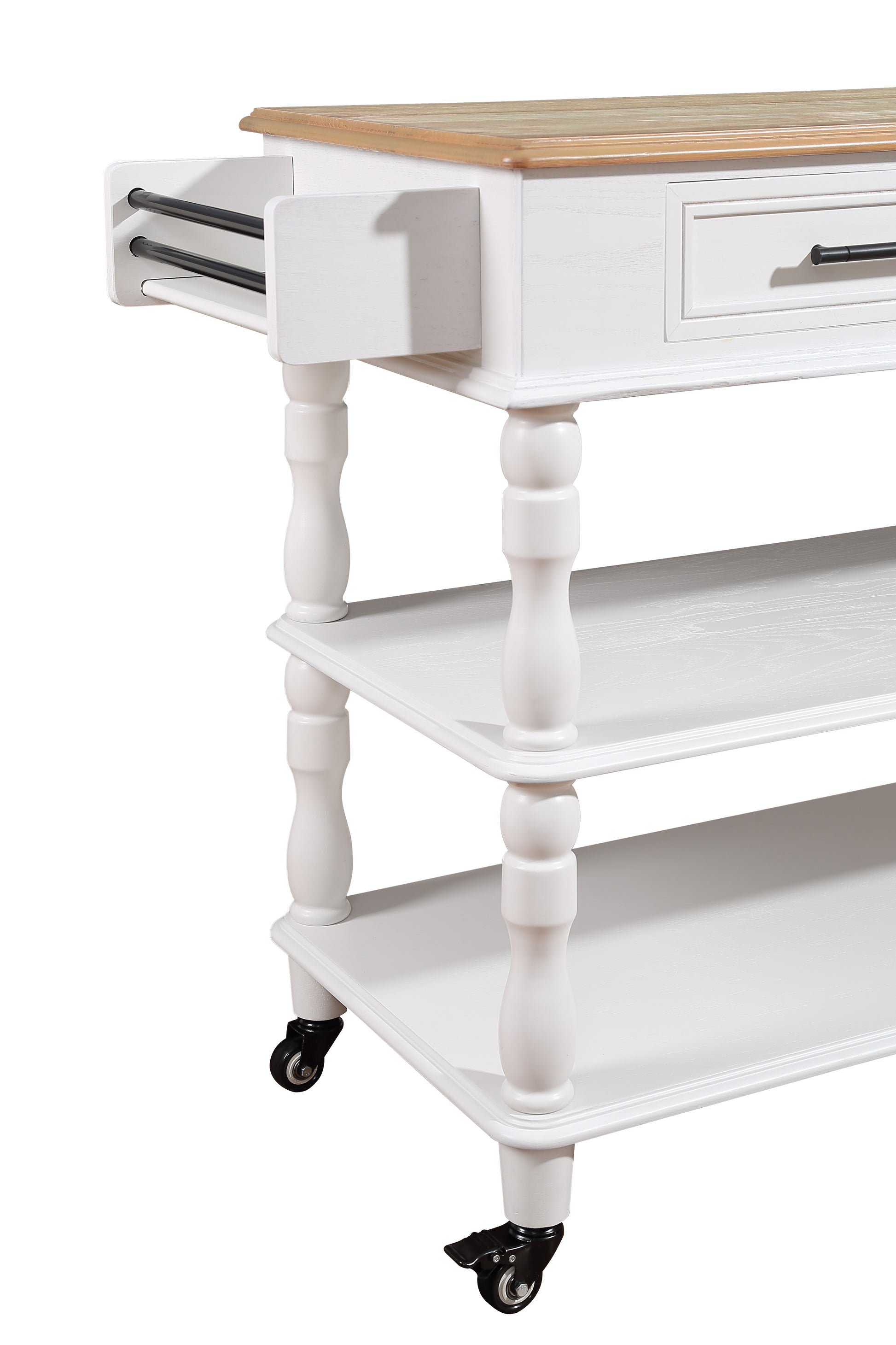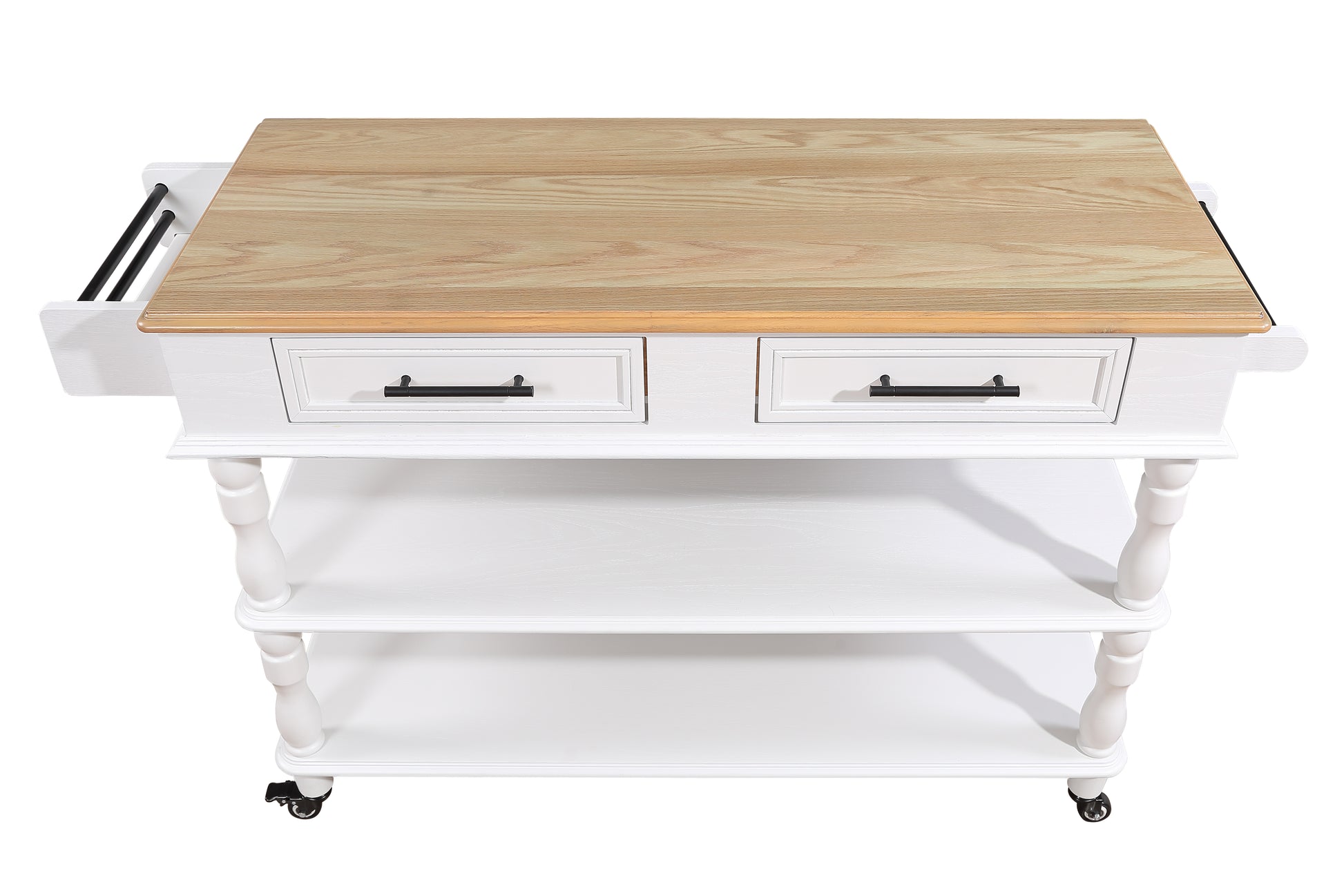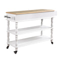 56 Inch Rolling Kitchen Island With Storage,Kitchen Cart With Solid Oak Wood Top,Two Sided Kitchen Island Cart On Wheels ,Wine And Spice Rack, Large Kitchen Cart With 2 Drawers, Milk White Natural Top Milk White Dining Room American Design,Antique