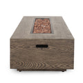 56" Outdoor 50,000 Btu Rectangular Iron Propane Fire Pit, Brown Wood Pattern Tank Cover Not Included Wood Iron