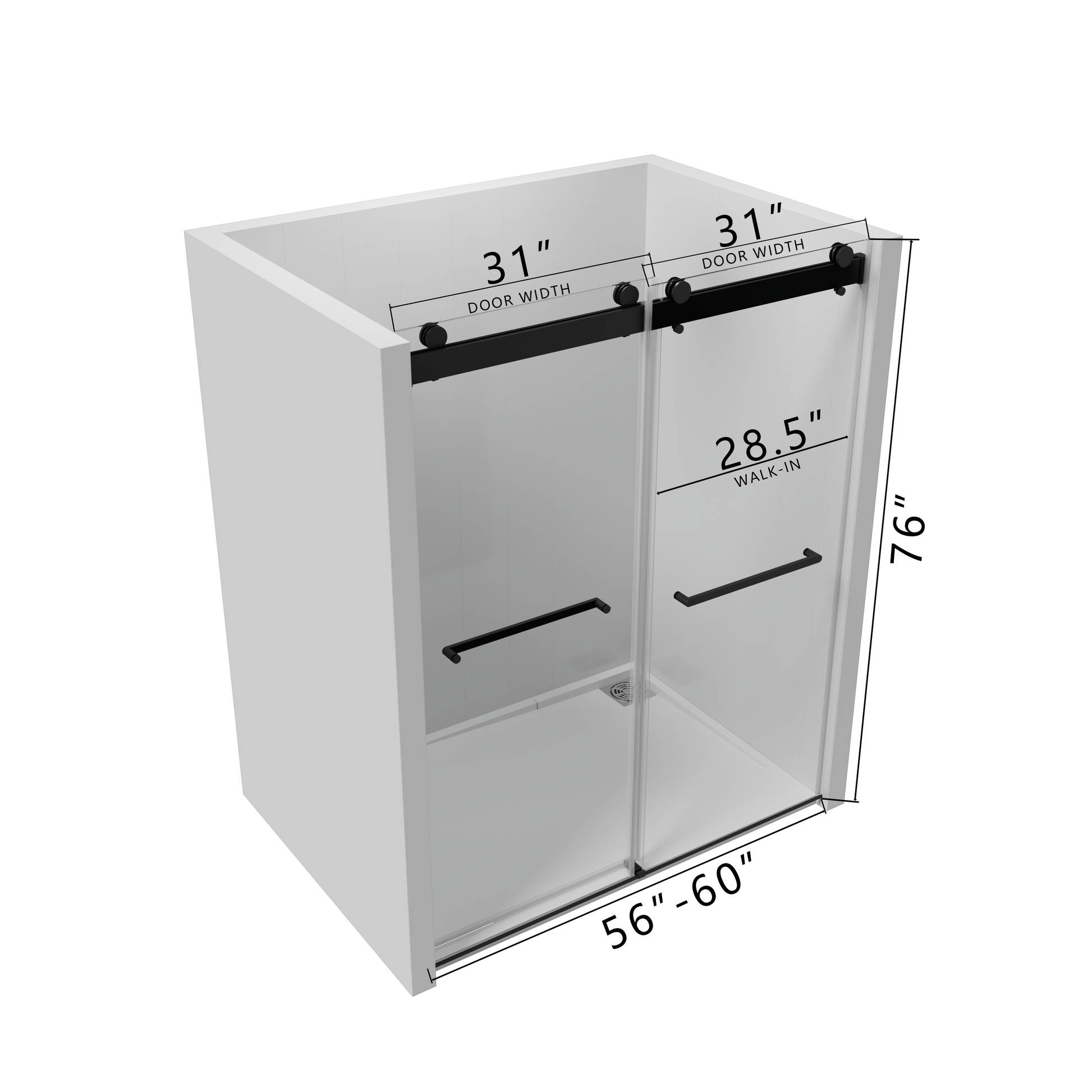56 To 60 In. W X 76 In. H Double Sliding Frameless Soft Close Shower Door With Premium 3 8 Inch 10Mm Thick Tampered Glass And Easy Cleaning Coating, Stainless Steel In Matte Black 22D02 60Mb Matte Black Stainless Steel
