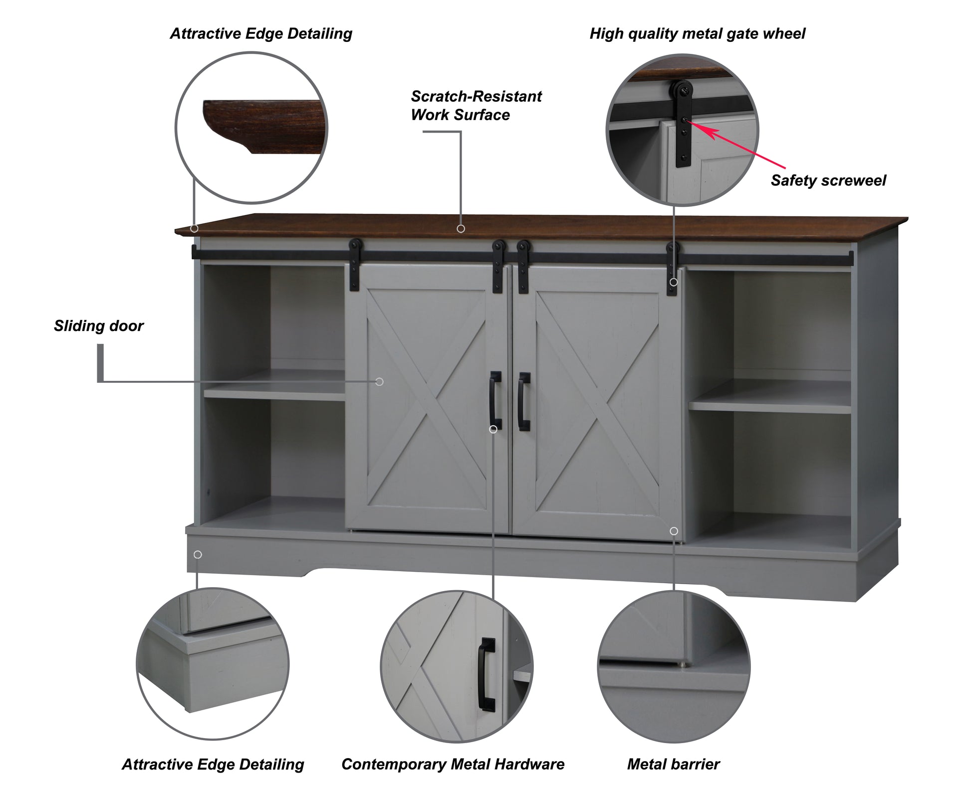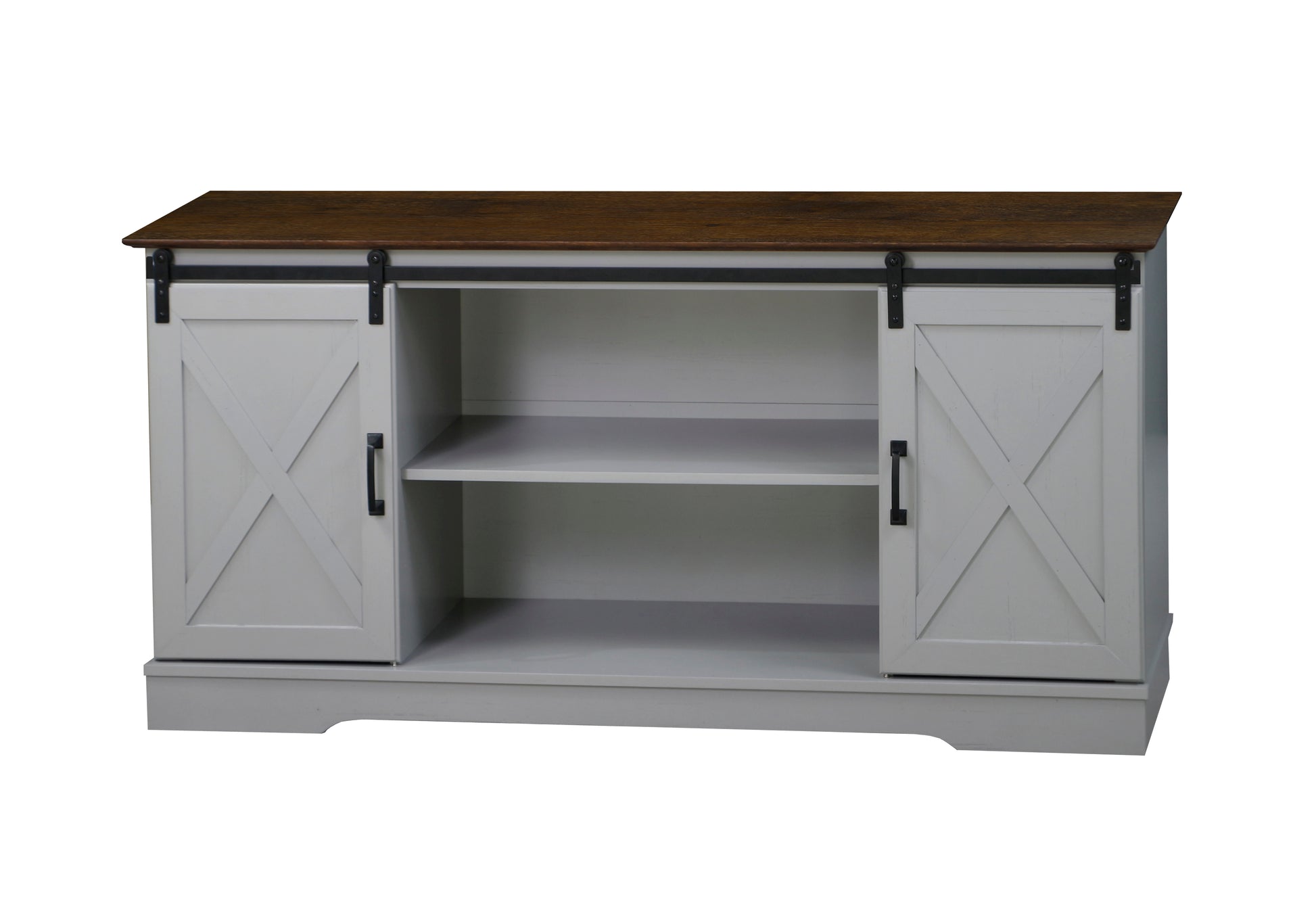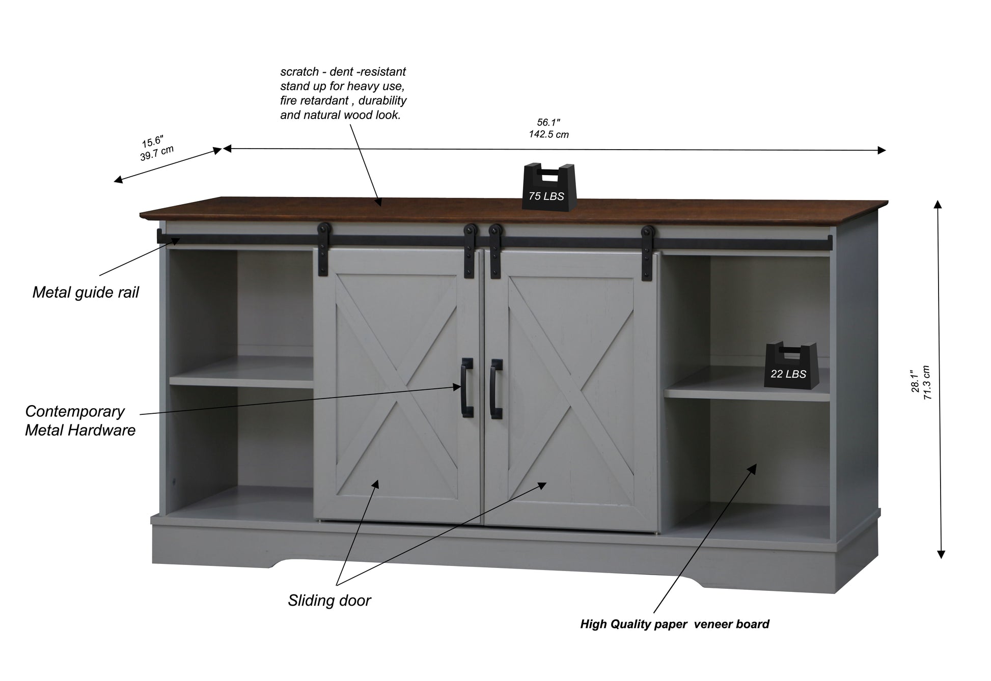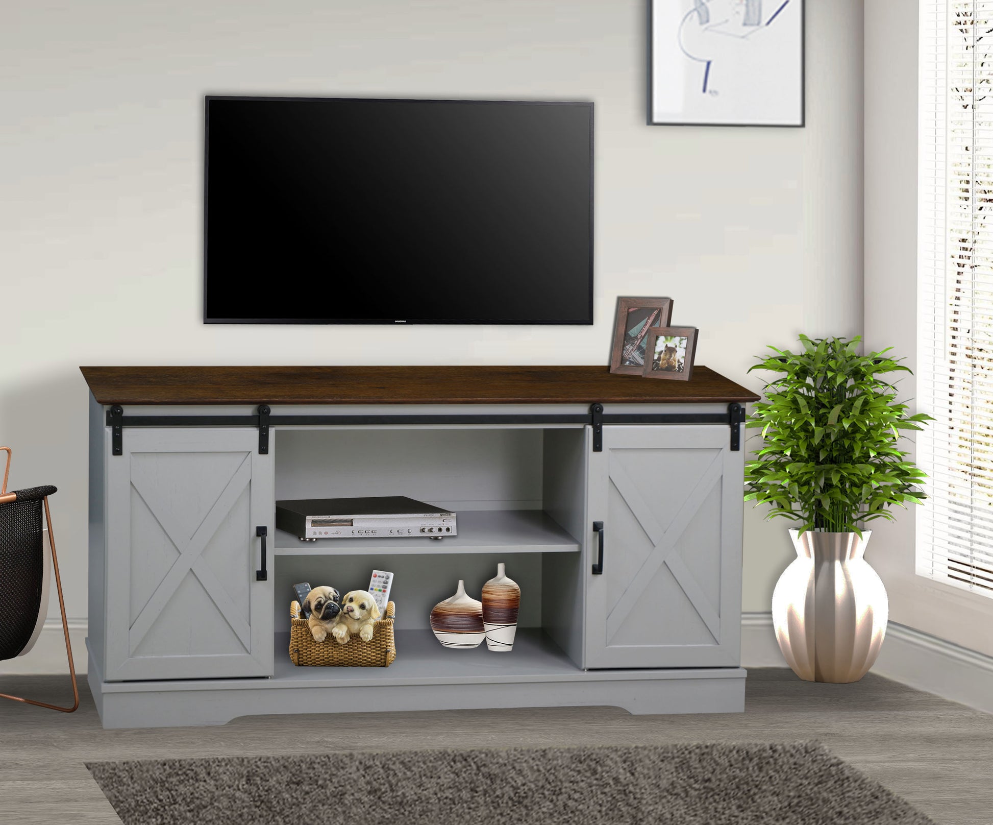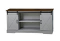 "56"" Tv Stand With 2 Barndoor" "Farmhouse Style Media Console With Barn Door Sliders Cape Code Gray And Rosewood Grain Finish, Multipurpose Entertainment Center" Multicolor 50 59 Inches Solid Wood
