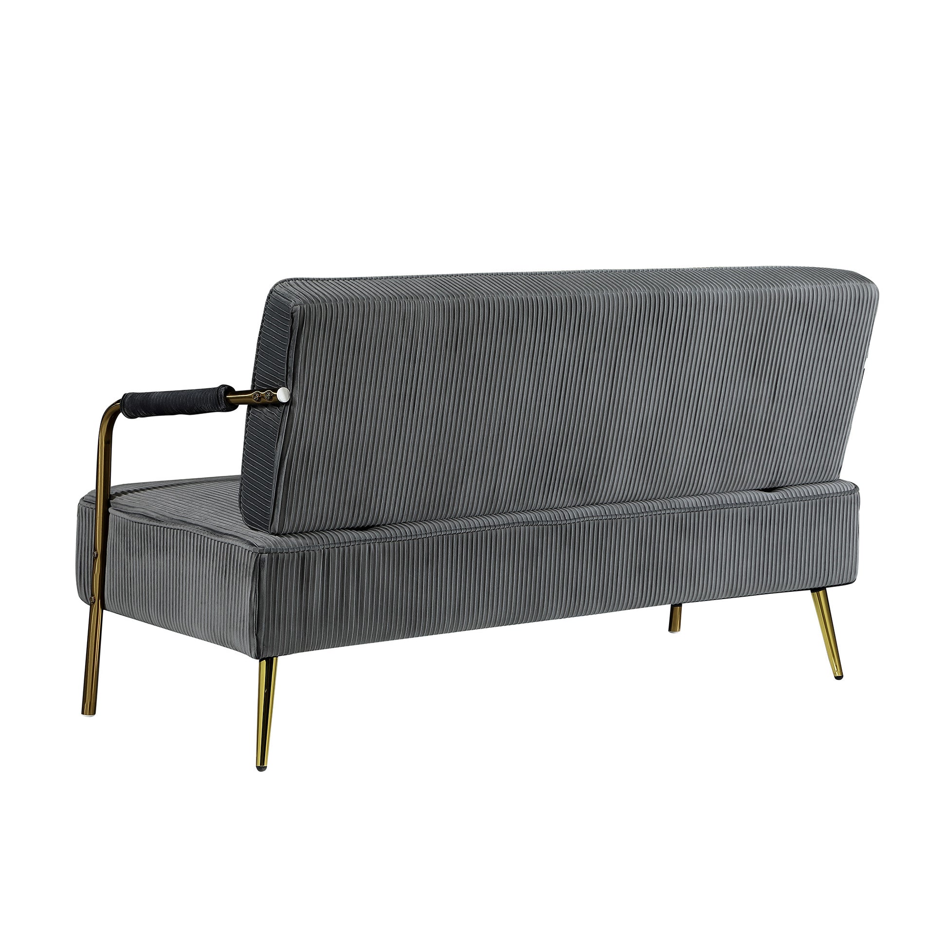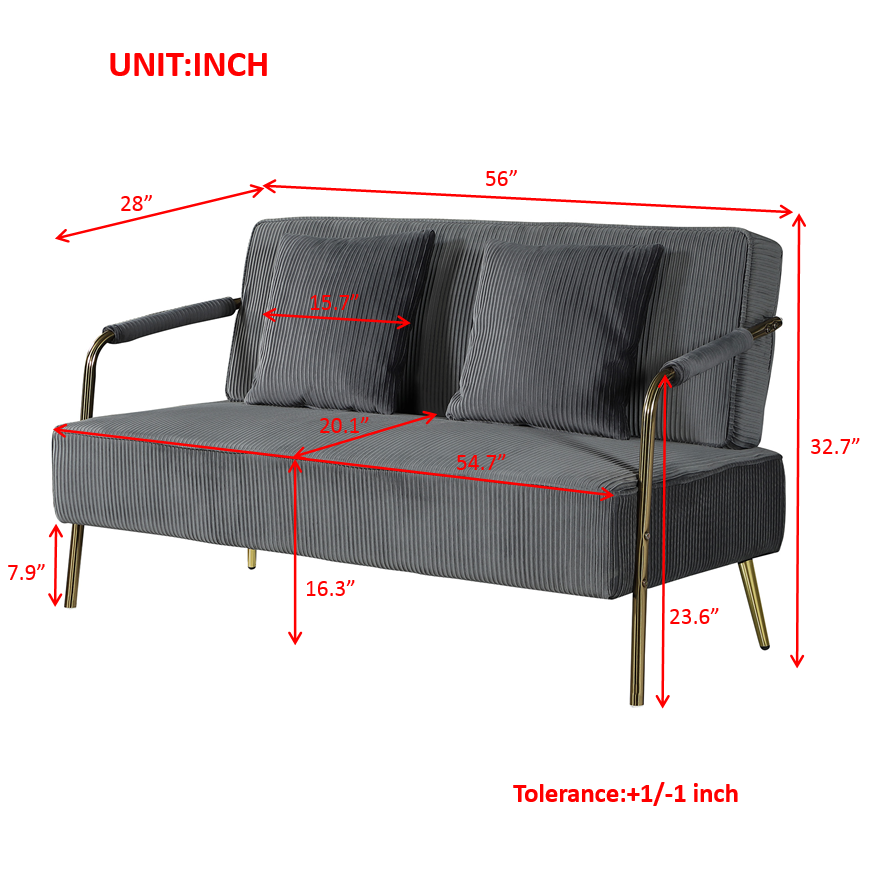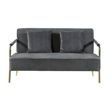 56" Width Modern Upholstered Pleated Velvet Loveseat Comfy 2 Seater Small Sofa Couch With Gold Metal Legs 2Pcs Throw Pillows For Living Room,Small Spaces,Apartment, Bedroom,Office,Grey Grey Velvet
