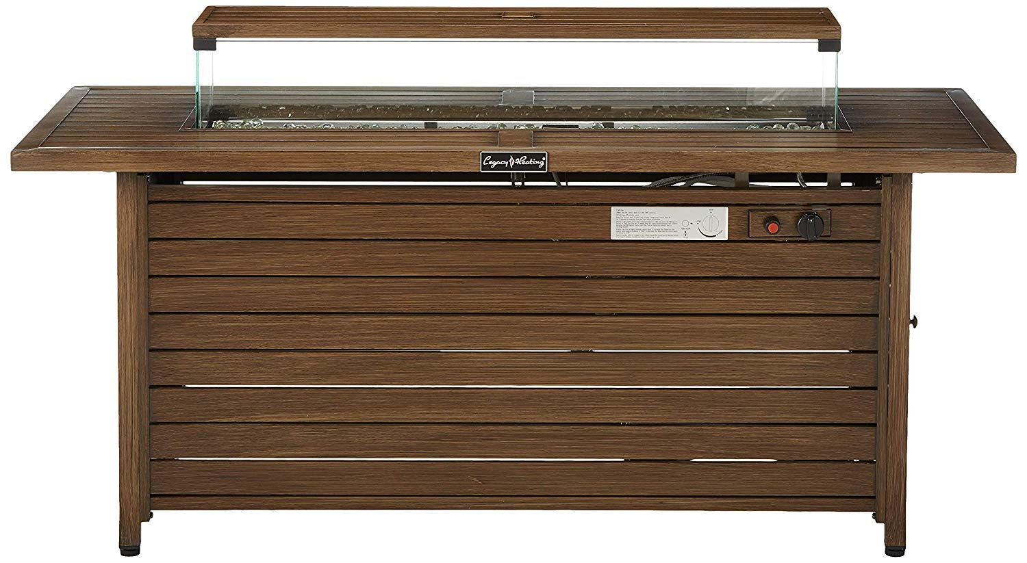 57 In Propane Fire Pit Table, 50000Btu, Retangular Outdoor Gas Fire Pit Table, Firepit Table With Lid & Wind Guard, Etl Certification, For Garden Backyard Deck Patio Camping Party Yellow Brown Steel