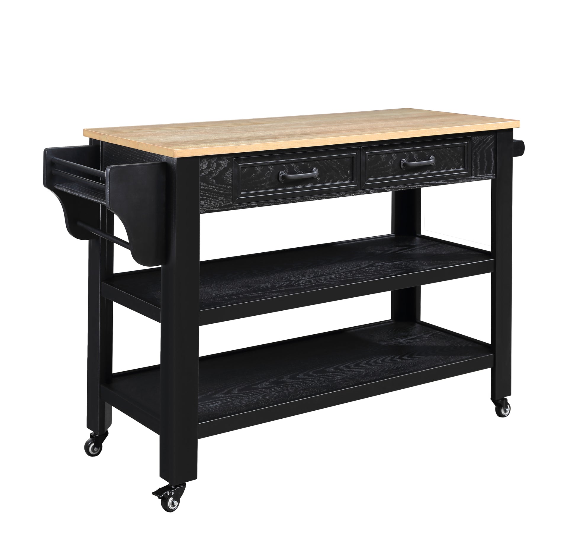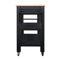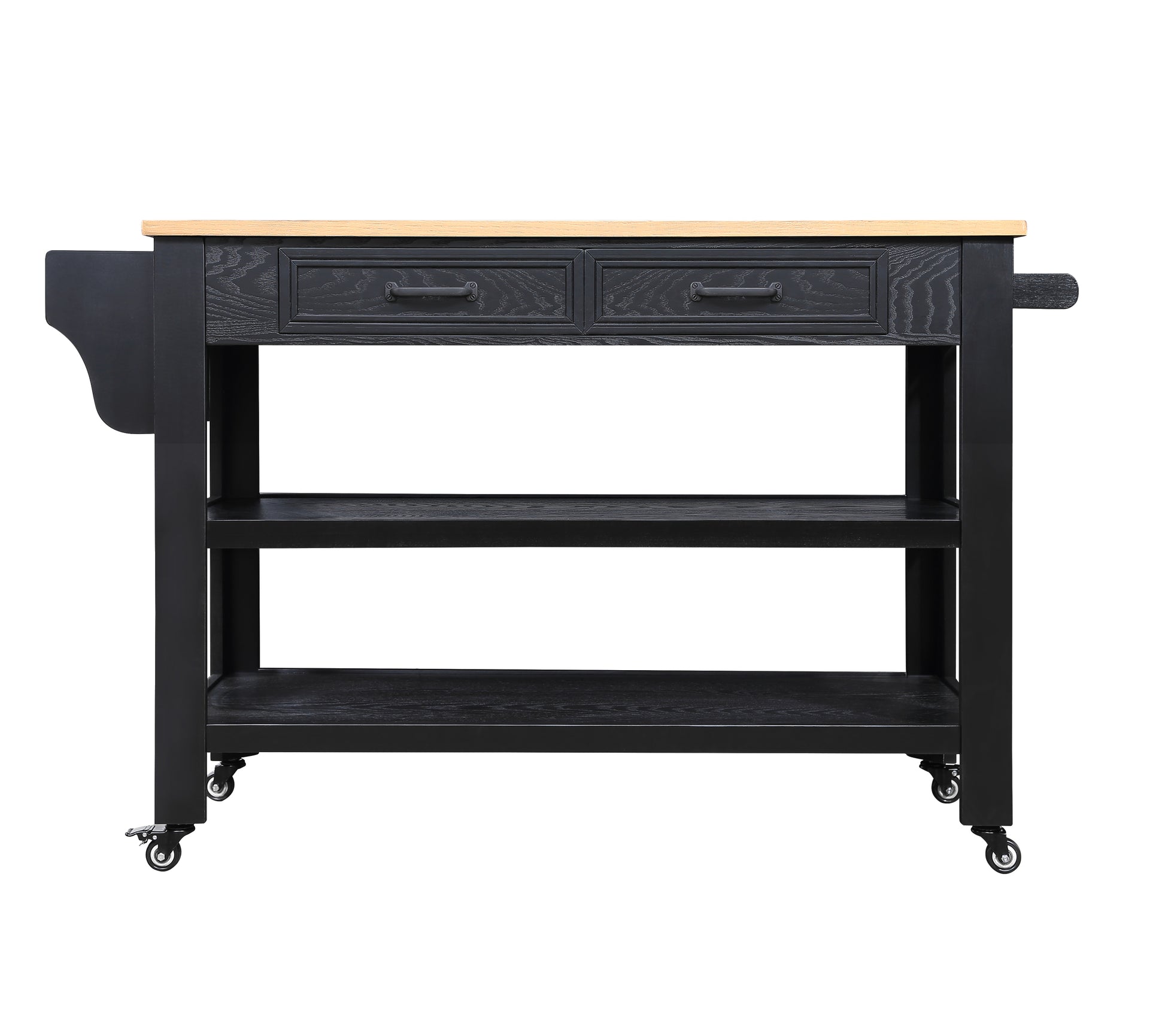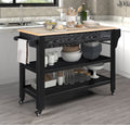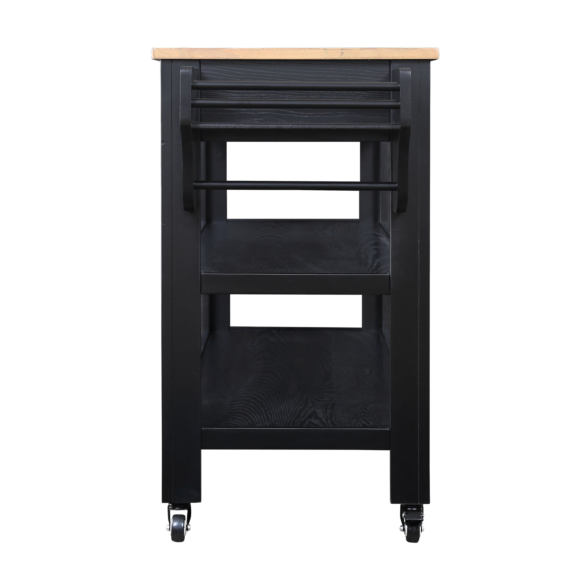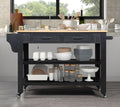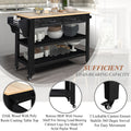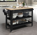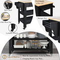 57 Inch Rolling Kitchen Island With Storage,Kitchen Cart With Solid Oak Wood Top,Two Sided Kitchen Island Cart On Wheelswine And Spice Rack, Large Kitchen Cart With 2 Drawers, Black Natural Top Black Natural Dining Room American Design Rectangular