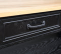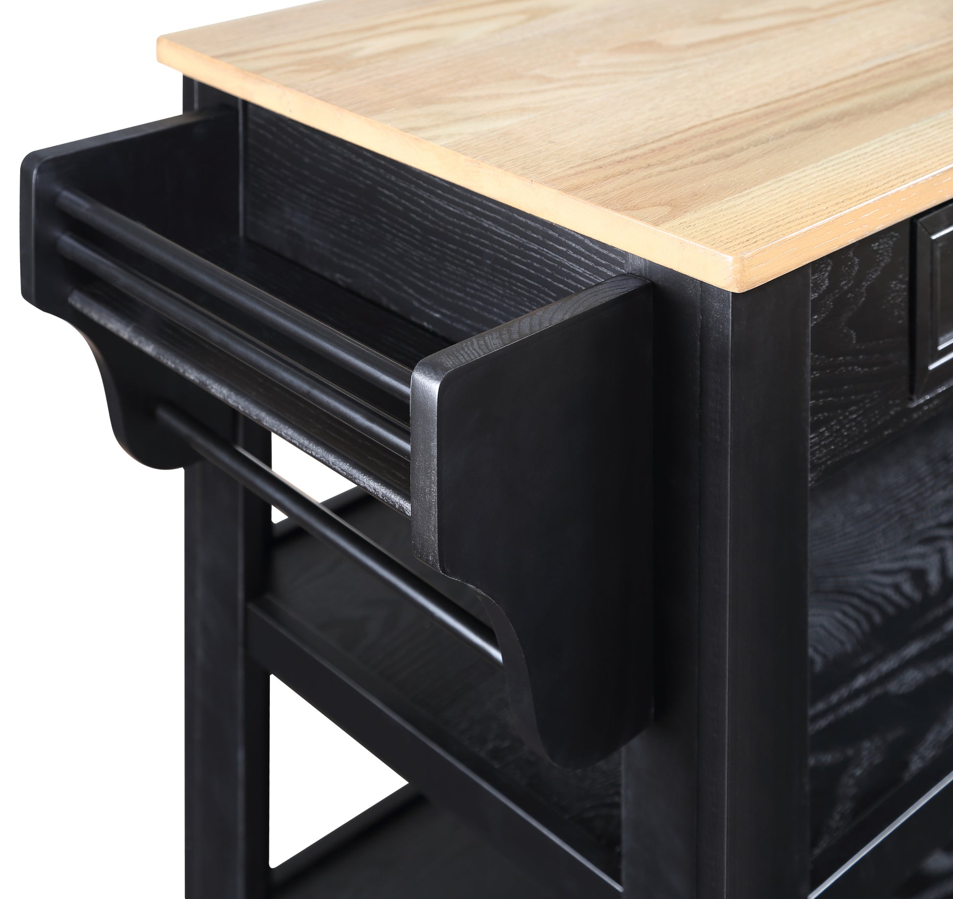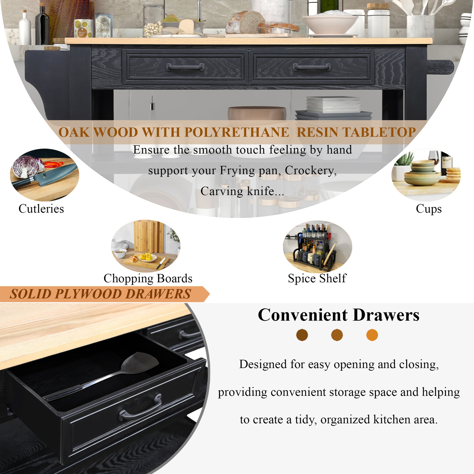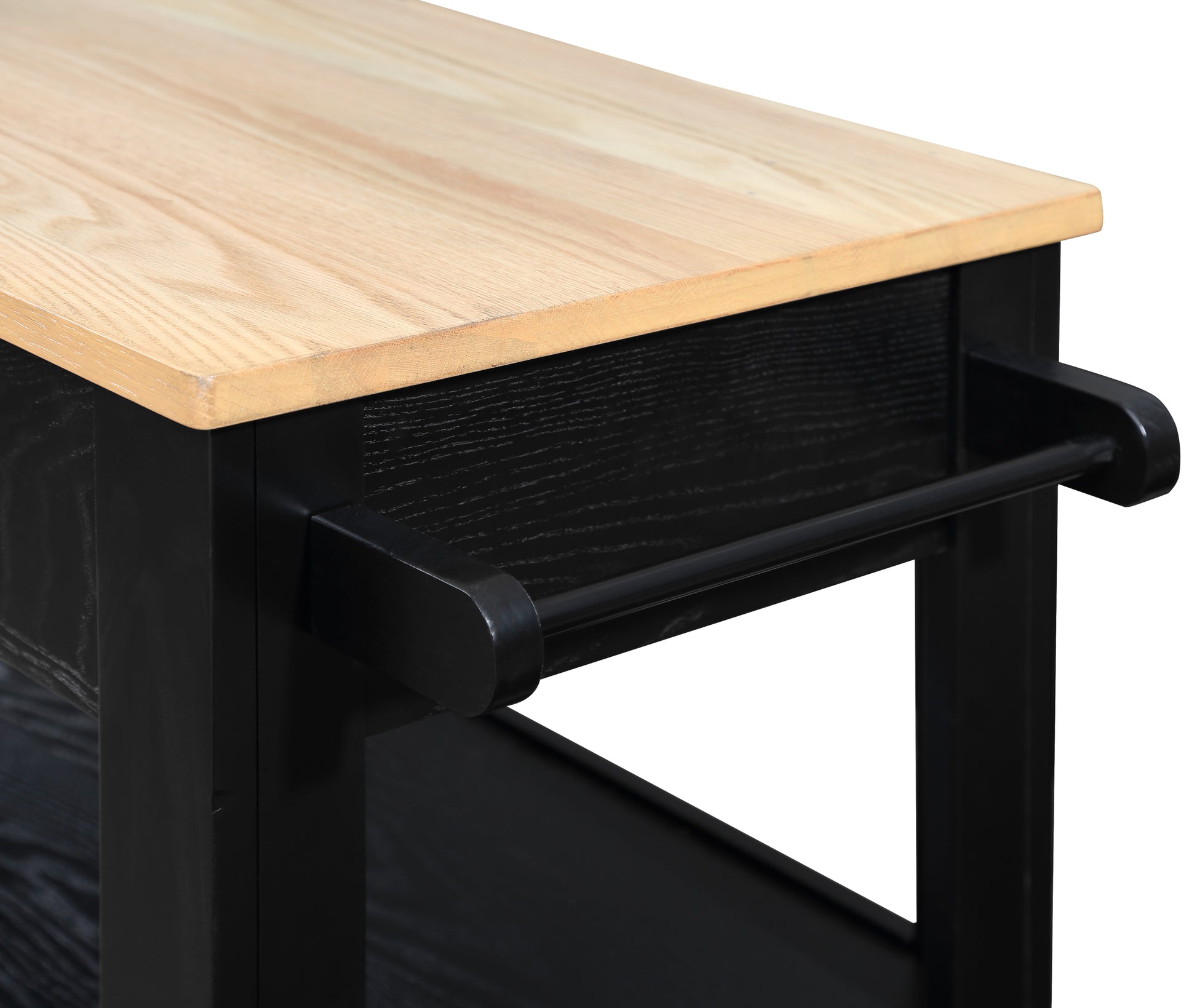 57 Inch Rolling Kitchen Island With Storage,Kitchen Cart With Solid Oak Wood Top,Two Sided Kitchen Island Cart On Wheelswine And Spice Rack, Large Kitchen Cart With 2 Drawers, Black Natural Top Black Natural Dining Room American Design Rectangular