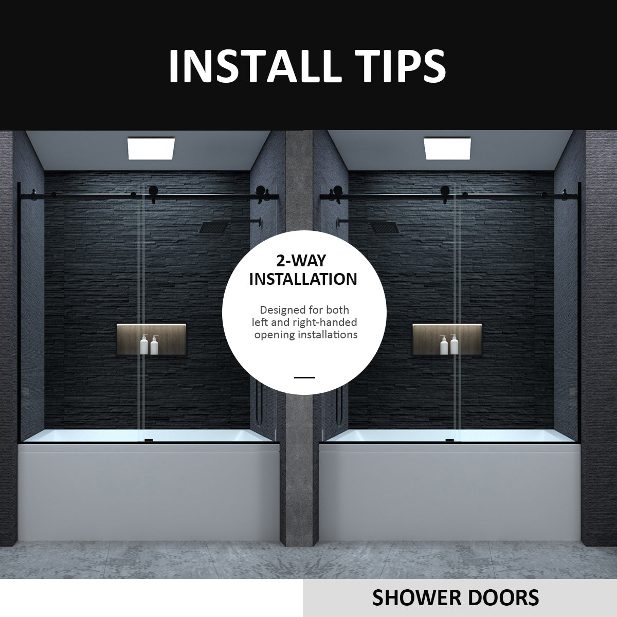 58 60" W X 60" H Frameless Sliding Bathtub Door, Tub Shower Door, Bathtub Glass Door, Bathtub Shower Door, 1 4" 6Mm Certified Clear Tempered Glass, Matte Black Matte Black Stainless Steel