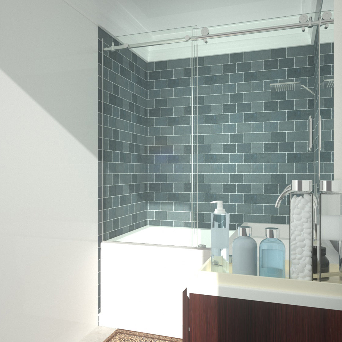 58 60" W X 60" H Frameless Sliding Bathtub Door, Tub Shower Door, Bathtub Glass Door, Bathtub Shower Door, 1 4" 6Mm Certified Clear Tempered Glass, Chrome Chrome Stainless Steel