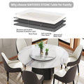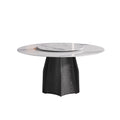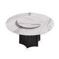59.05" Round Marble Dining Table With Black Textured Solid Wood Base, Artificial Marble For 6 8 People, 31.5"White Artificial Stone Turntable,White Dining Table Only Black,White Dining Room Modern