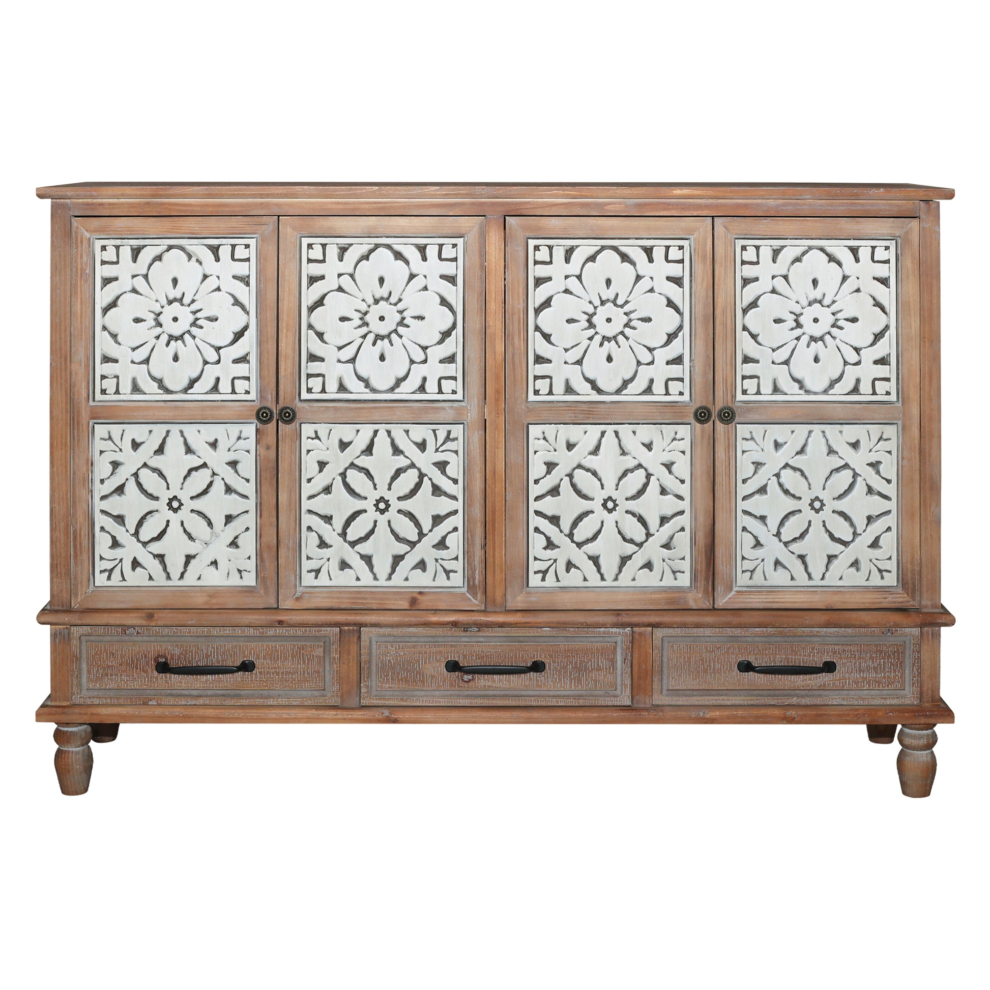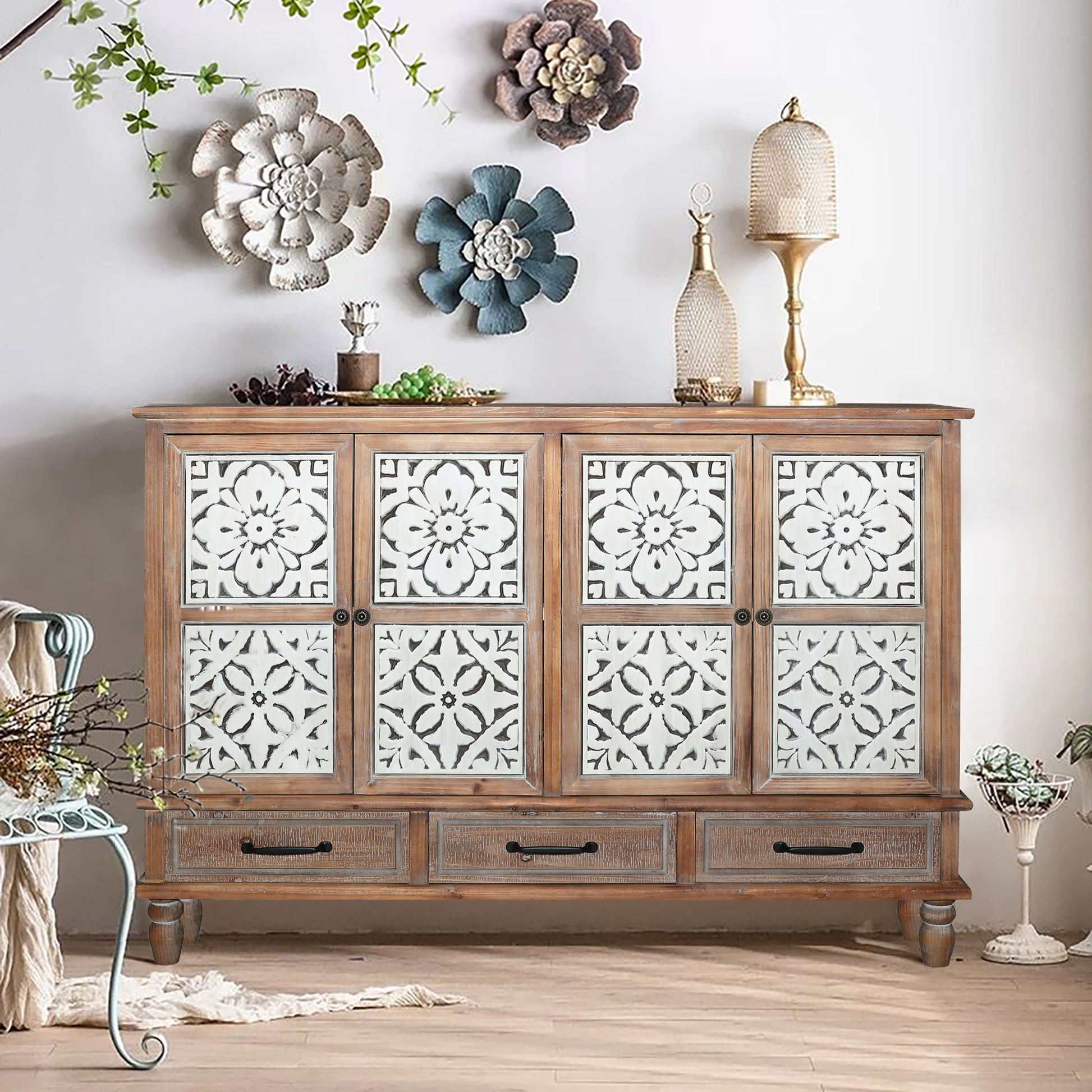 59.06" Chic Natural Wood Accent Cabinet, 4 Doord 3 Drawers Sideboard Buffet With Adjustable Shelves, Stylish Storage For Living Room, Kitchen, And Dining, Easy Assembly, Durable Mdf, Natural Wood