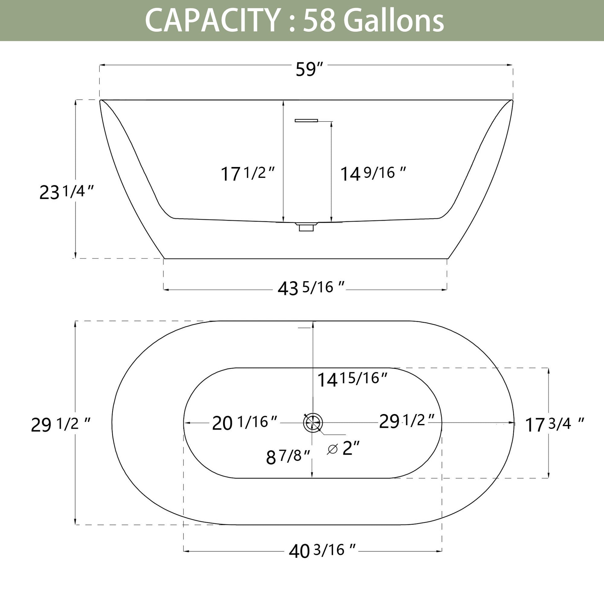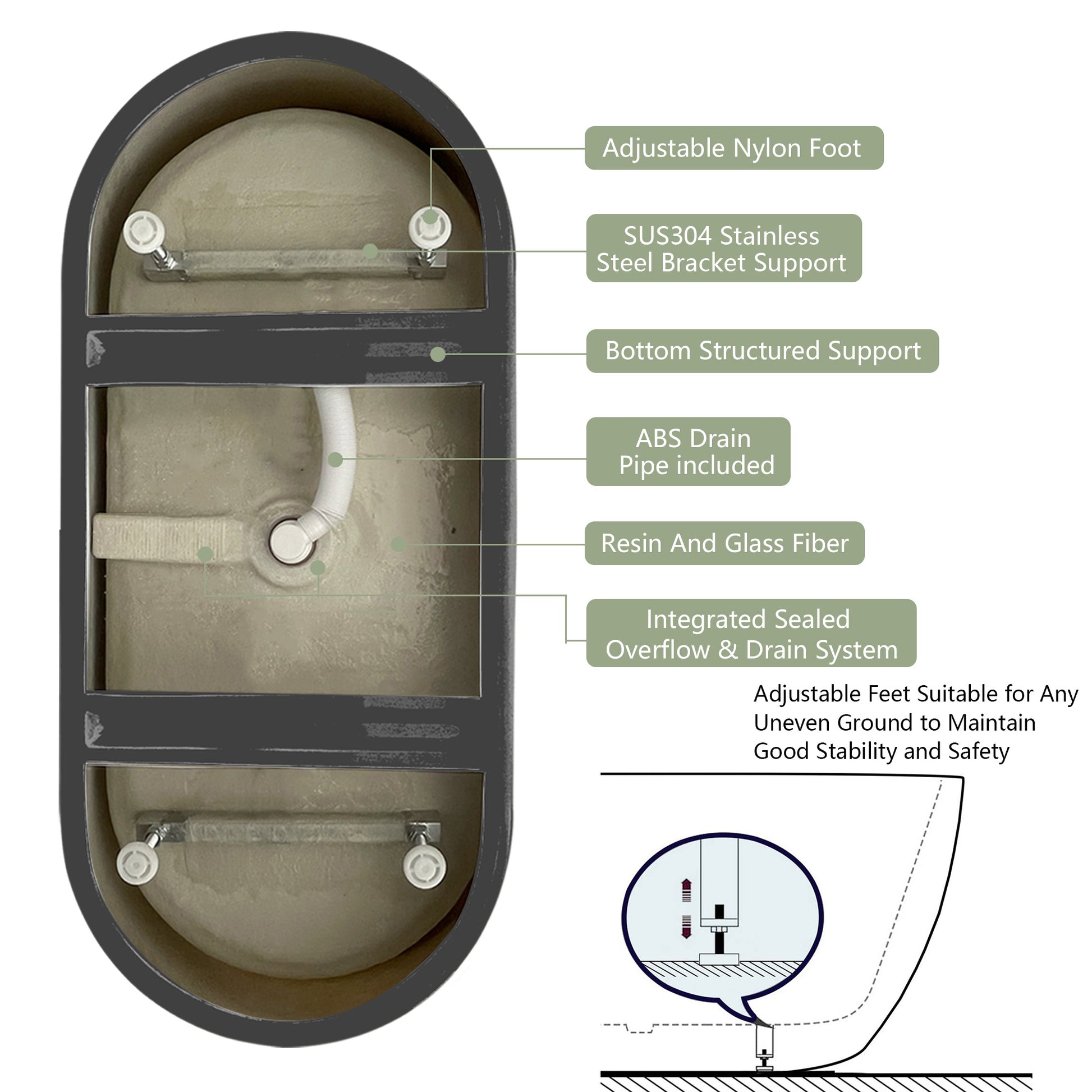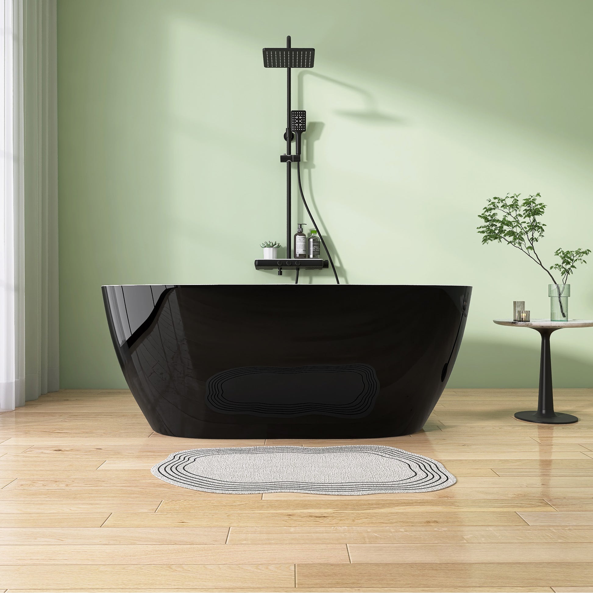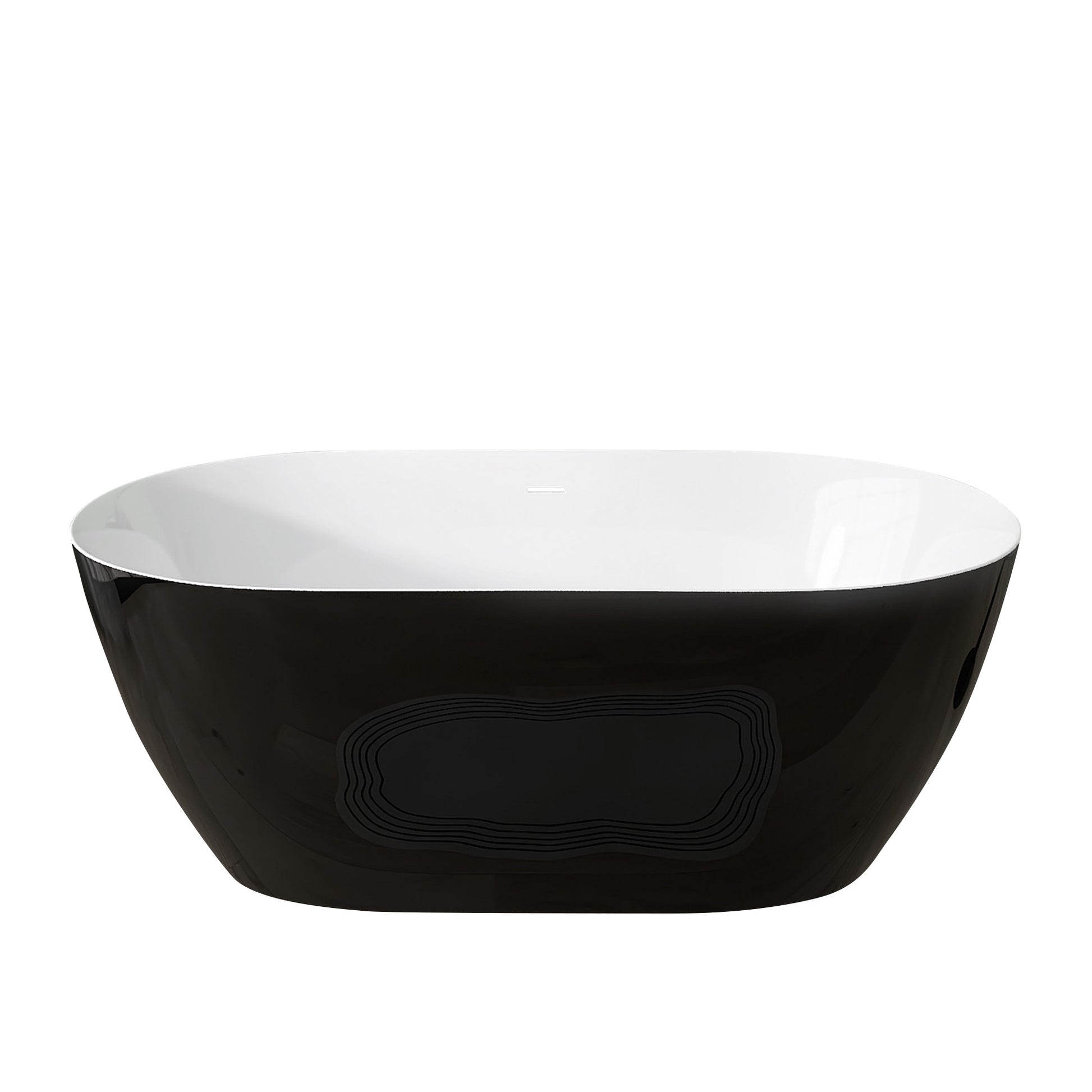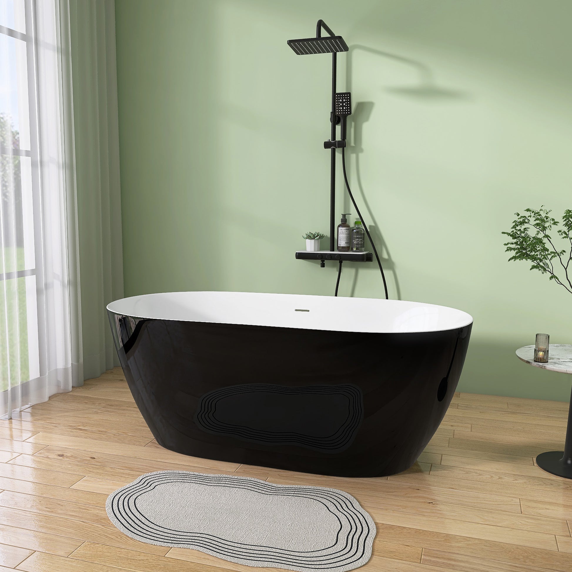 59" Acrylic Free Standing Tub Classic Oval Shape Soaking Tub Adjustable Freestanding Bathtub With Integrated Slotted Overflow And Chrome Pop Up Drain Anti Clogging Gloss Black Black White Oval Bathroom Freestanding Tubs Polished 59 61 In Modern Soaking
