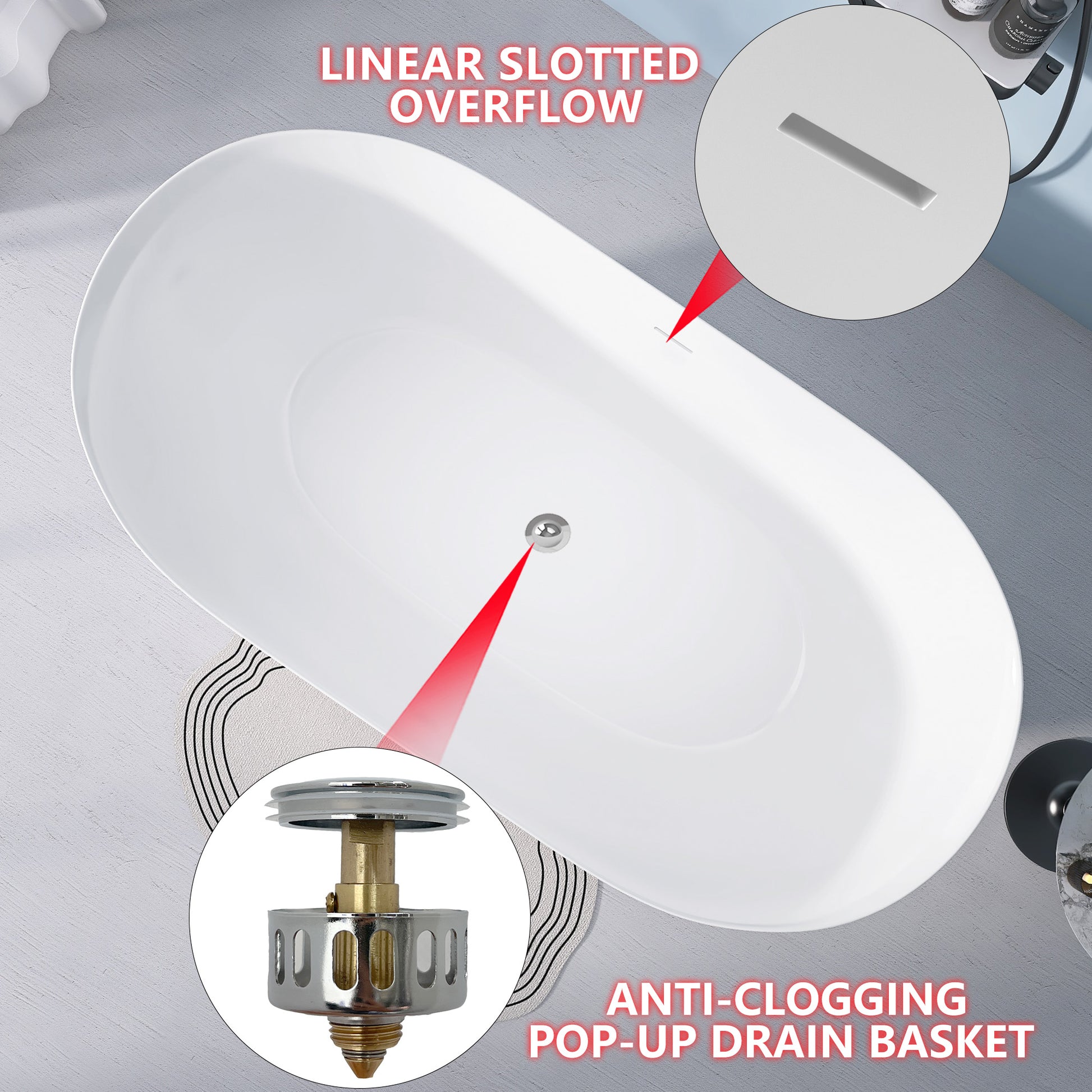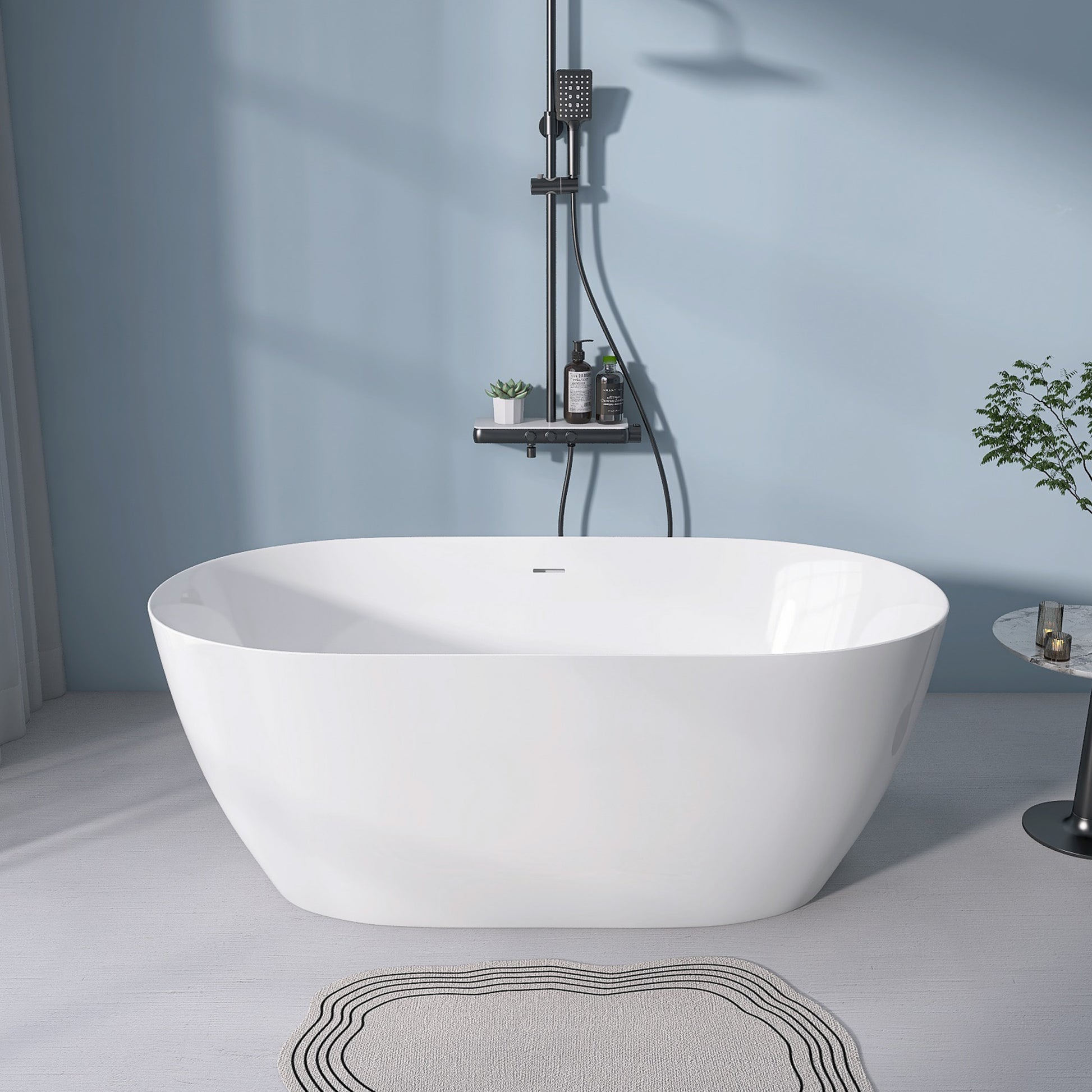 59" Acrylic Free Standing Tub Modern Oval Shape Soaking Tub Adjustable Freestanding Bathtub With Integrated Slotted Overflow And Chrome Pop Up Drain Anti Clogging Gloss White Gloss White Oval Bathroom Freestanding Tubs Polished 59 61 In Modern Soaking